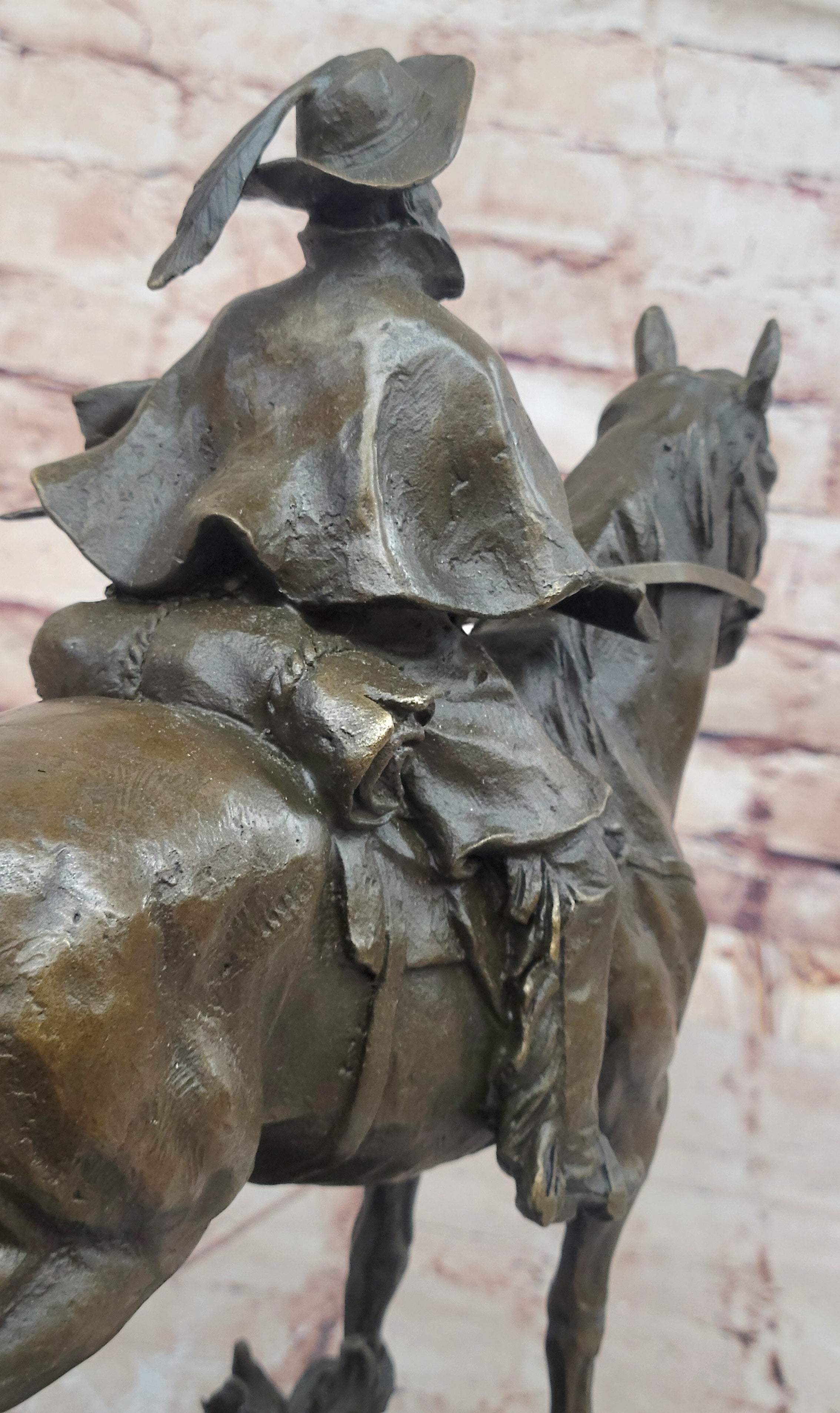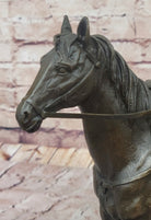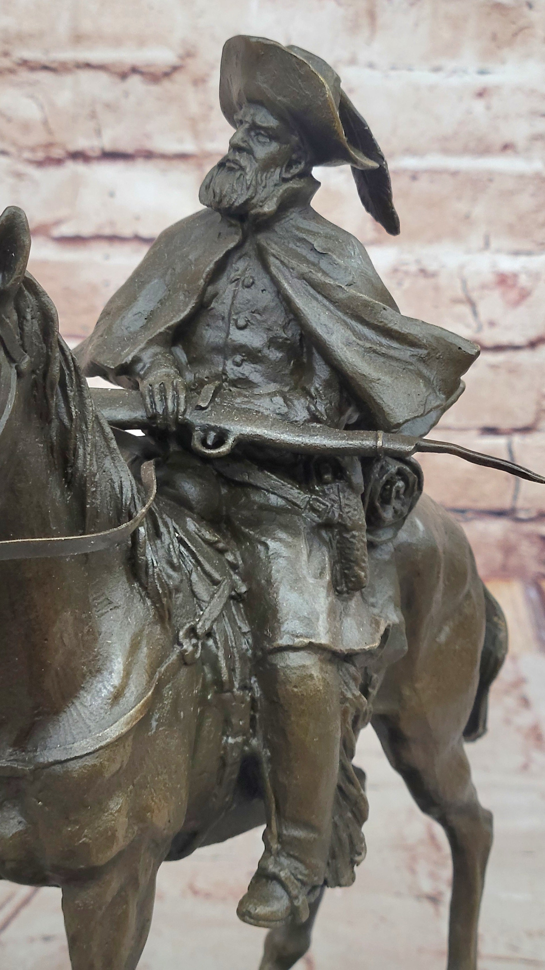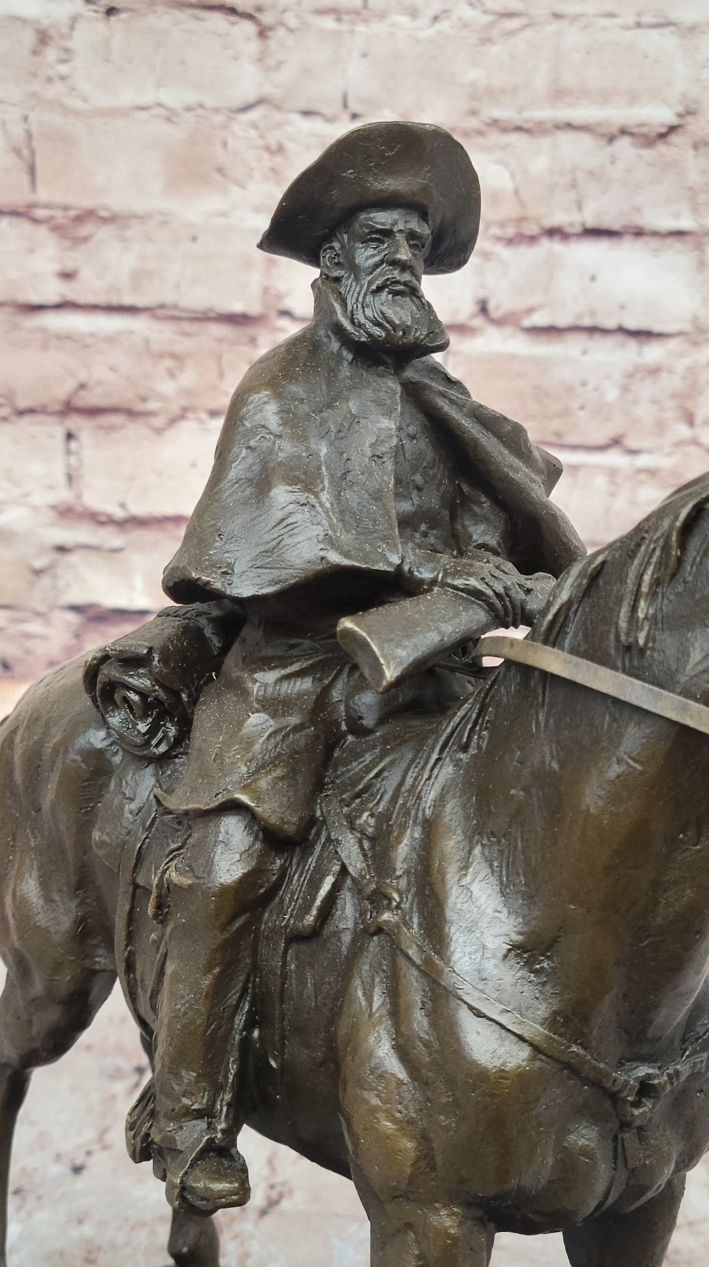 Handcrafted using the lost wax method, this sculpture exemplifies the dedication and skill of the artisan. Each element, from the wrinkles on the man's face to the texture of the horse's mane, is carefully sculpted to perfection. The rich brown patina finish enhances the depth and character of the bronze, adding warmth and sophistication to the piece.