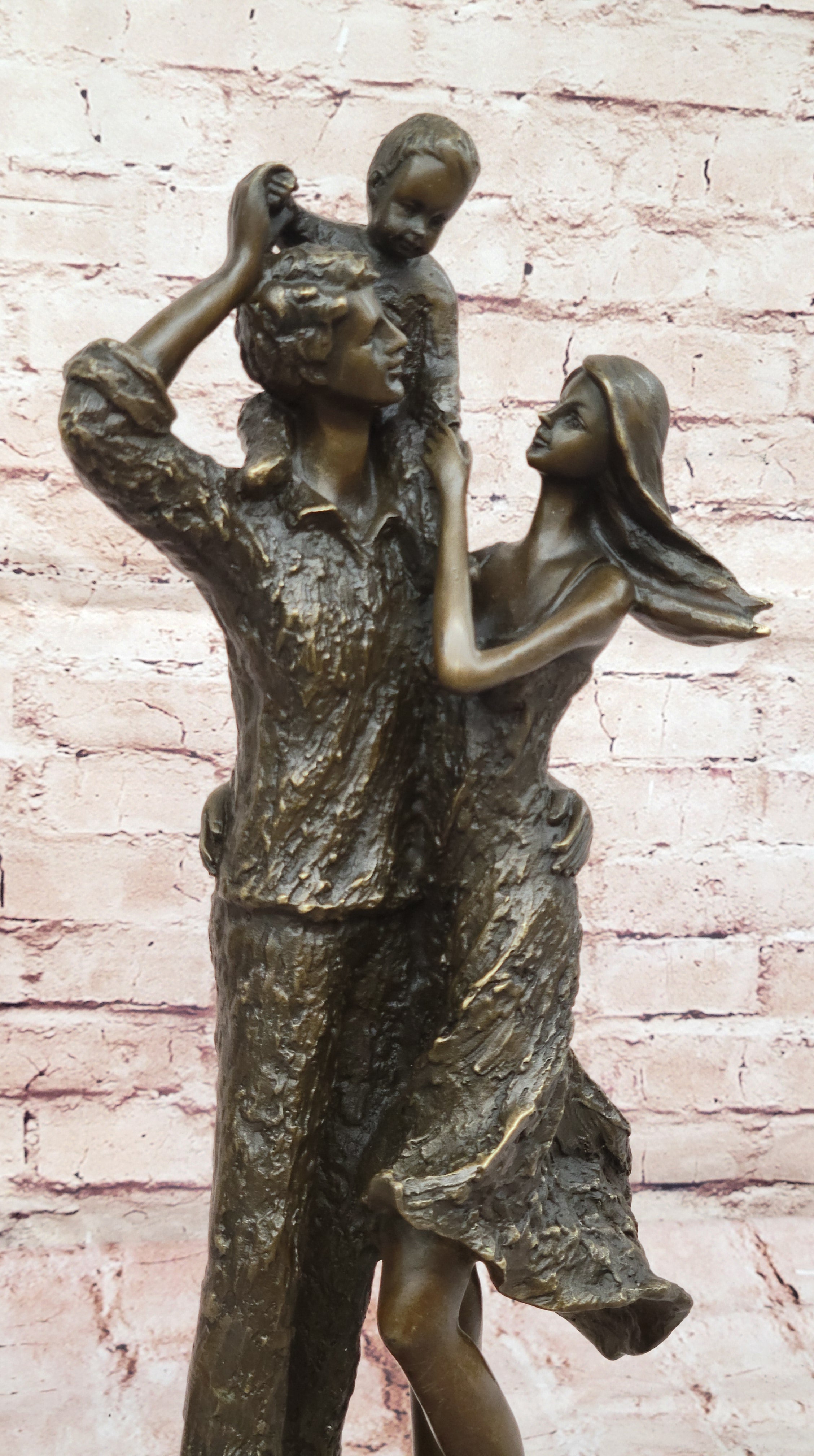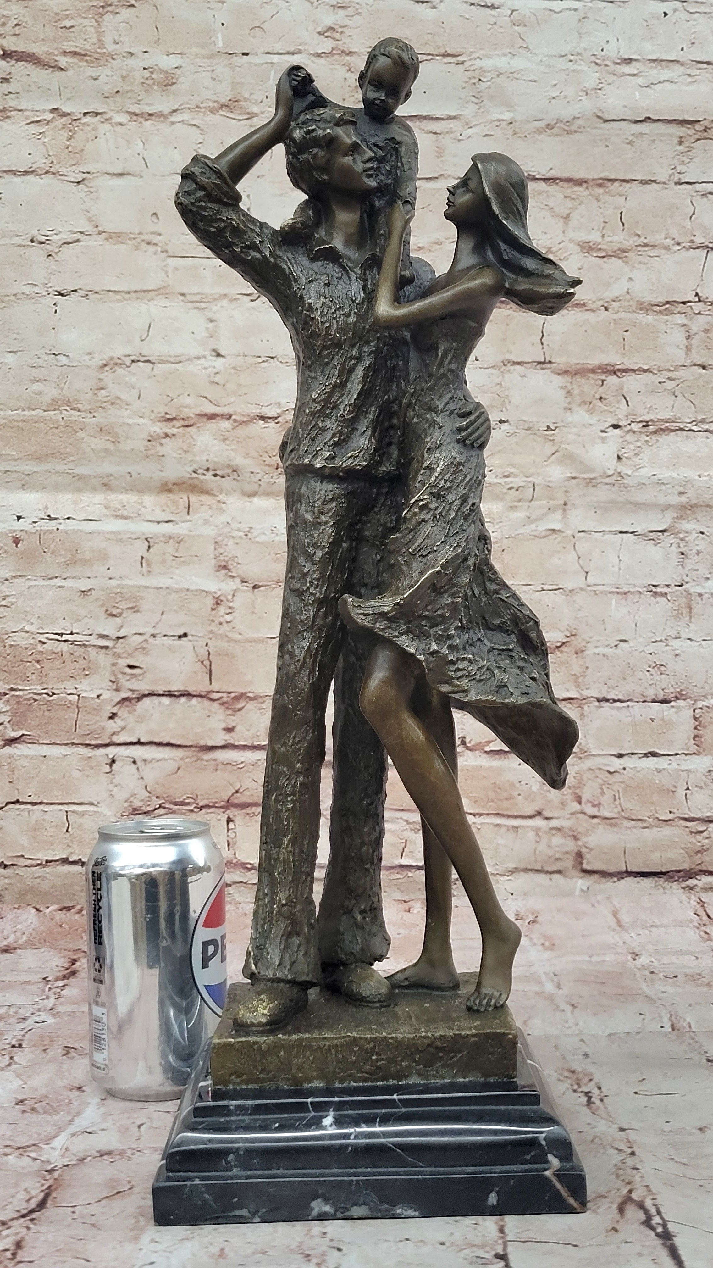 Bronze Family Sculpture – Joyful Moments with Mother, Father, and Child
