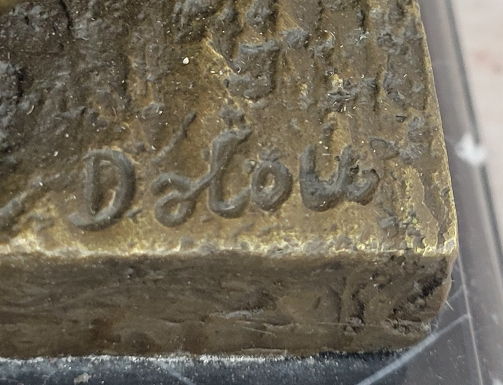 Mounted on a sleek black marble base and signed by the artist Dalou, this stunning piece is a meaningful work of art that celebrates the beauty of family. Whether as a wedding or anniversary gift, or as a cherished addition to any home, this sculpture encapsulates the essence of love, unity, and the timeless connection between parents and child.Bronze Dimensions with Marble Base: Height 19" X Width 6"
