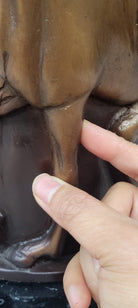 Crafted with meticulous detail using the Lost Wax Method, this bronze urn exudes a calming and peaceful vibe, making it a perfect sanctuary for your beloved's ashes. The artist's hands have captured the essence of movement and grace in the horses, adding depth and dimension to the urn. Its 100% bronze construction ensures durability and longevity, allowing your beloved's final resting place to remain timeless.