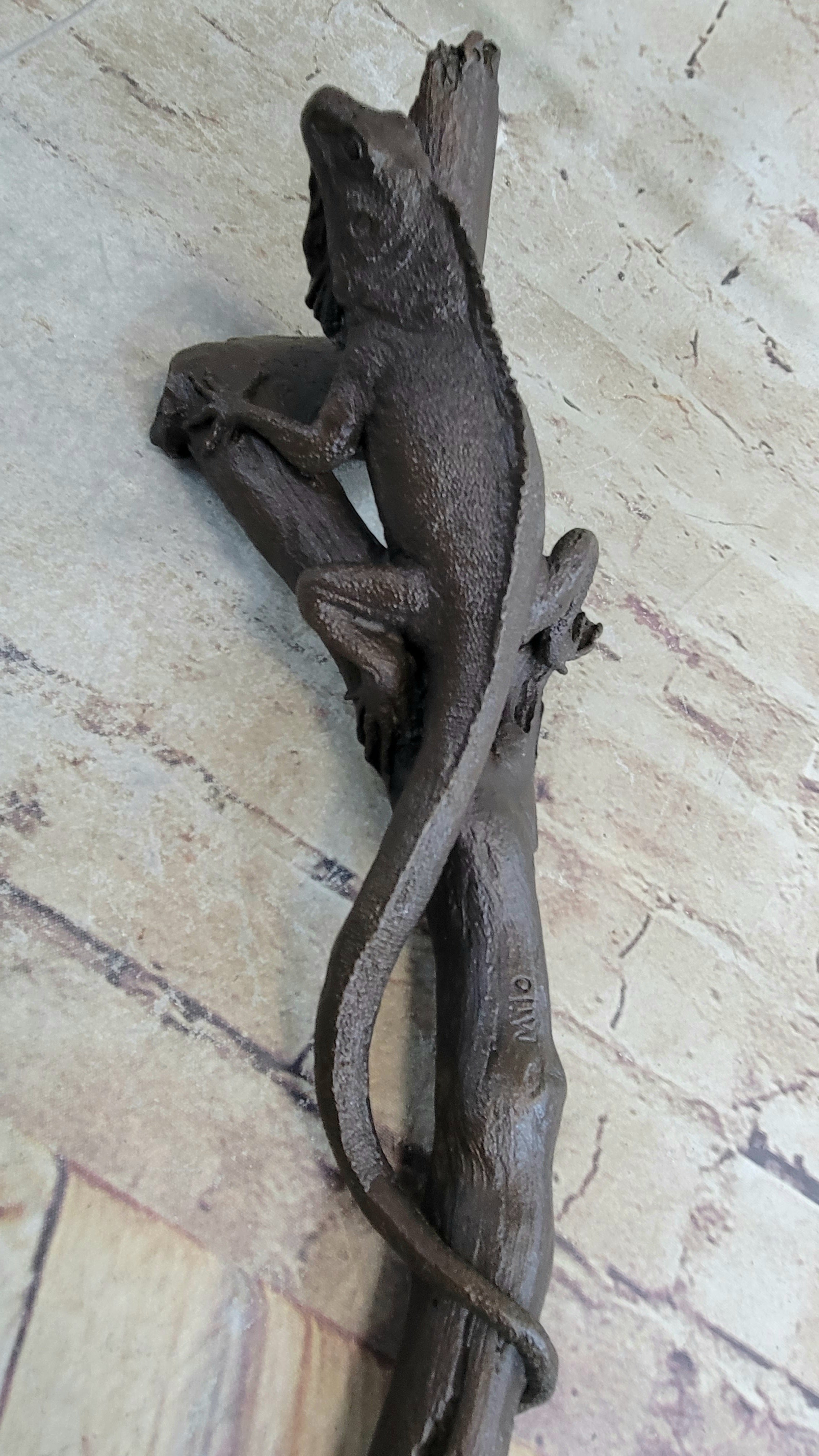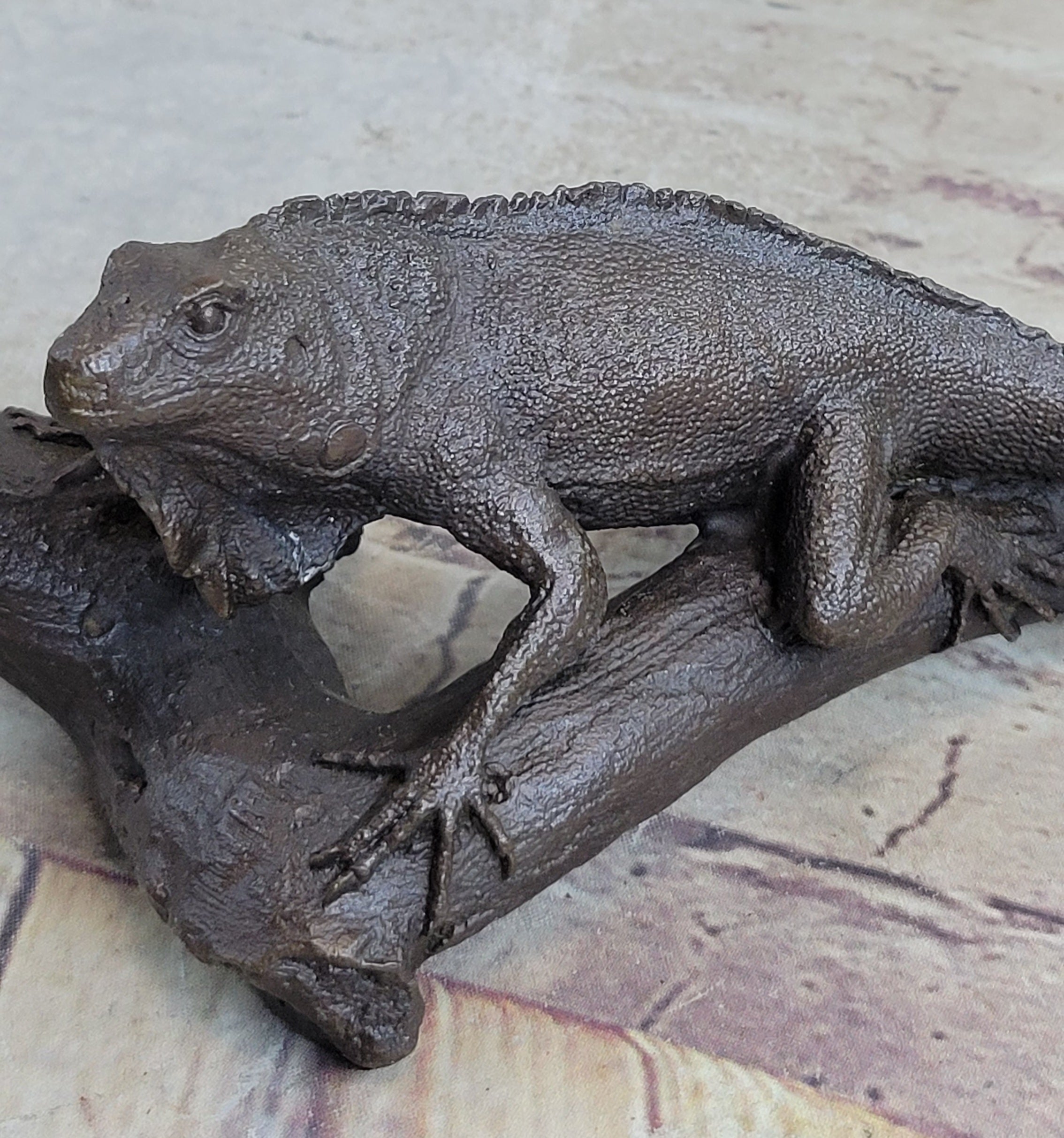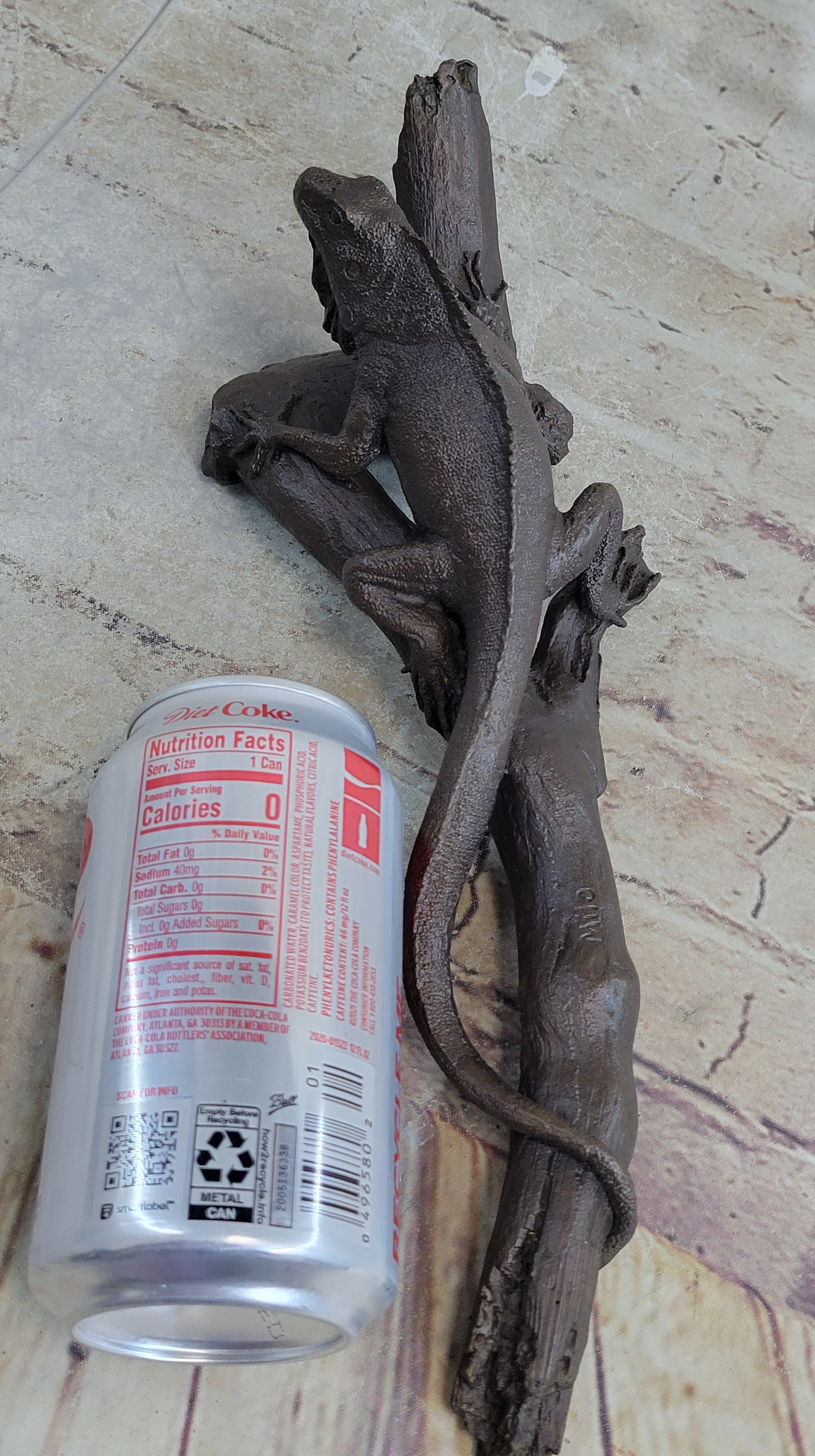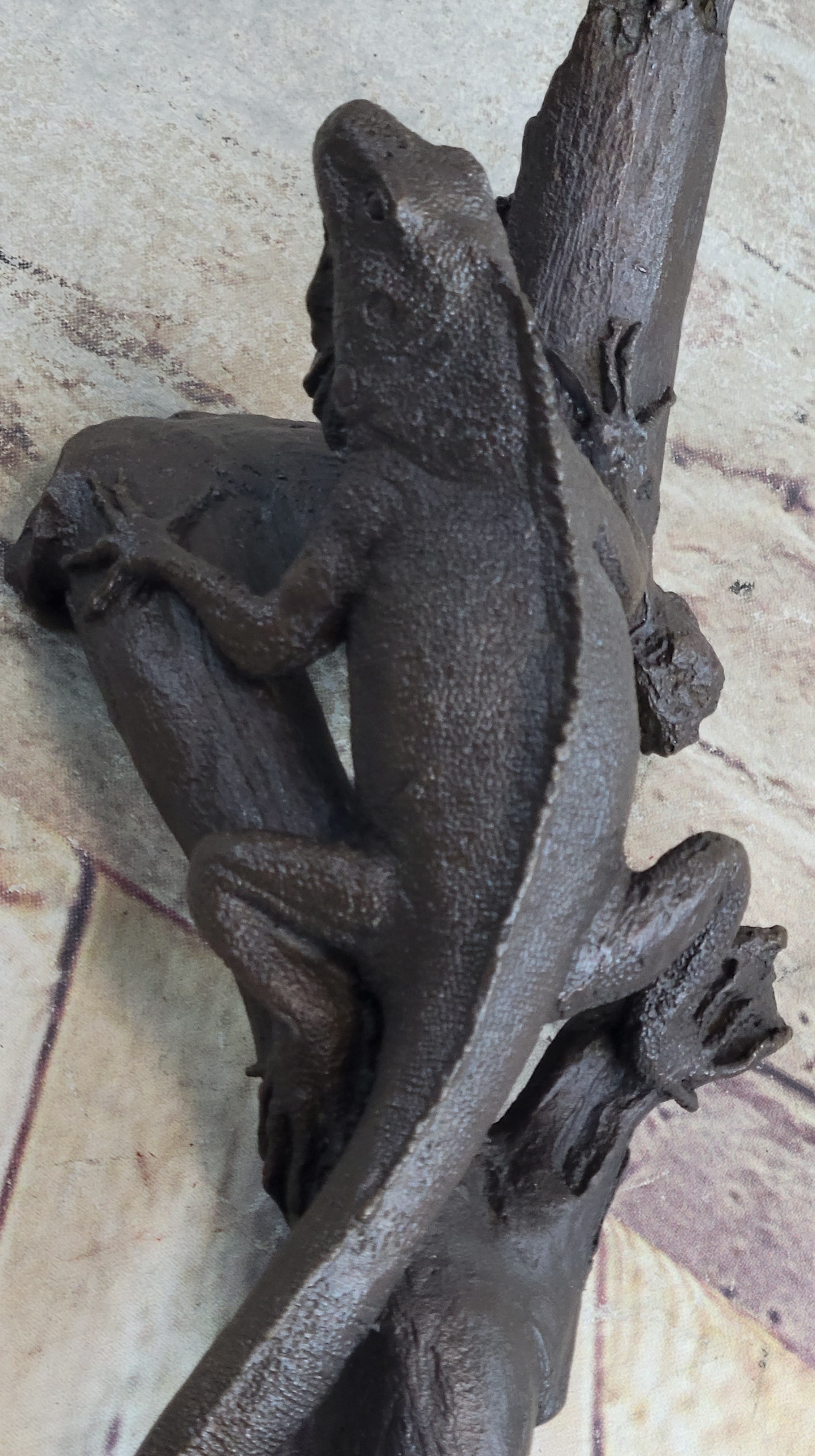 Bronze Iguana on Tree Branch Sculpture Hand Made Classic Reptile Artwork Statue