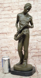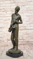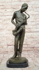 Bronze Jazz Musician Playing Saxophone on Marble Base