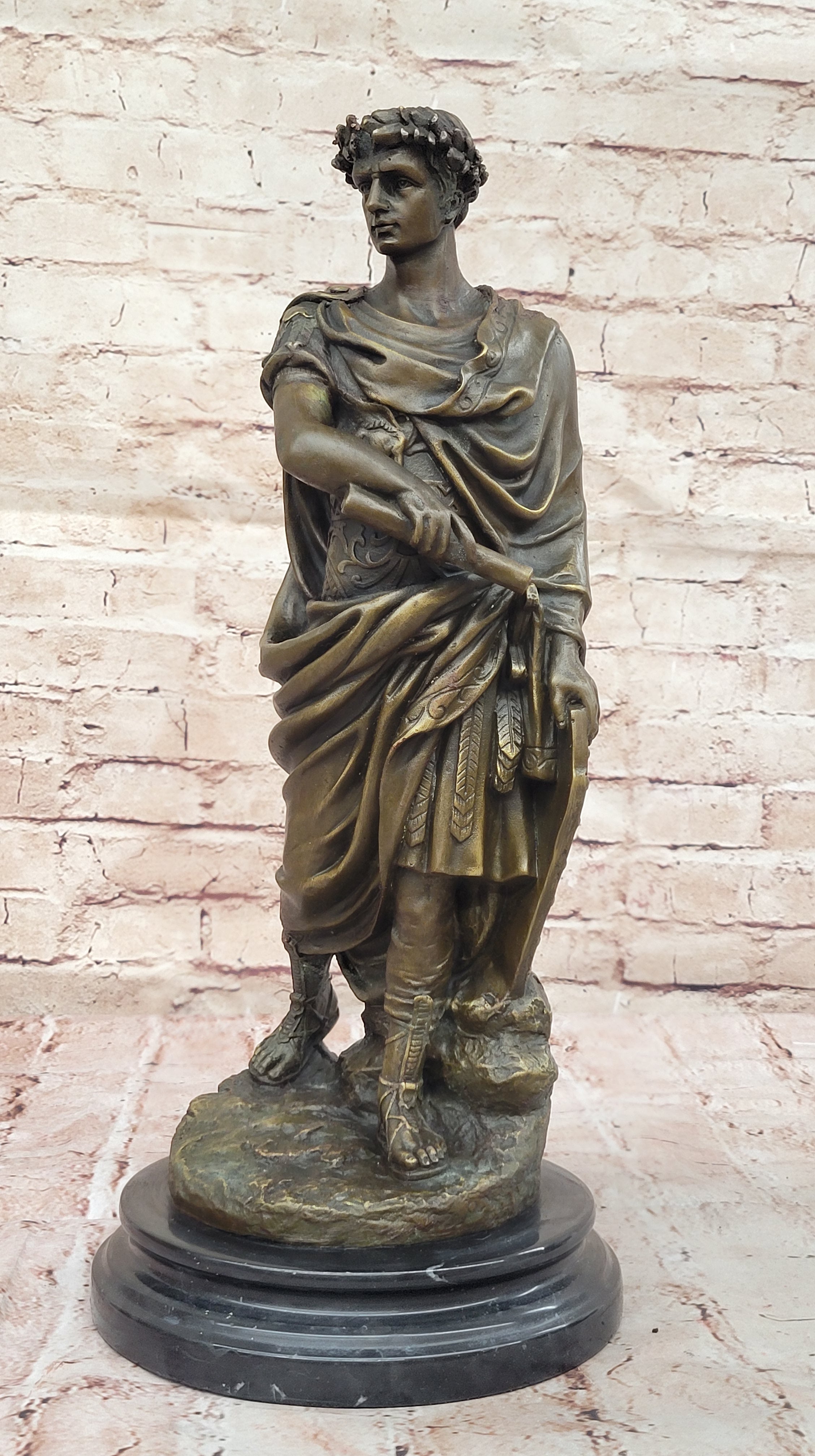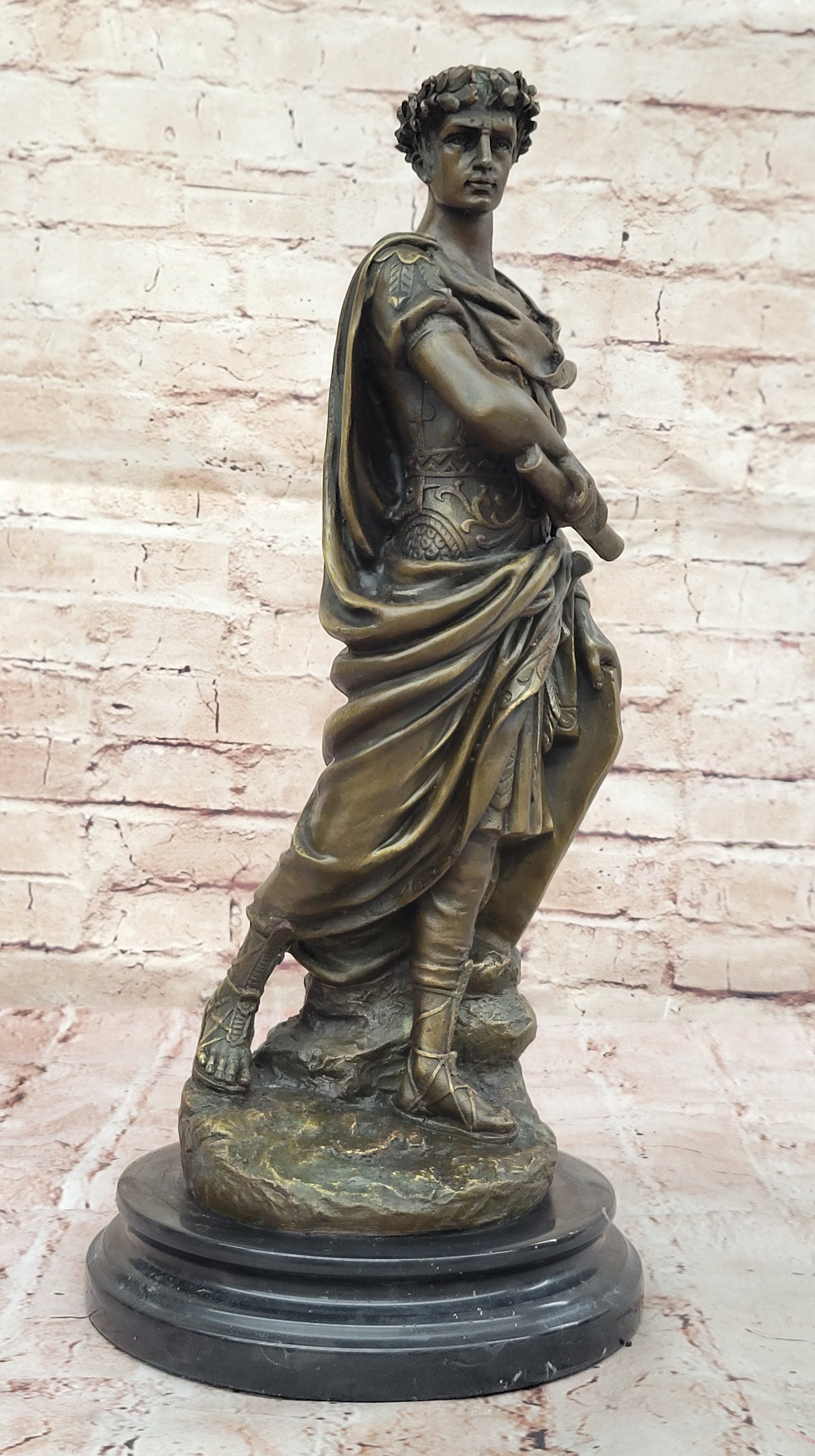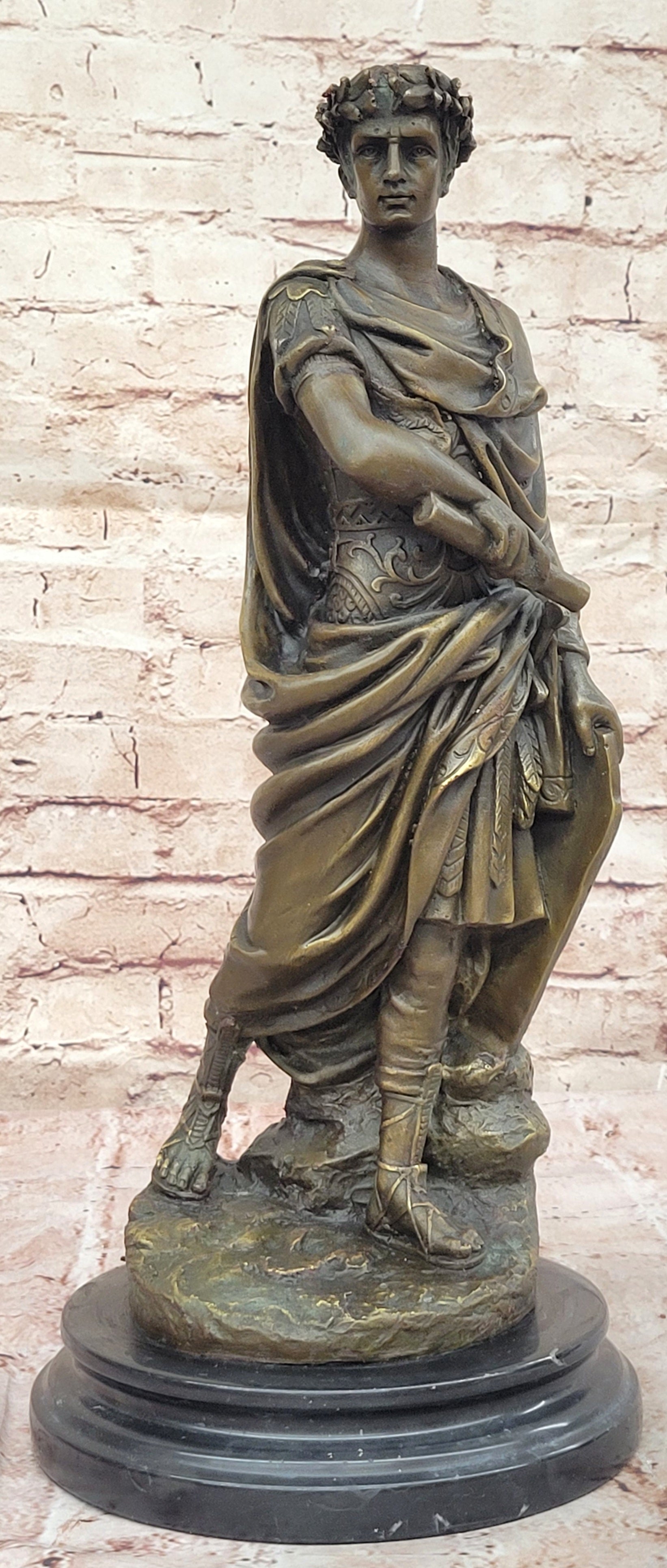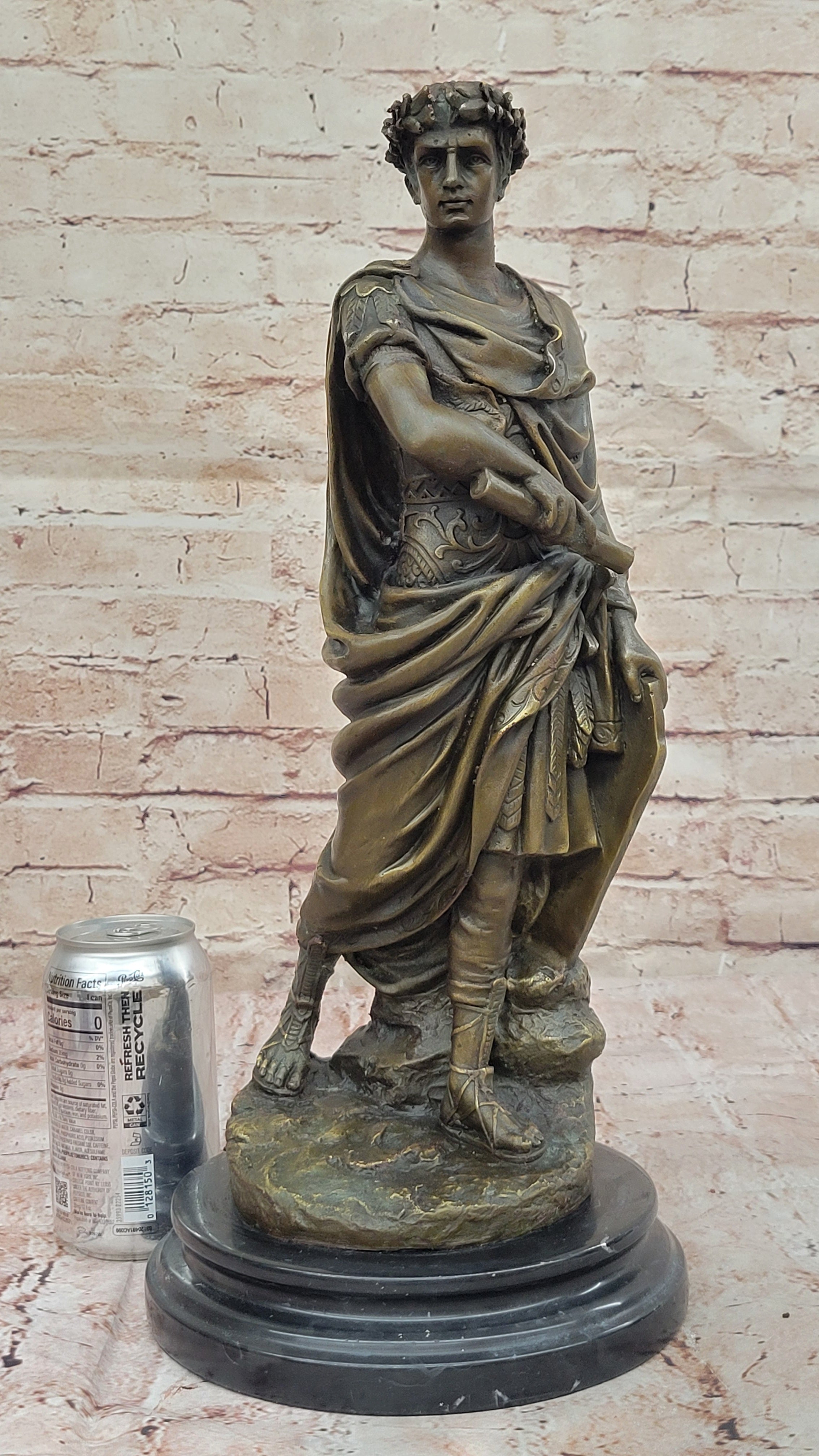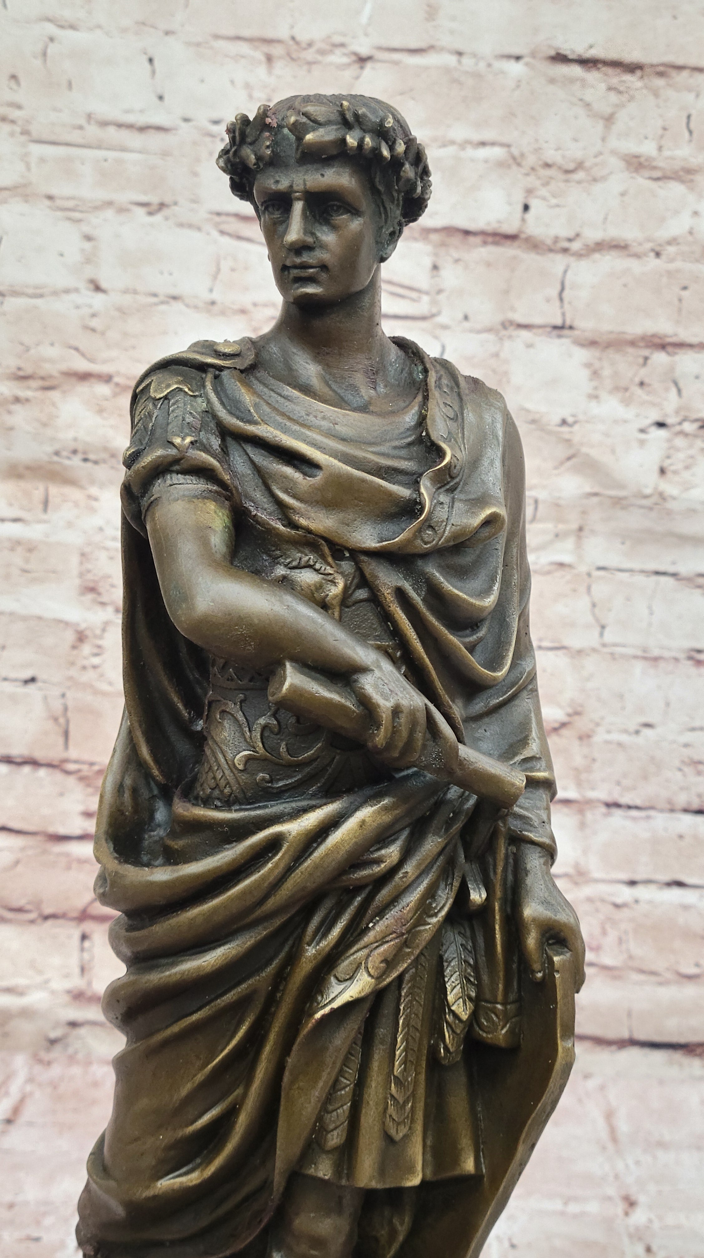 Bronze Julius Caesar Sculpture Statue on Marble Base - Roman History Art Decor