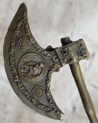 Standing proudly on a small base, this bronze statue commands attention and respect. Its compact size makes it a versatile piece, perfect for display on a shelf, desk, or mantelpiece. It serves as a constant reminder of the valor and bravery exhibited by warriors of old.