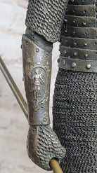Adorned in a traditional iron and chain suit of armor, this warrior is a testament to the craftsmanship and artistry of medieval times. The intricate details of the armor showcase the skill and dedication of the armorers who crafted it, while providing the warrior with the necessary protection for battle.