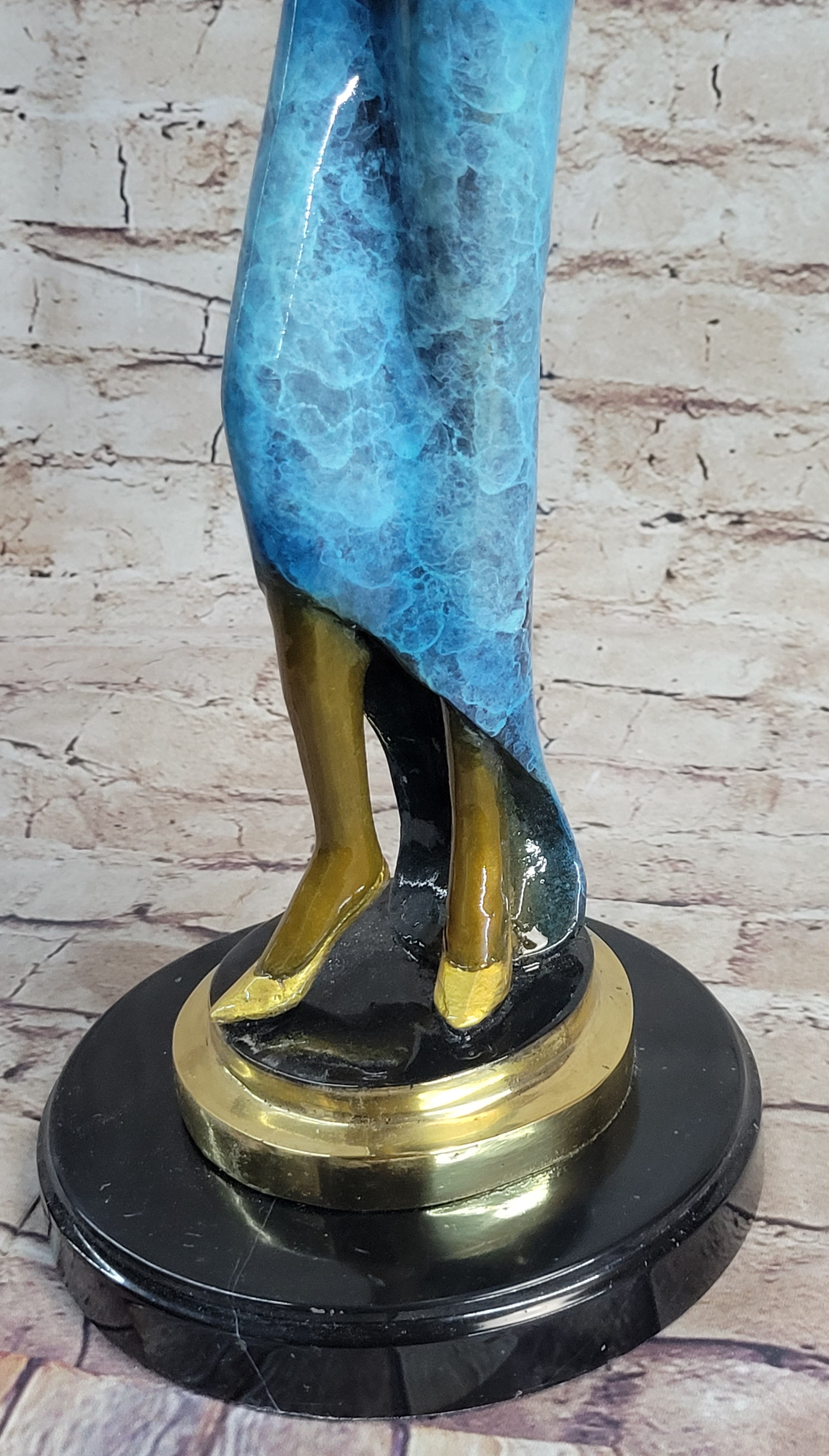 This stunning bronze sculpture is a perfect addition to any collection that celebrates fashion, art, or the elegance of the human form. The detailed craftsmanship and the glamorous subject matter make it a captivating piece that will draw admiration wherever it is displayed. Whether placed in a fashion boutique, an art gallery, or a private collection, this sculpture will serve as a reminder of the beauty, confidence, and allure that defines the world of high fashion. The signature of Juleus Erte adds an element of quality and prestige, ensuring that this piece is not only a work of art but also a valuable collectible.Bronze Dimensions with Marble Base: Height 20" X Width 17"