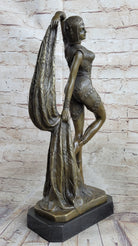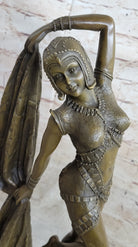 Experience the exceptional quality and artistry of this handmade bronze sculpture, expertly crafted using the revered "Lost Wax Method" to ensure the highest standards of excellence and detail. The meticulous production control guarantees the superior quality of this captivating bronze artwork, making it an ideal addition for prestigious exhibitions and discerning collectors alike. Reflecting the timeless allure of the Art Deco period, this sculpture pays homage to the legacy of the acclaimed artist Demetre H. Chiparus, whose masterful craftsmanship and attention to detail continue to captivate art enthusiasts worldwide.Bronze Dimensions with Marble Base: Height 17" X Width 8"