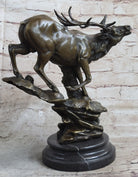 Bronze Marble Statue Elk Deer Stag Hunter Wildlife Art Sculpture Figure Lost Wax