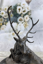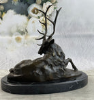 Bronze Marble Statue Elk Hunter Buck Stag trophy Sculpture Art Deco Figurine NR