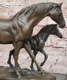 Bronze Mare and Foal Horse Sculpture on Marble Base Equestrian Statue
