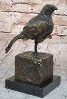 Resting upon a sleek black marble base, this sculpture exudes elegance and sophistication, making it a striking focal point in any setting. The artist's signature, Milo, adds a touch of authenticity and elevates the value of this remarkable piece. Bring the allure of the natural world into your space with this meticulously crafted bronze Common Pheasant sculpture, a homage to the artistry of wildlife and the enchantment of the great outdoors.Bronze Dimensions with Marble Base: Height 8" X Width 6 1/2"