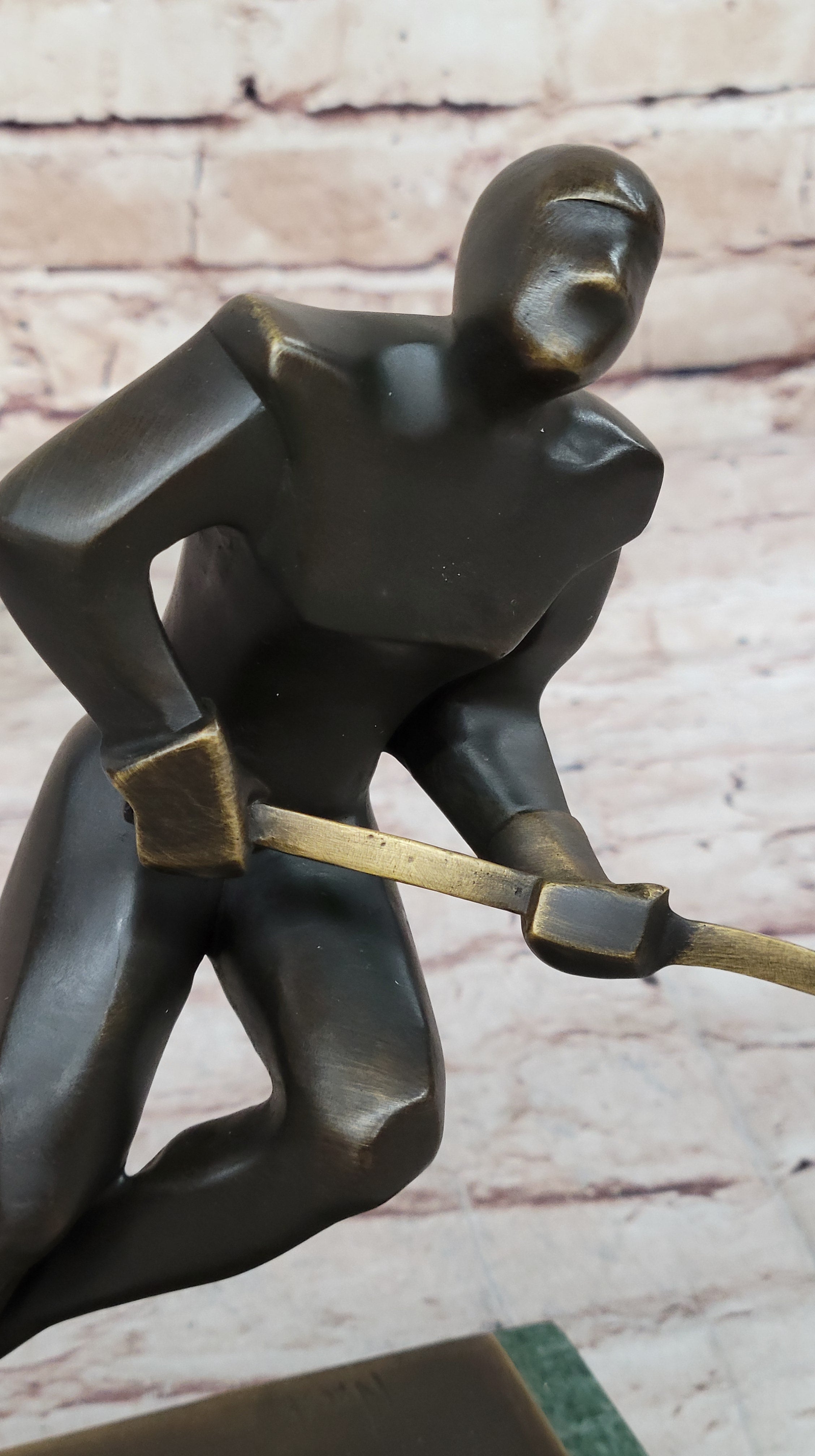 Bronze Metal Hockey Player Trophy Sculpture Statue Figurine on Marble Base
