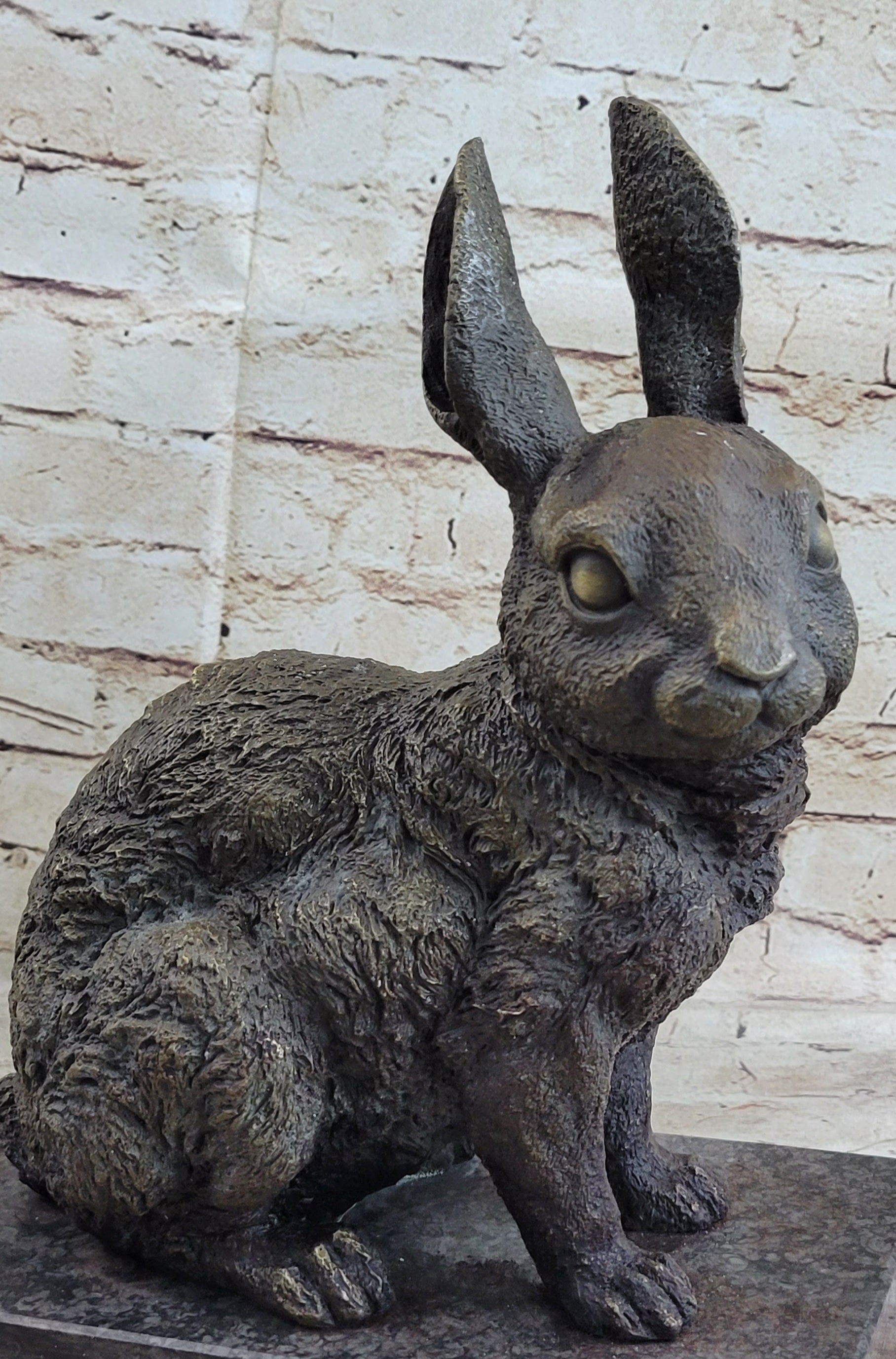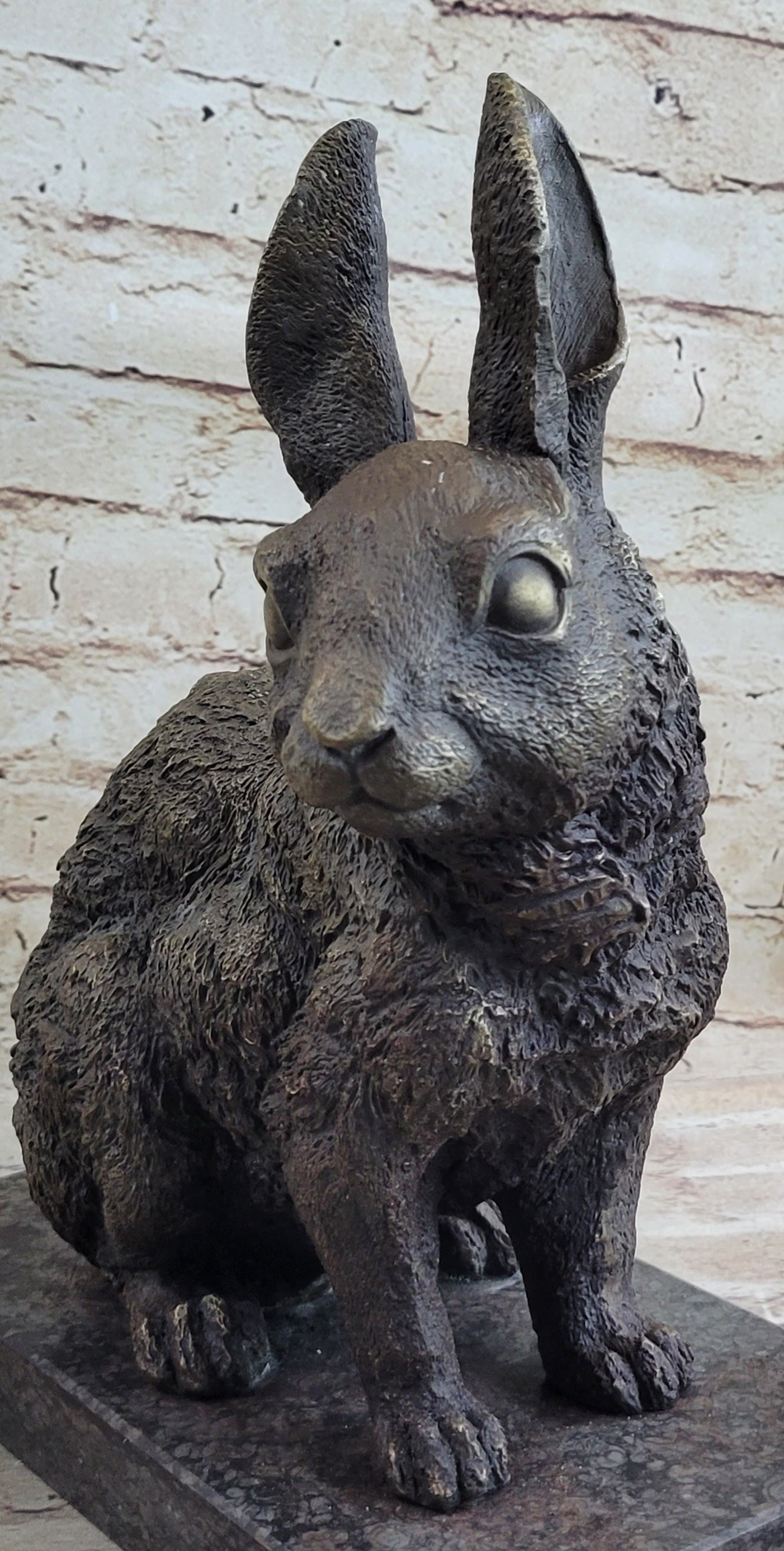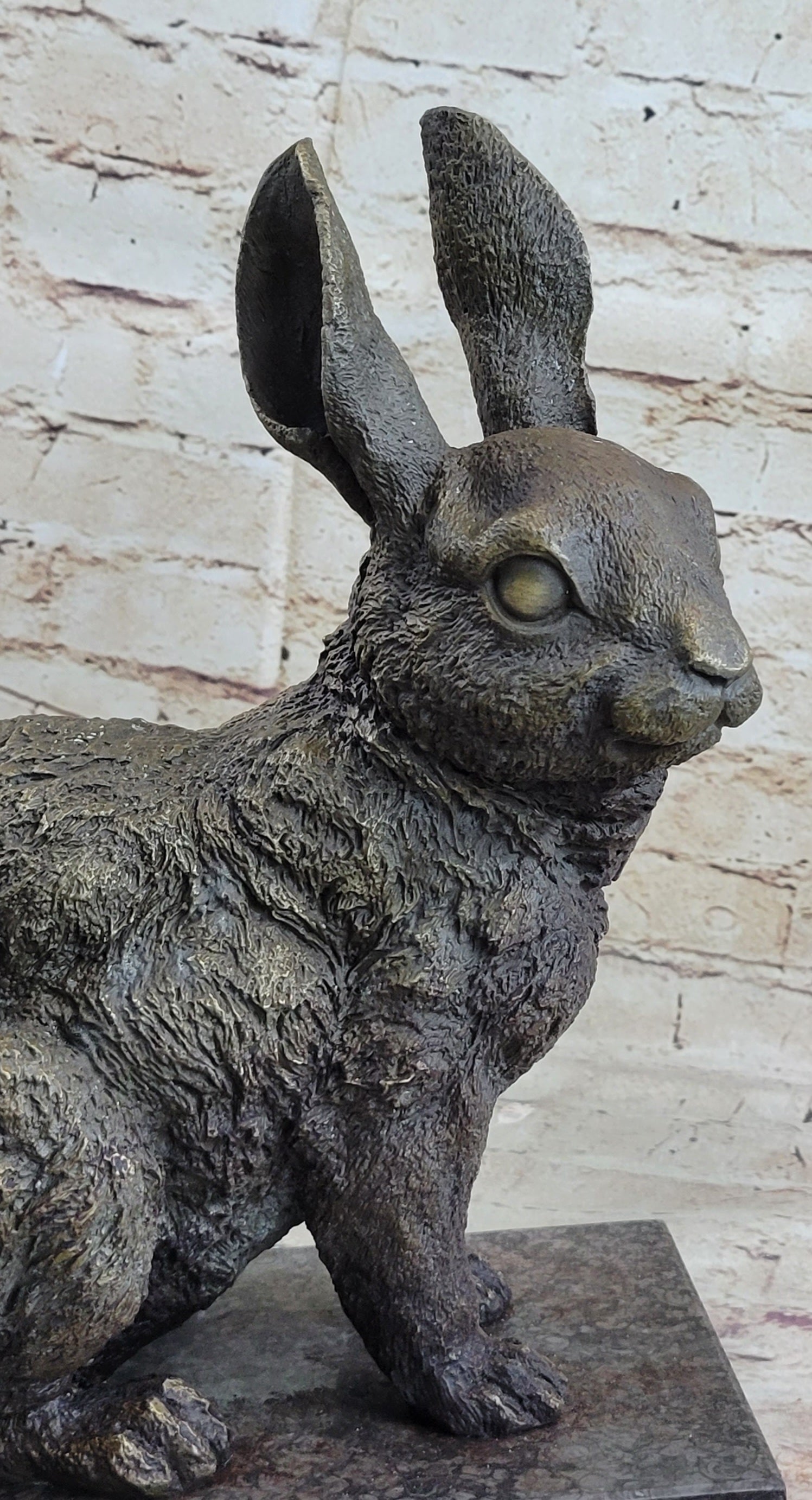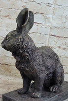 Bronze Metal Rabbit Bunny Sculpture Statue Figure on Marble Base Signed Original Art