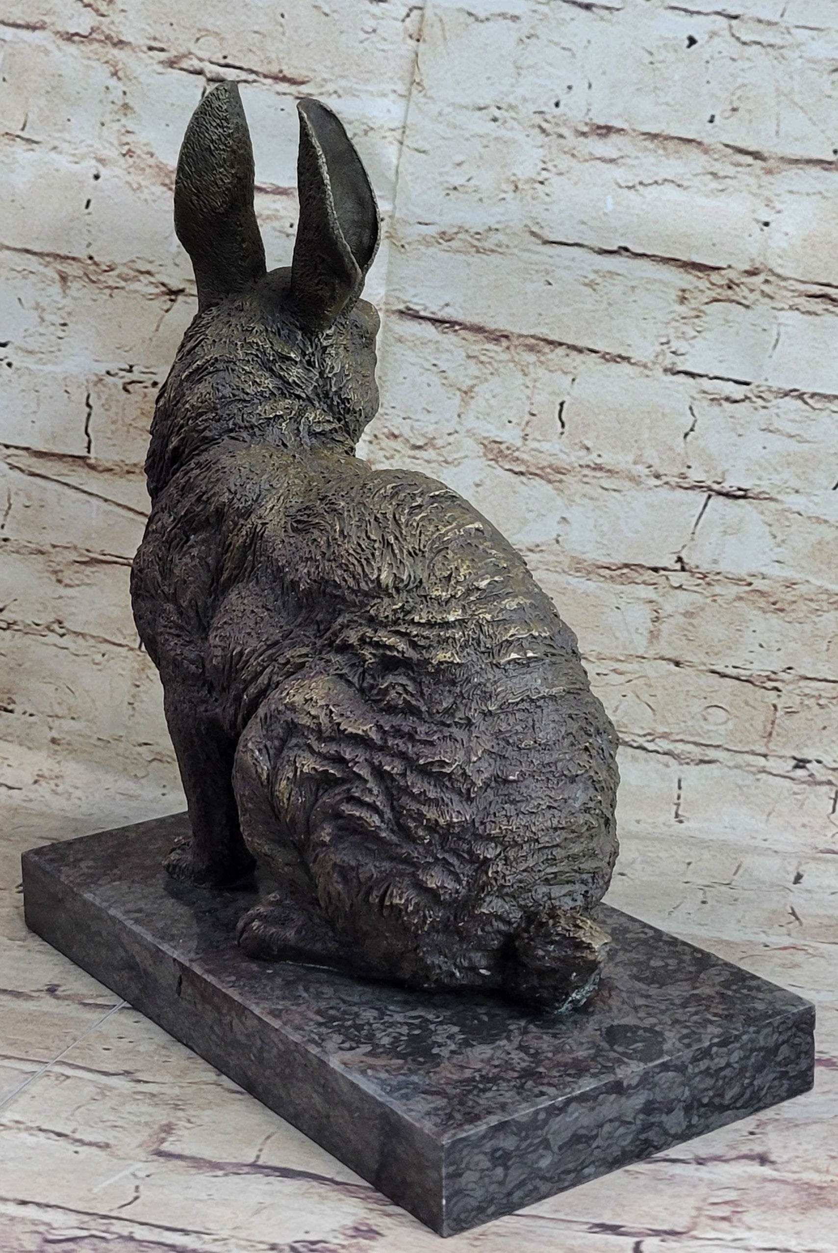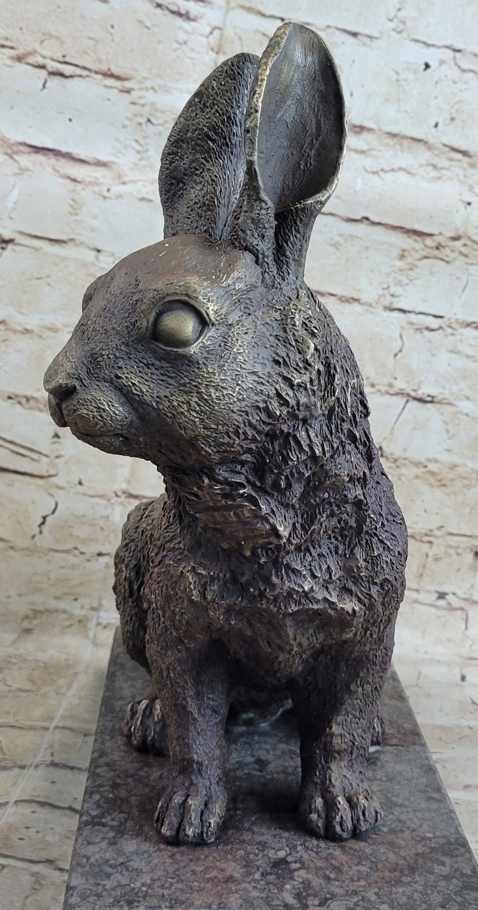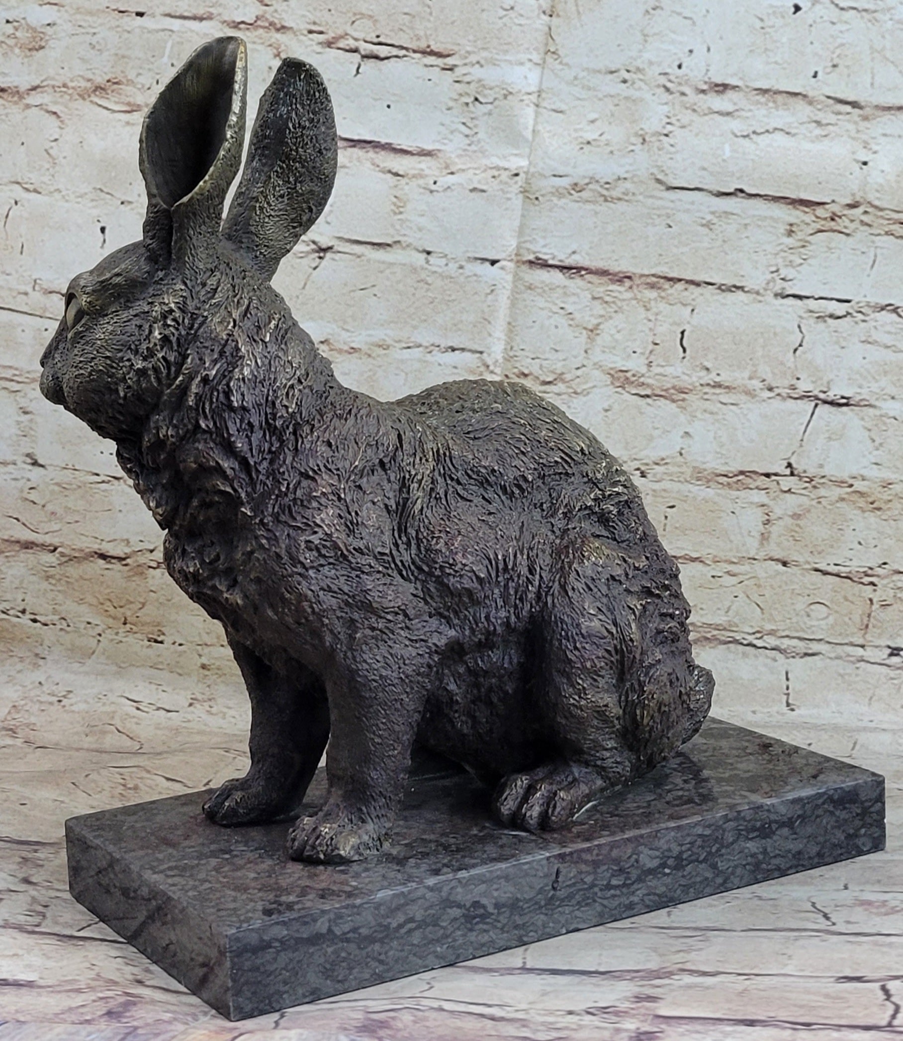Bronze Metal Rabbit Bunny Sculpture Statue Figure on Marble Base Signed Original Art