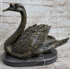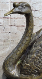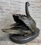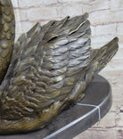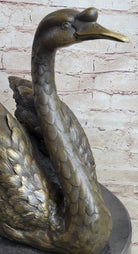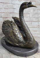 Bronze Metal Swan Bird Sculpture Statue Figure Decor on Marble Base Signed Original