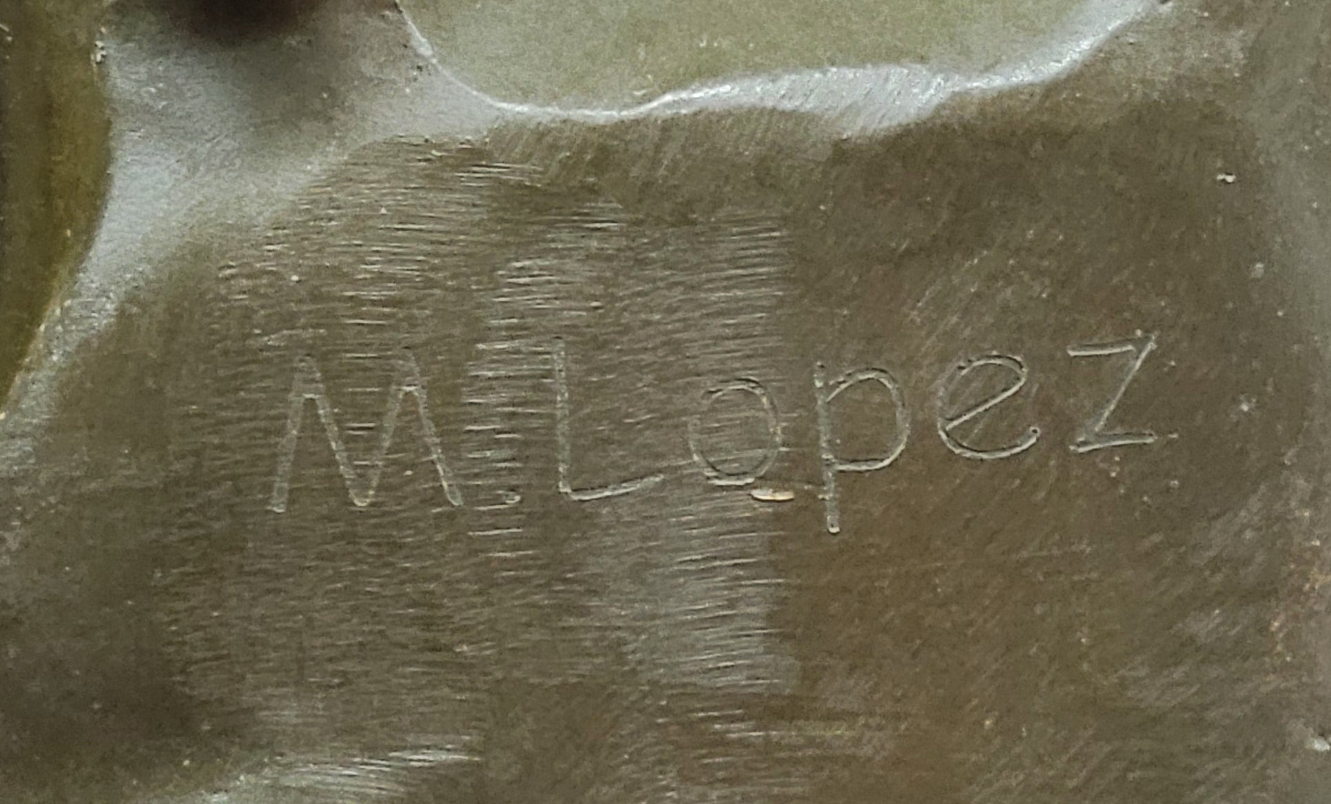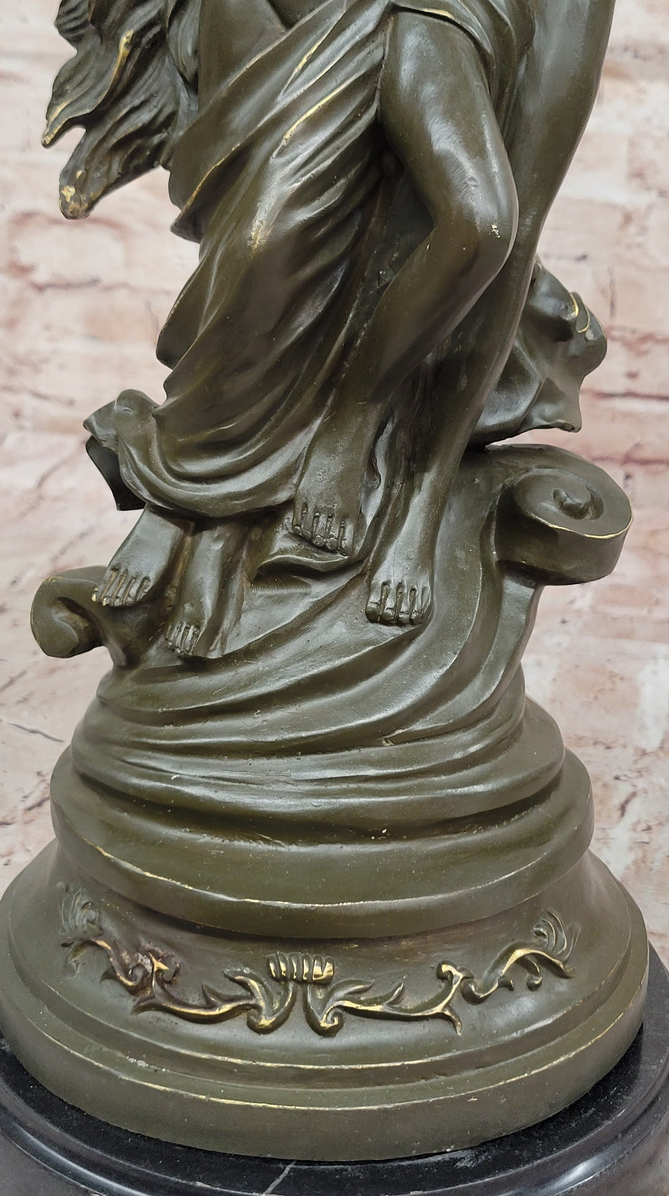 This large-scale artwork is mounted on a round black marble base, providing a sturdy foundation and contrasting beautifully with the warmth of the bronze. Signed by the artist, it makes a stunning statement in any fine art collection, classical décor, or romantic setting.Bronze Dimensions with Marble Base: Height 20.5" X Width 10"