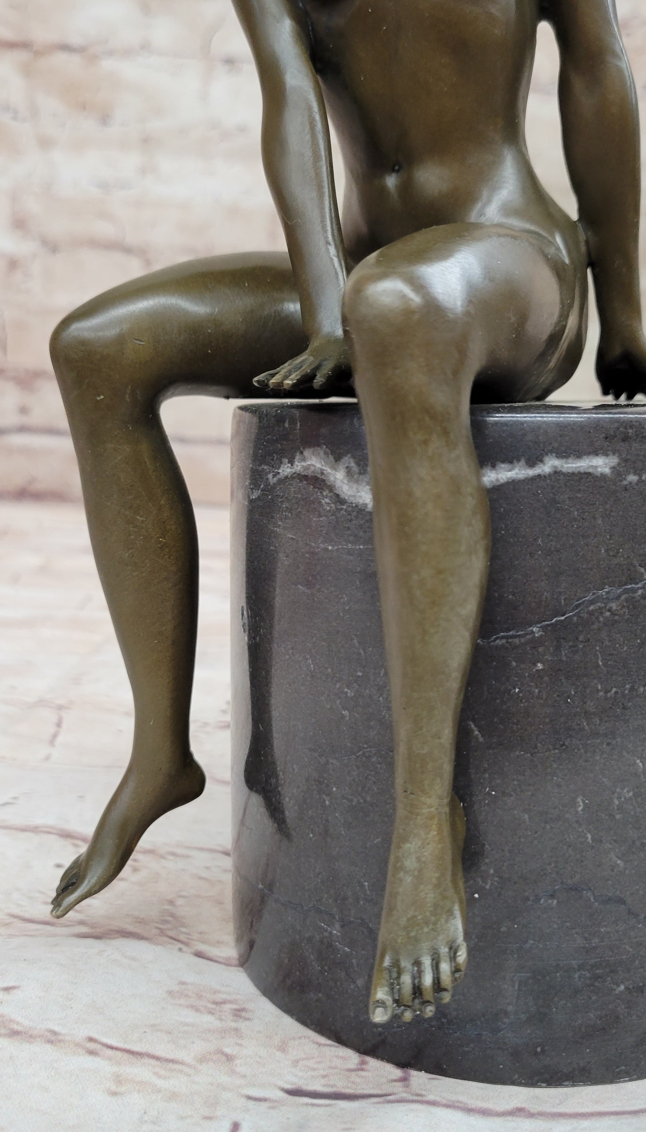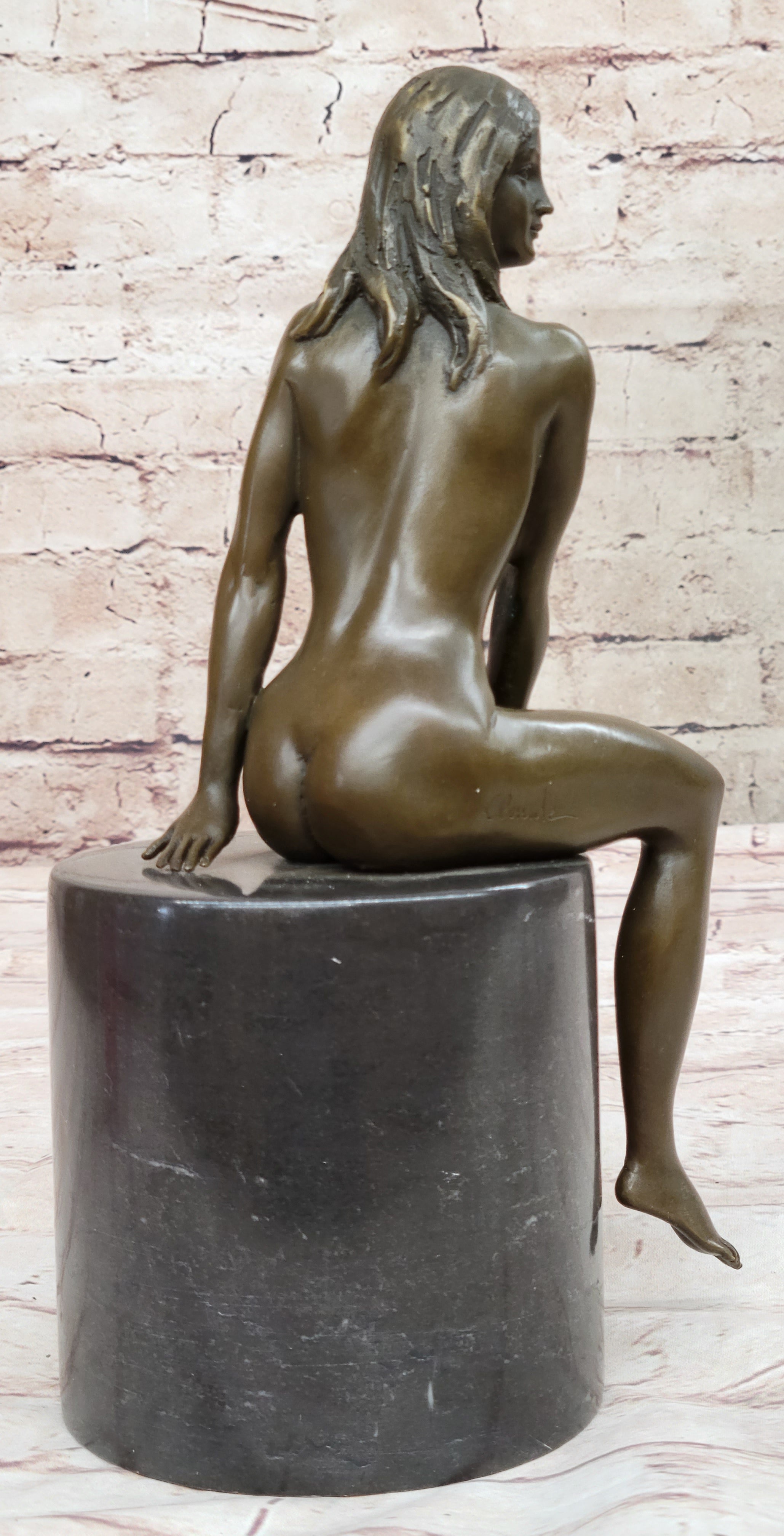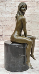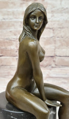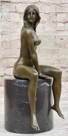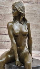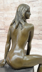 Bronze Nude Woman Sculpture on Marble Base – Seated Female Figurine Art
