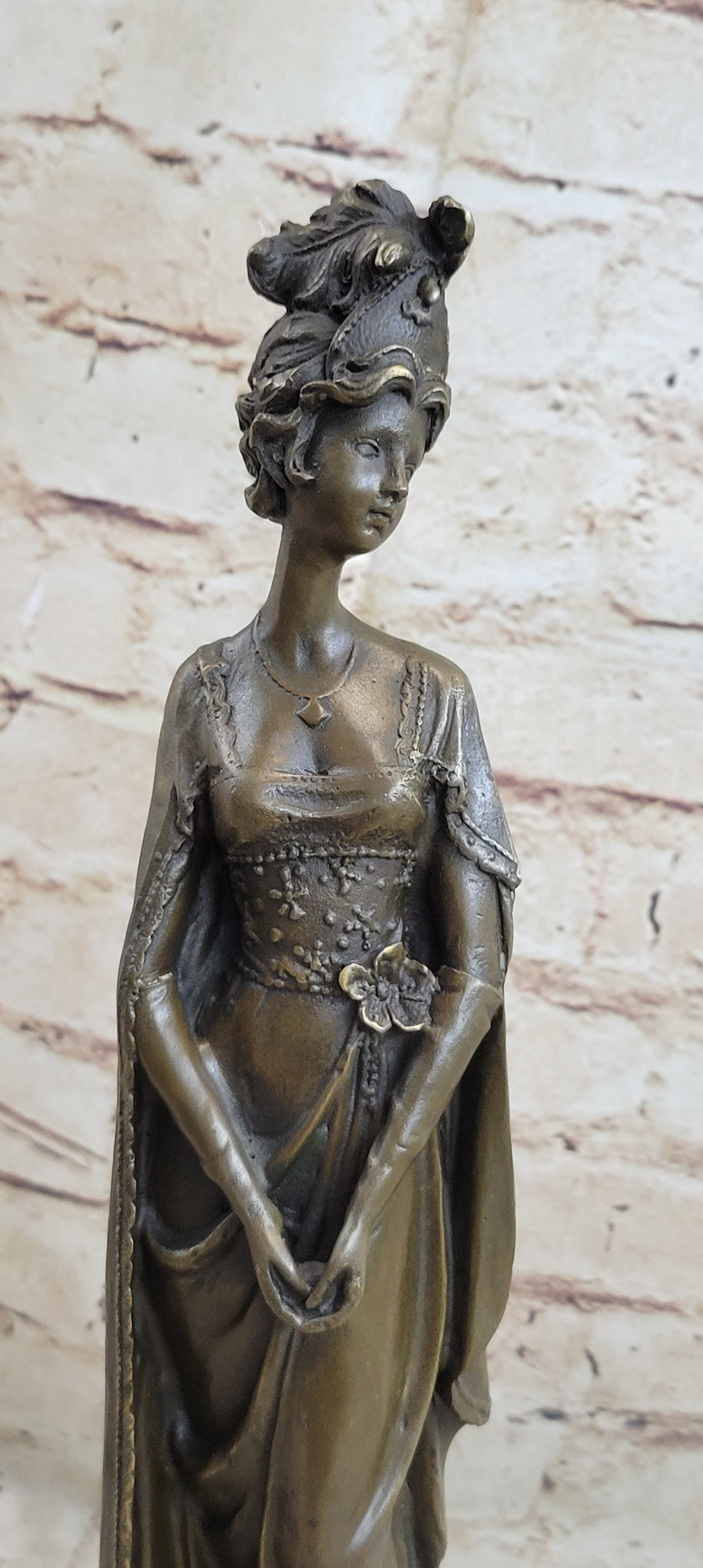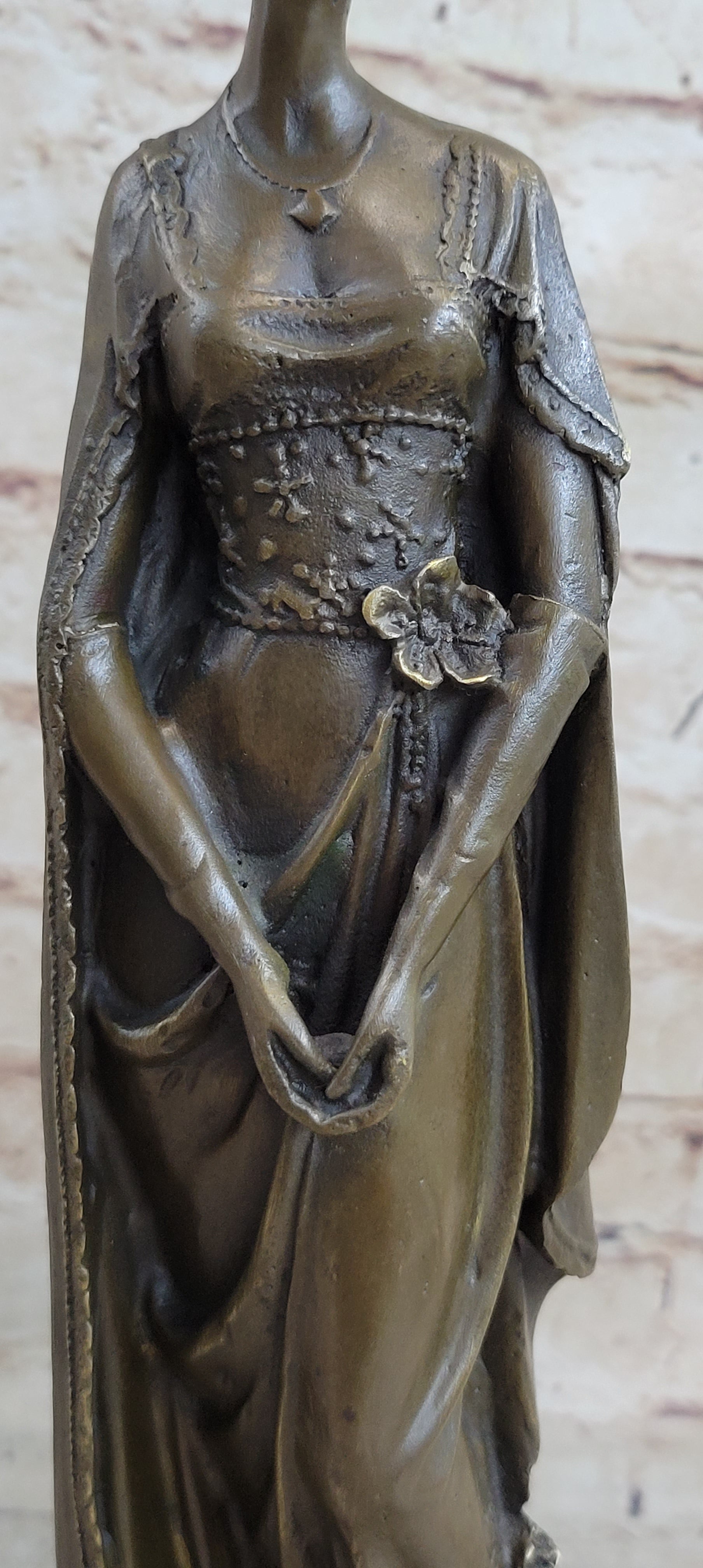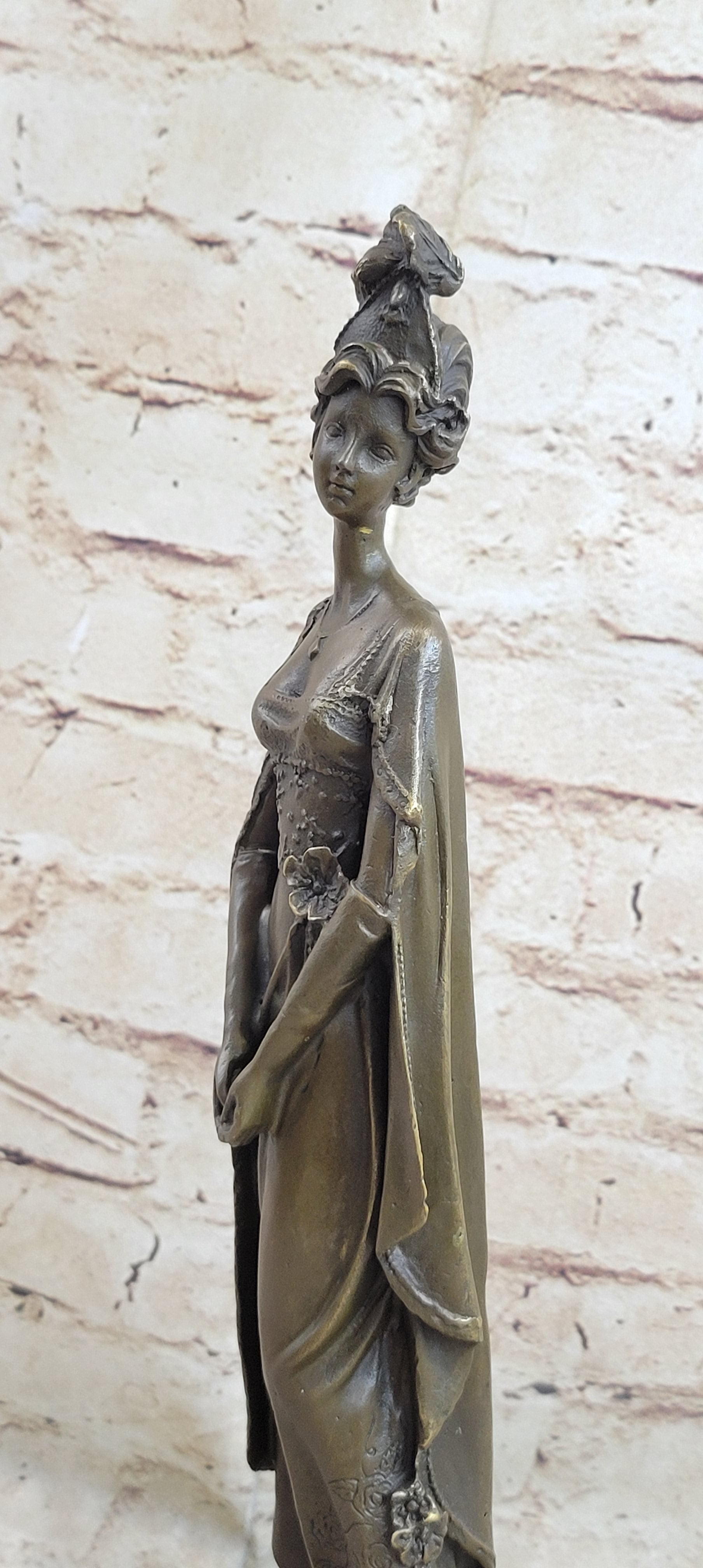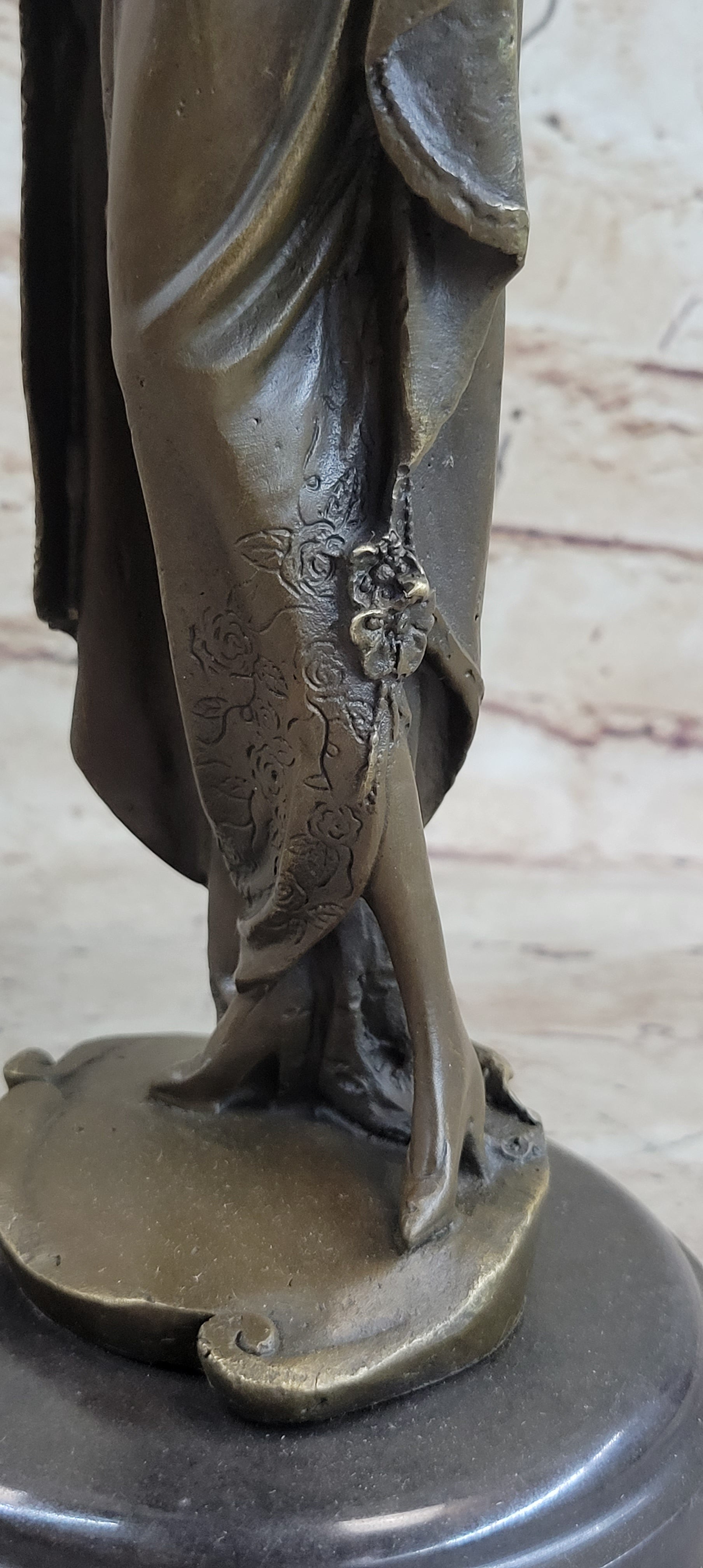 Bronze on Marble Statue Classical Victorian Girl Art Deco Sculpture 14" x 4.5"