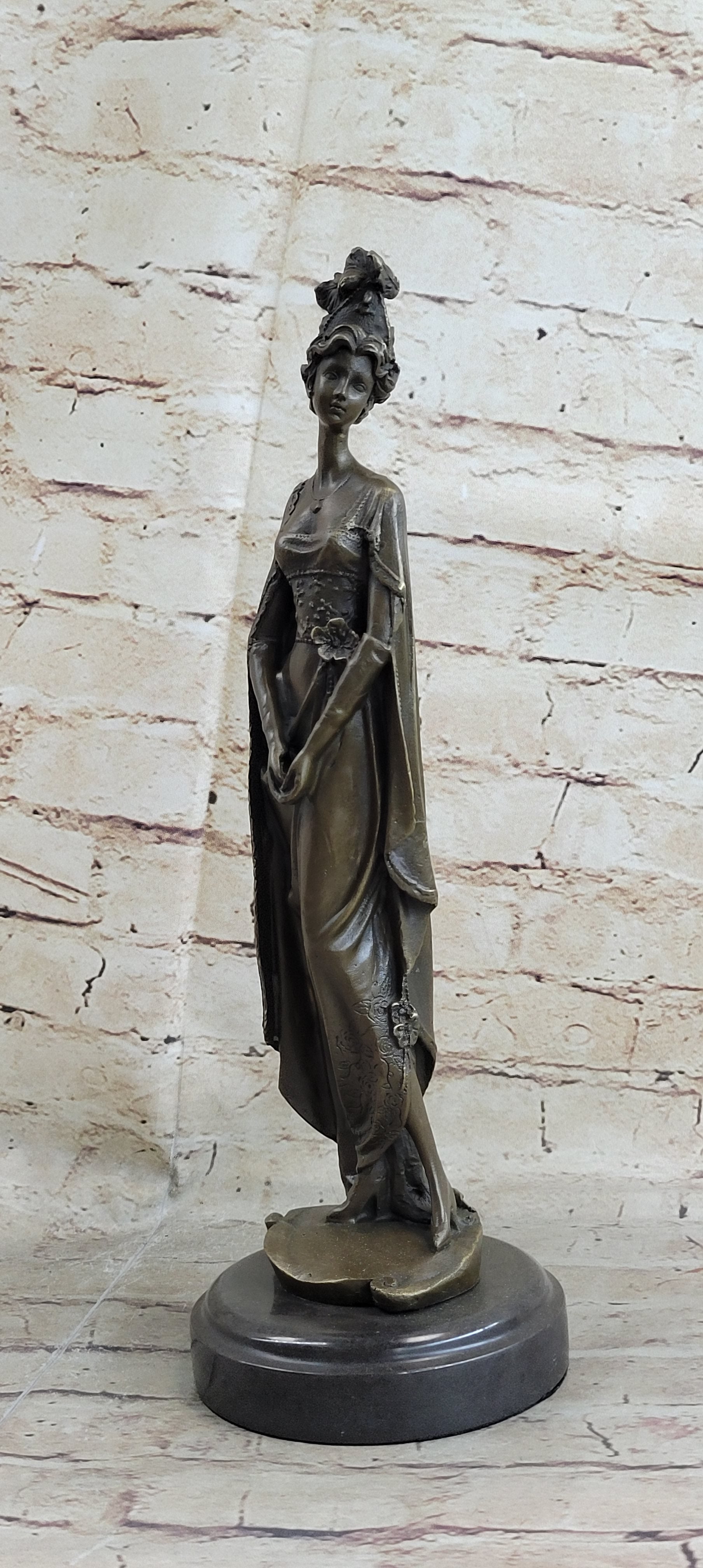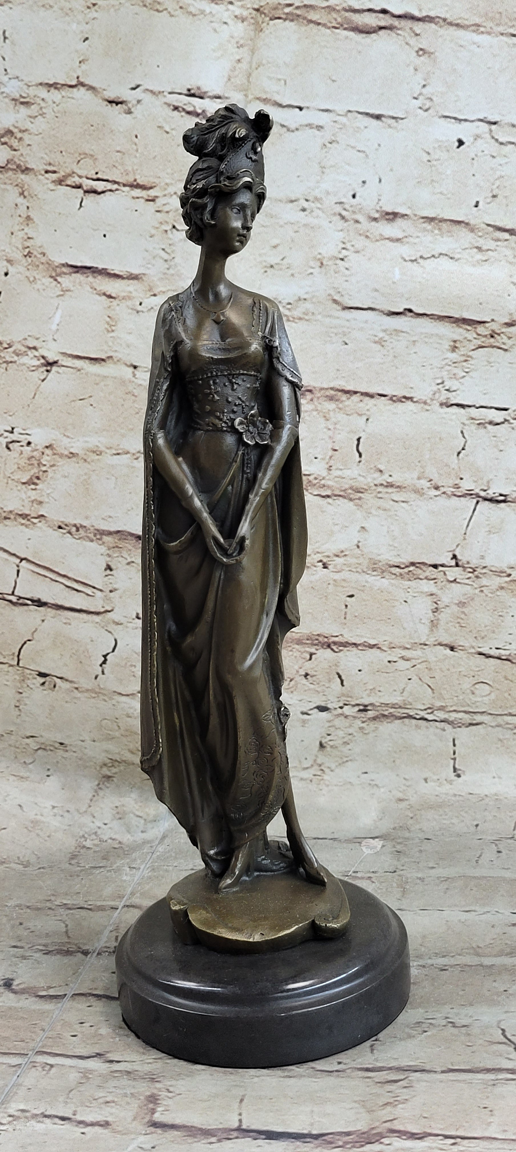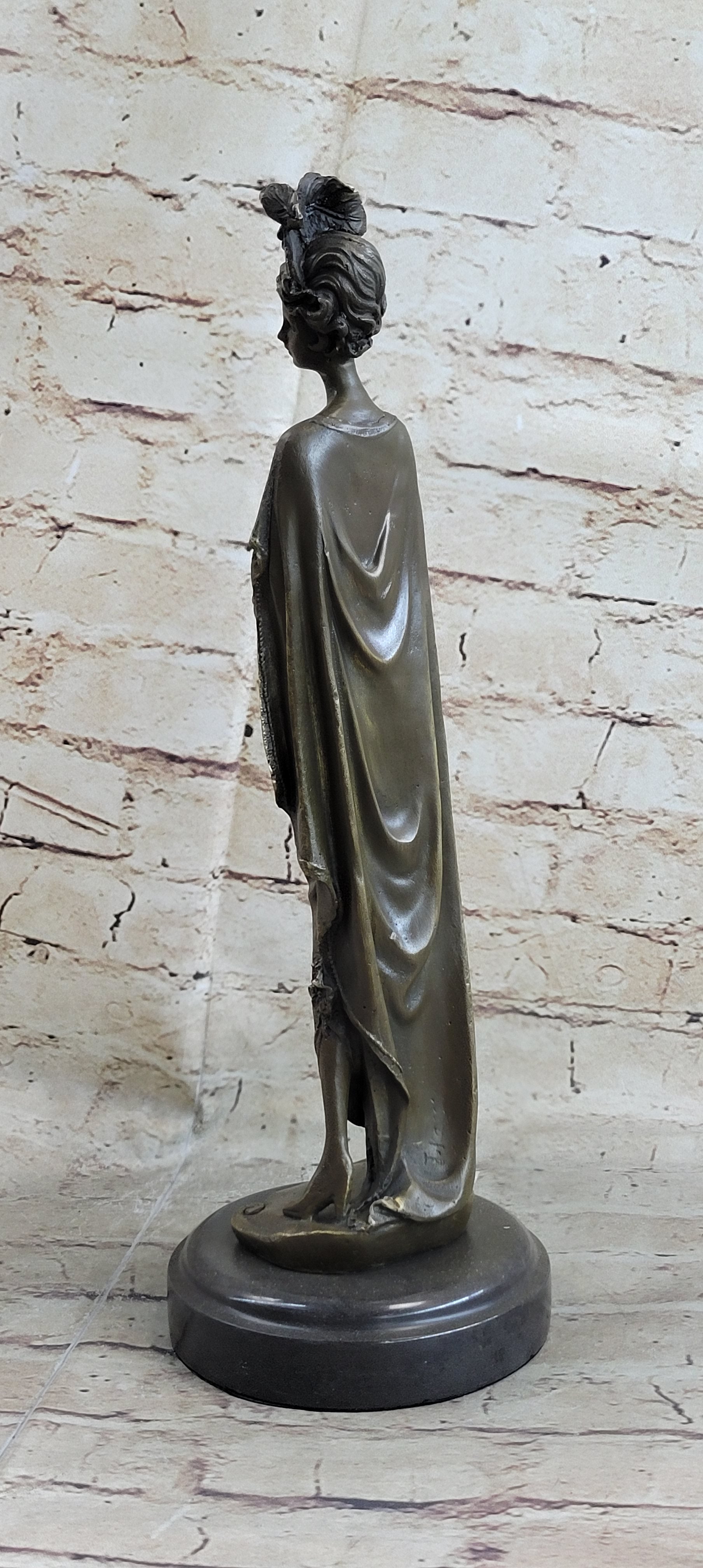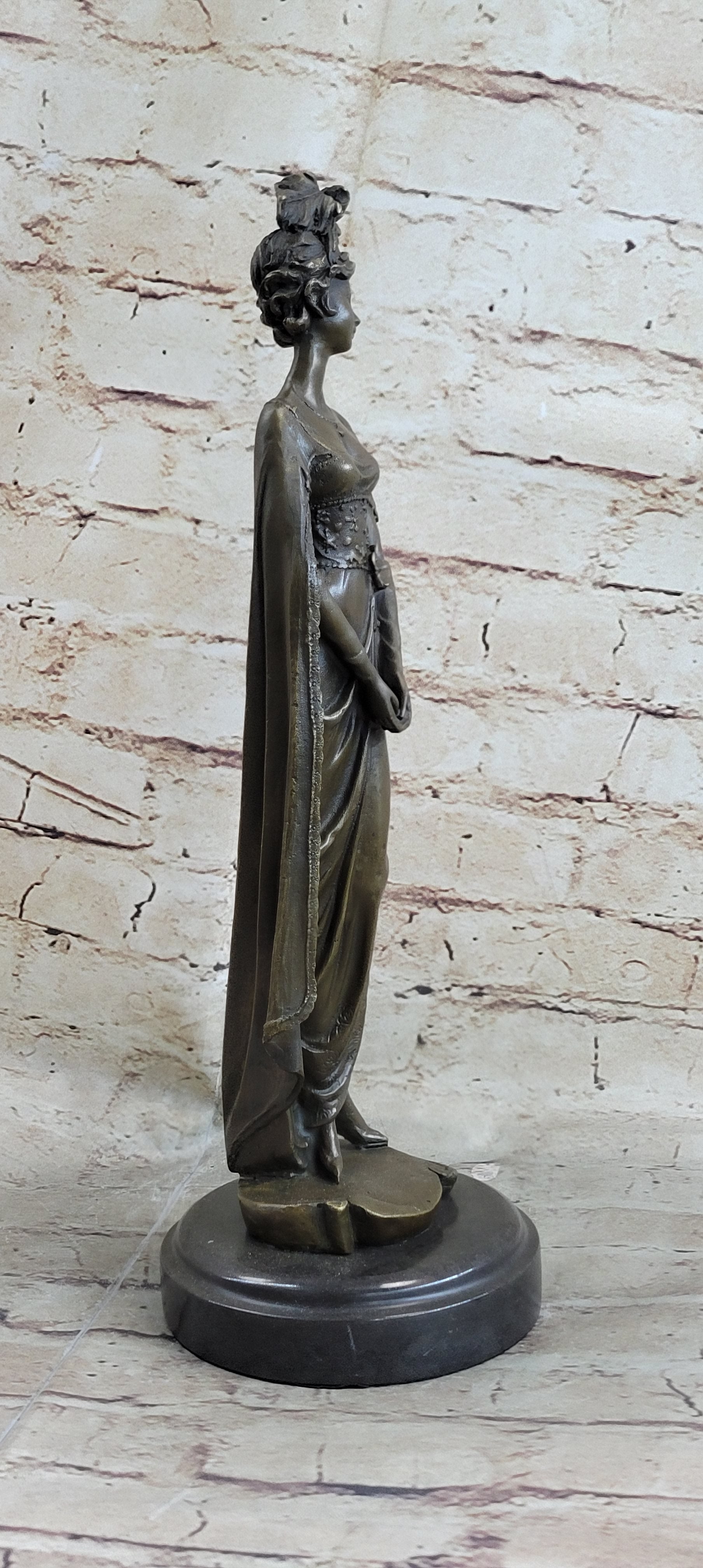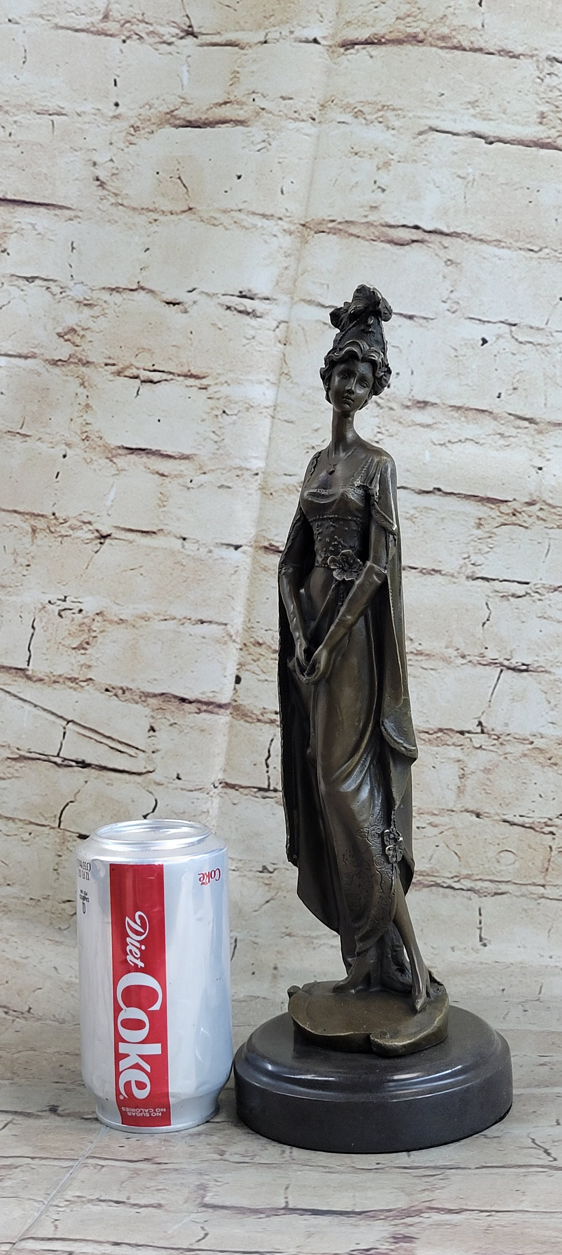 Bronze on Marble Statue Classical Victorian Girl Art Deco Sculpture 14" x 4.5"