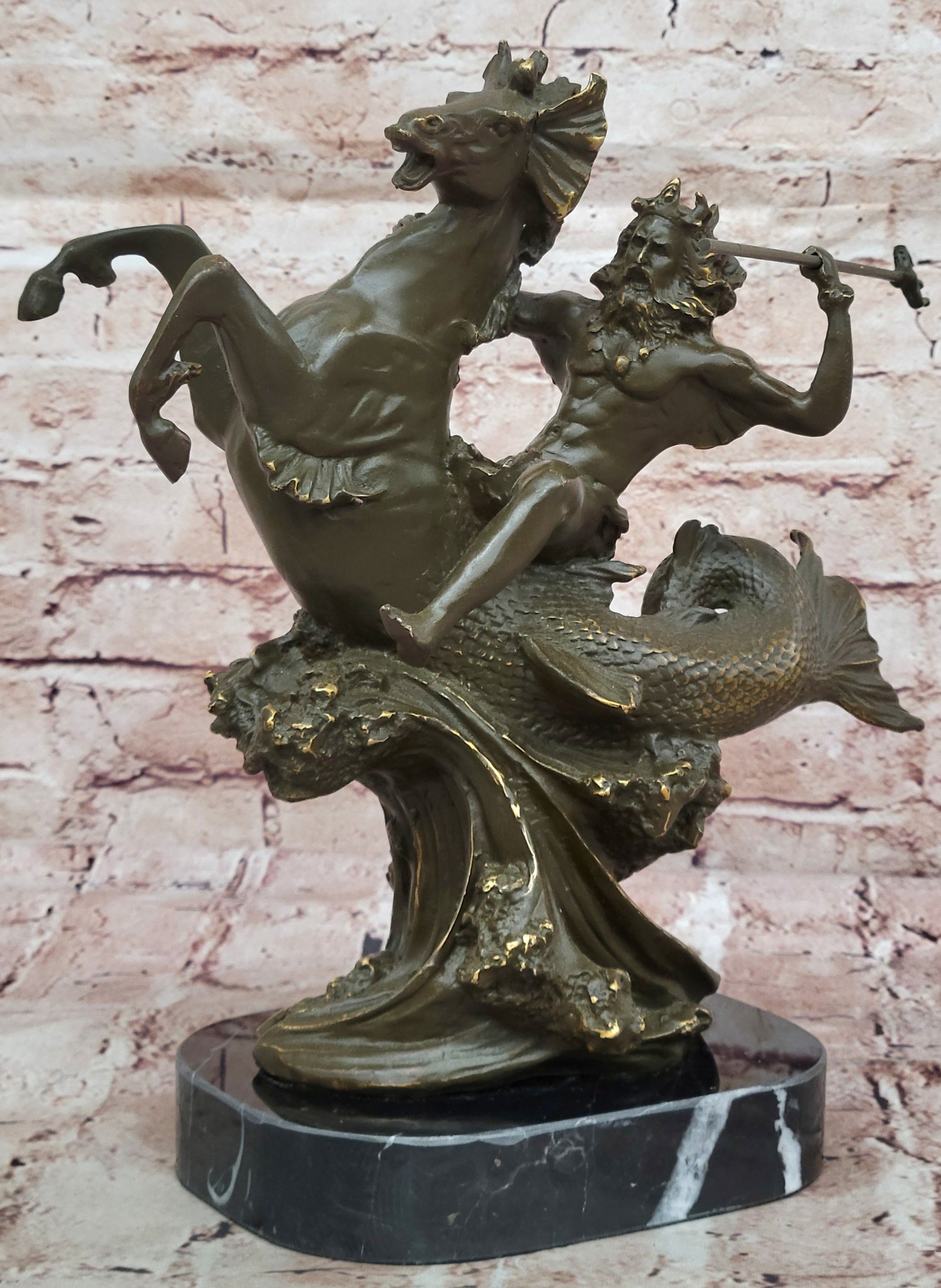 Bronze Poseidon Sculpture – Greek Sea God on Hippocampus Figurine