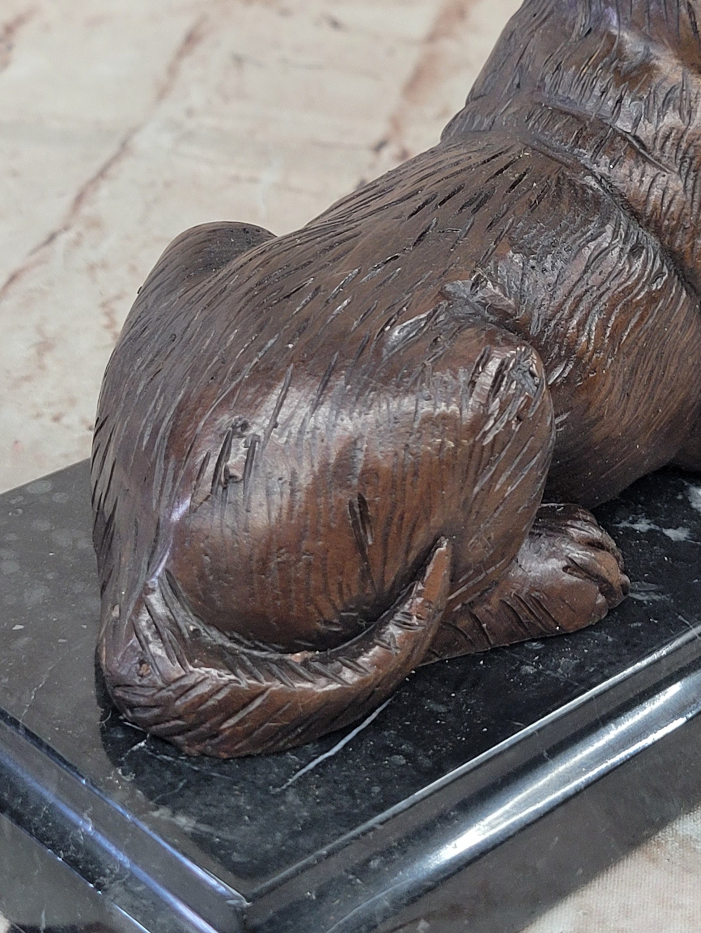 Bronze Puppy Sculpture – Adorable Dog Figurine on Marble Base