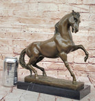 Bronze Rearing Horse Sculpture – Majestic Stallion Statue on Marble Base