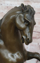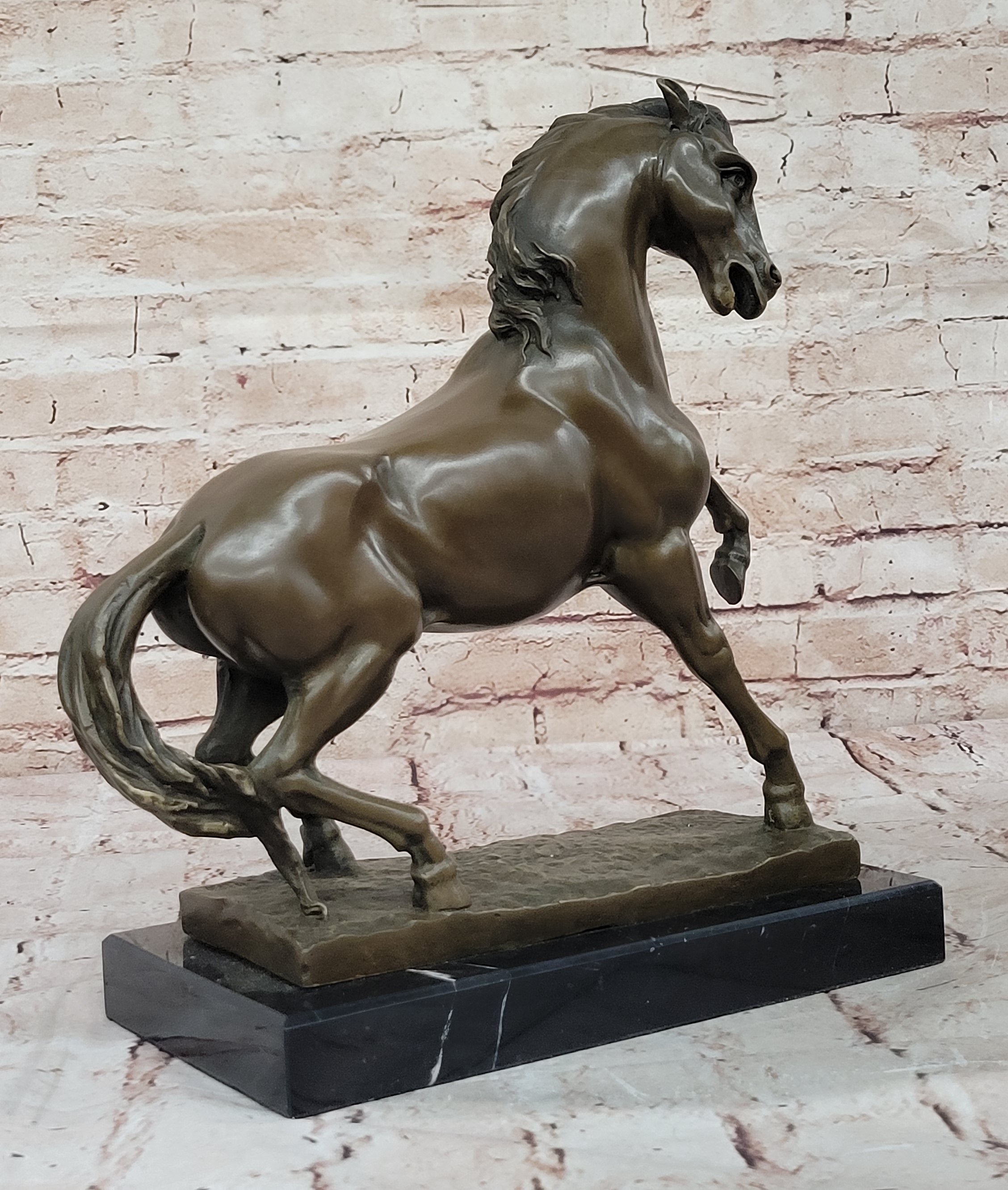 Handcrafted using the traditional lost wax method, this statue is made entirely of solid bronze and finished with a rich brown patina that enhances its depth and texture. Every contour—from the flowing mane to the powerful legs—is rendered with meticulous attention, showcasing the skill of the sculptor and the timeless beauty of equine form. The piece is signed by the artist, certifying its authenticity and collectible value.