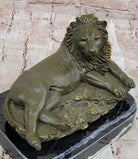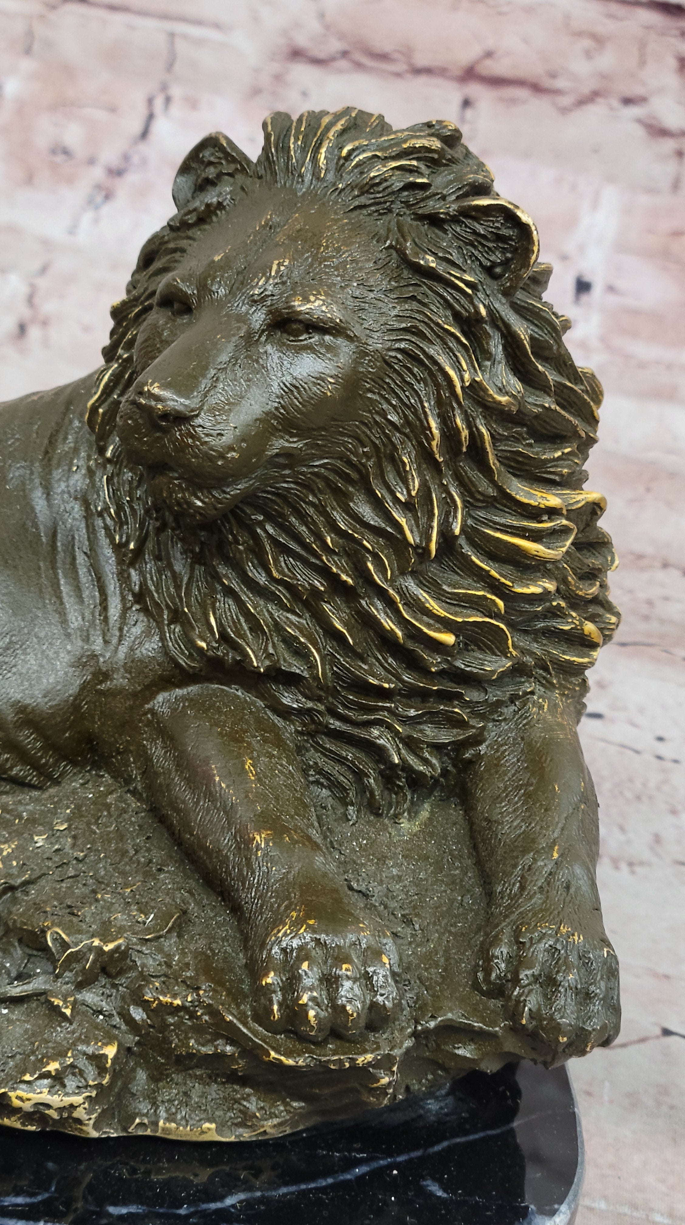 Bronze Reclining Lion Statue Majestic Wildlife Sculpture Decor