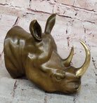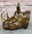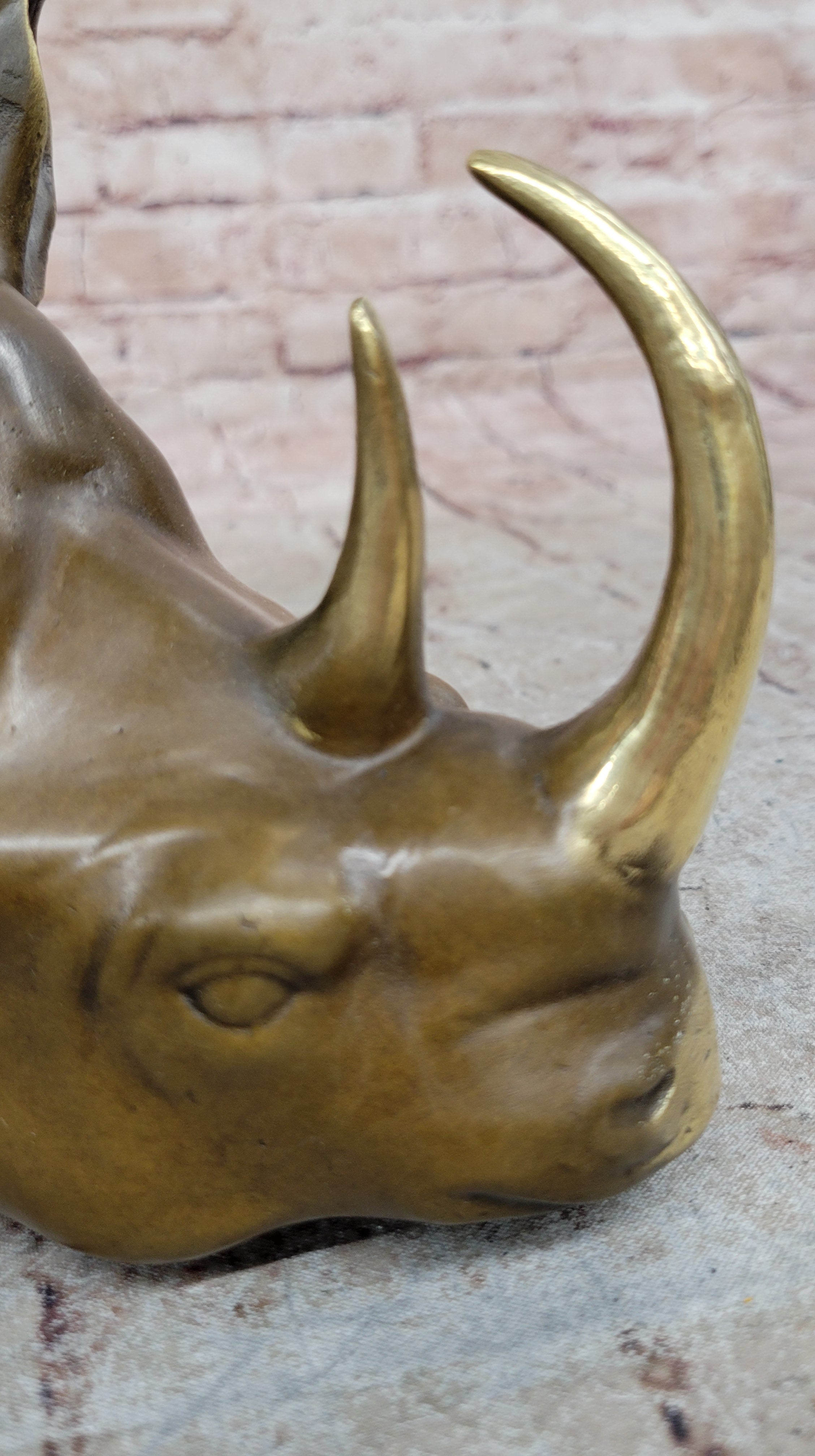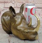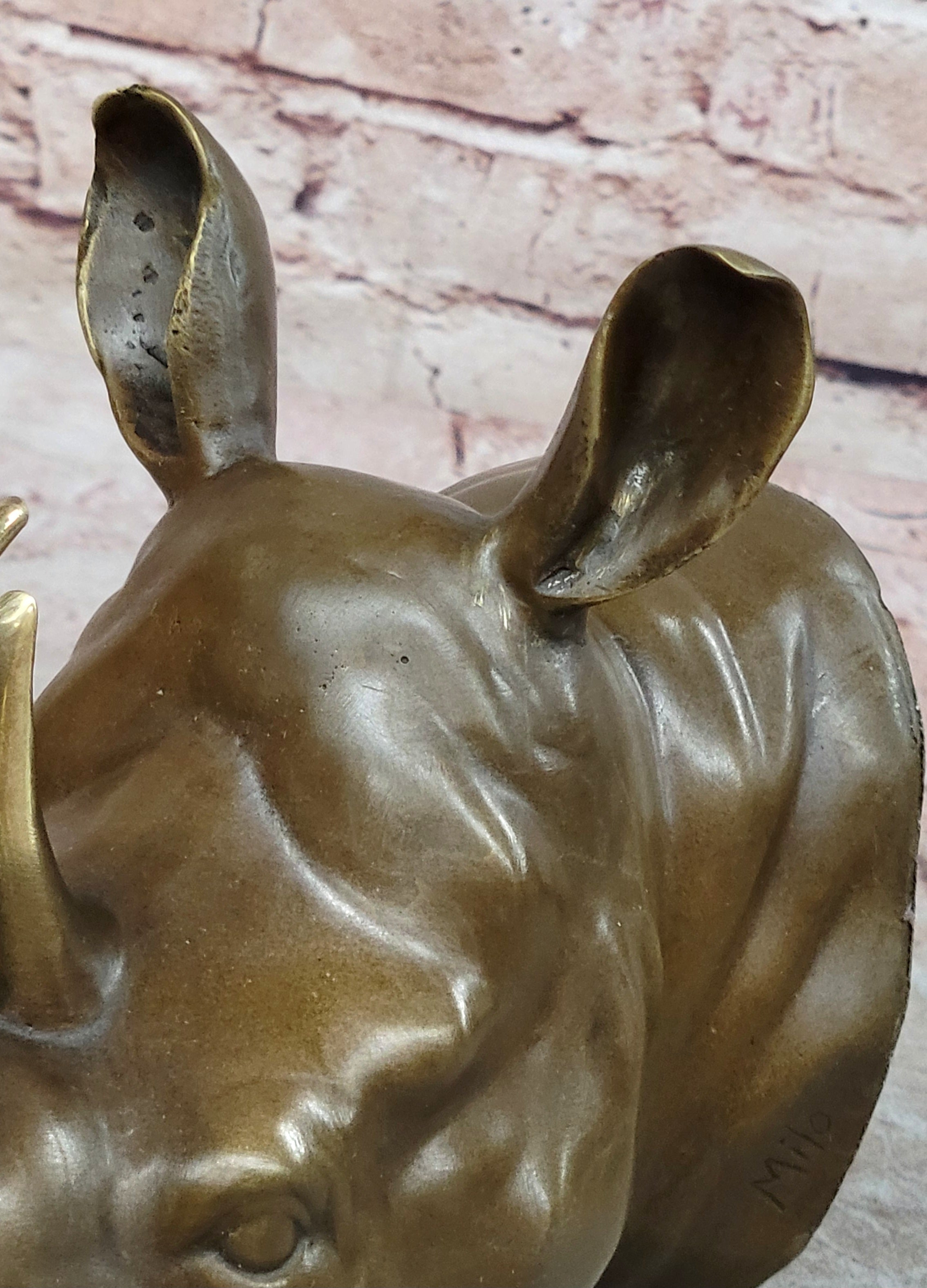 Bronze Rhinoceros Bust Sculpture with Horns Wildlife Statue