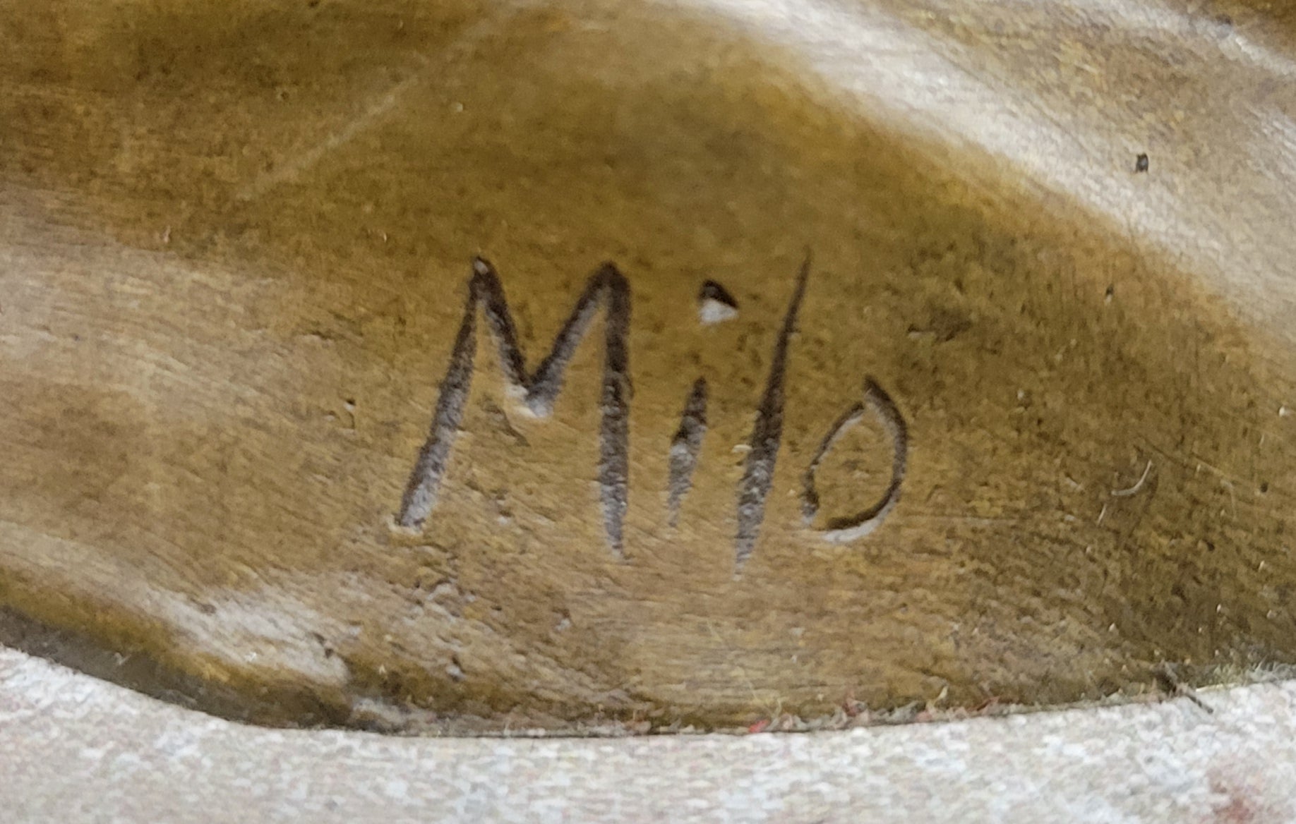 Adding to its authenticity, the sculpture is signed by the artist Thomas, marking its connection to the skilled hands that brought it to life. This signature not only attests to the craftsmanship but also offers a personal touch, creating a connection between the viewer and the artist. Whether hung in a living space, office, or outdoor setting, this rhinoceros head sculpture stands as a testament to the beauty of wildlife art, celebrating the grace and power of one of nature's most formidable creatures.Bronze Dimensions: Height 7" X Width 7"