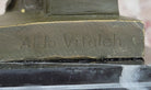 The figurine is mounted on a solid black marble base, providing both visual contrast and a sturdy foundation. Whether displayed in a study, library, or office, this signed original stands as a powerful symbol of leadership, legacy, and the grandeur of ancient Rome. It is a timeless collectible for history enthusiasts, art lovers, and admirers of classical antiquity.Bronze Dimensions with Marble Base: Height 10.5" X Width 4"