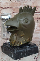 Bronze Rooster Head Bust on Marble Base – Stylized Zodiac Sculpture