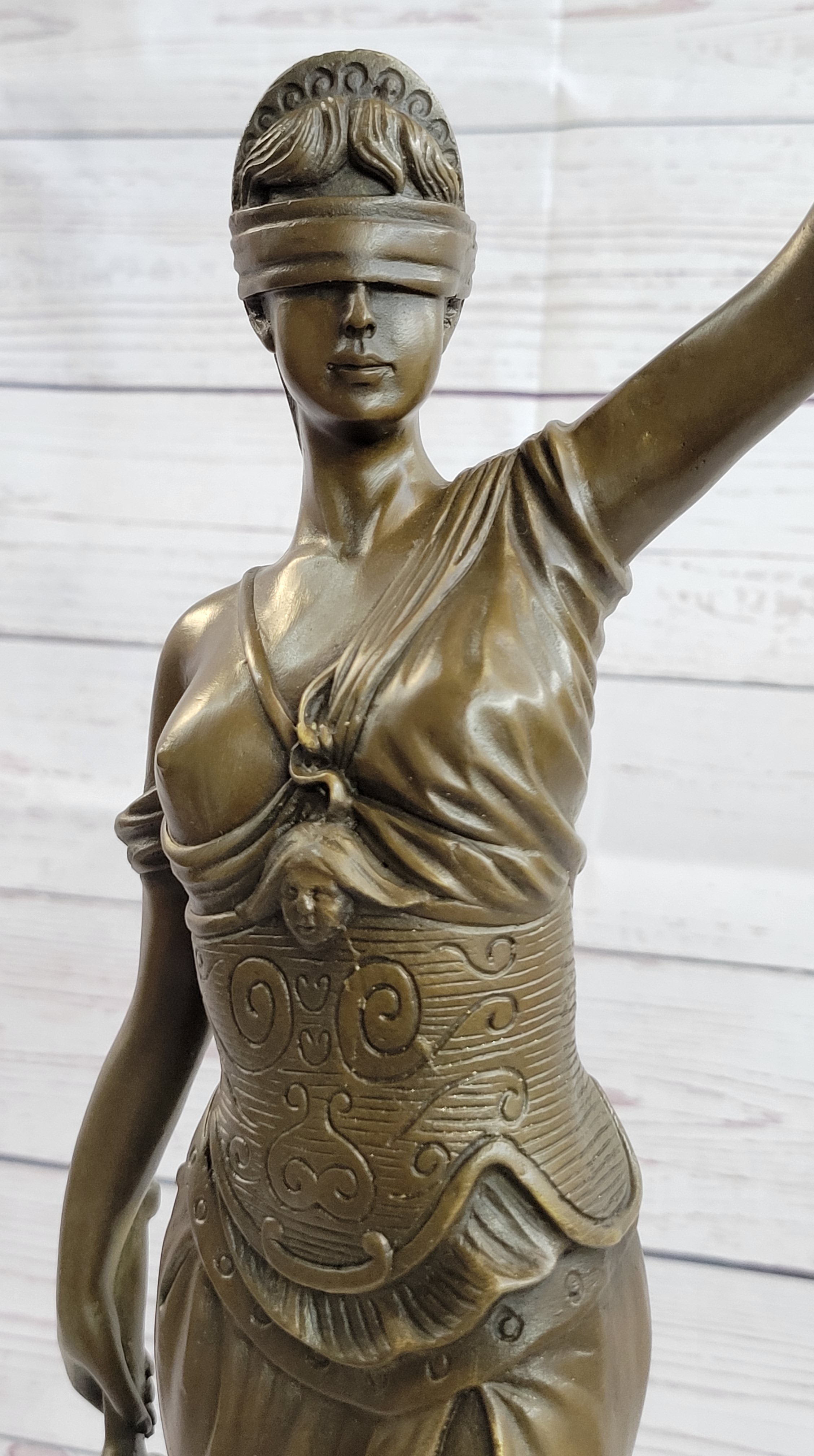 BRONZE SCALE OF JUSTICE BLIND JUSTICE SCULPTURE STATUE CLASSICAL FIGURINE 18'' NR