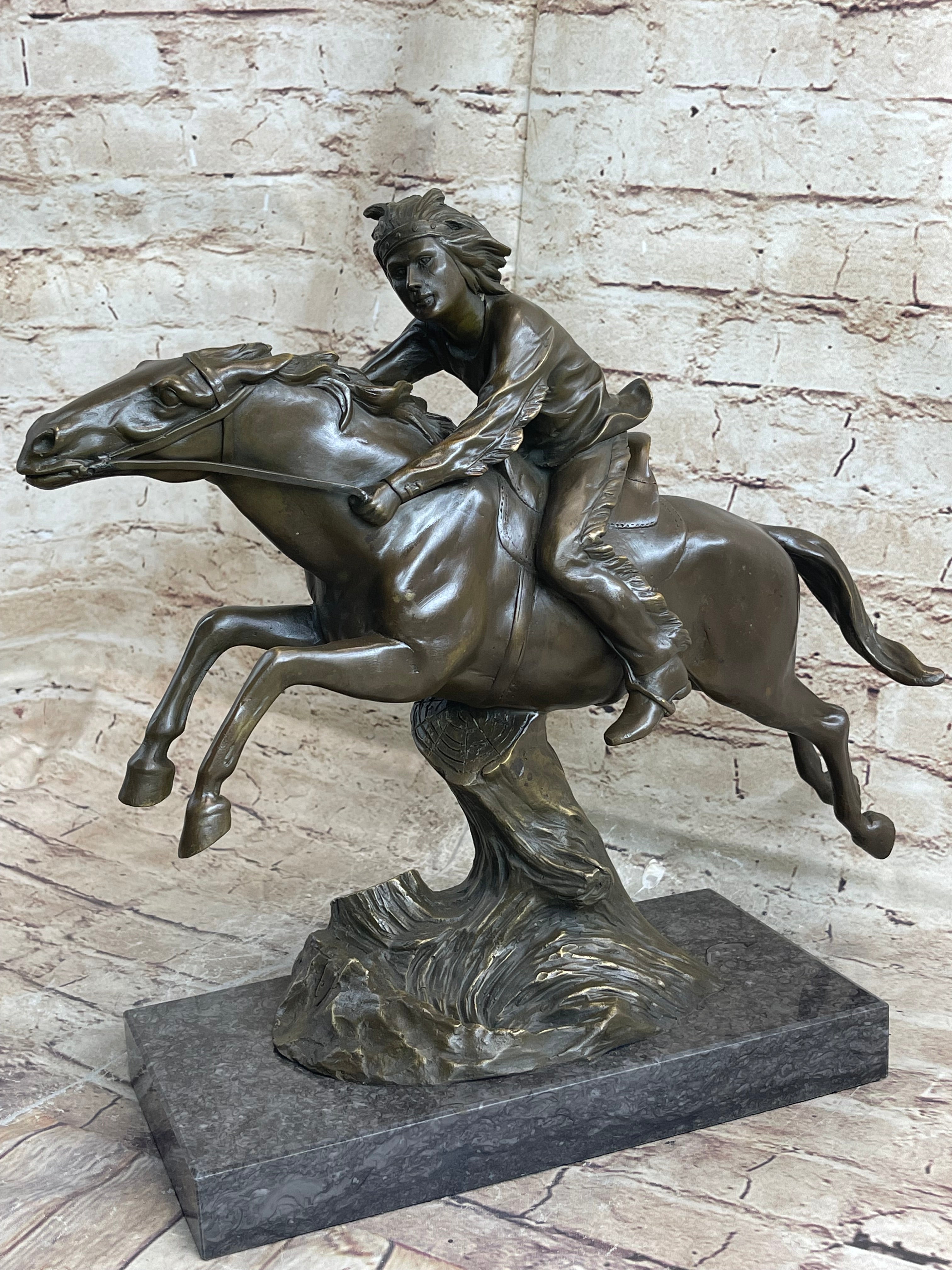 Bronze Sculpture by Antoine Bofill - Le dernier d’une race - Native American on Horse