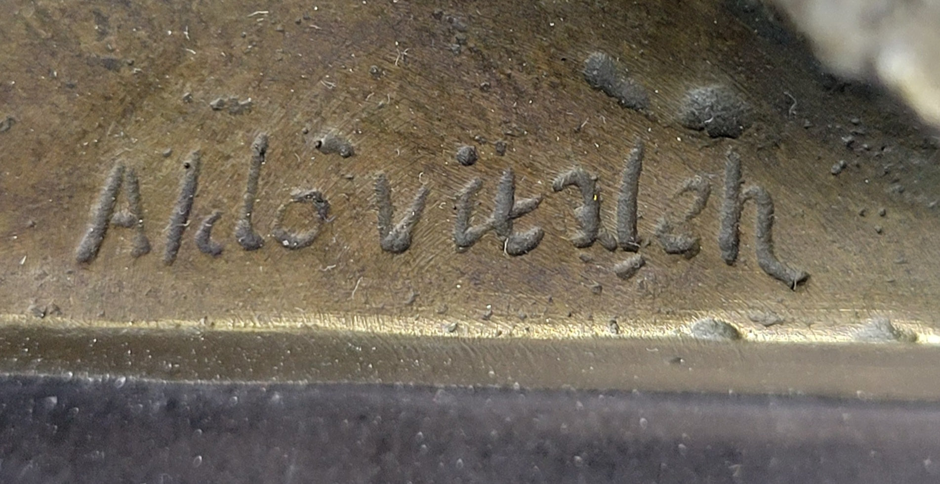 This fine bronze artwork was handcrafted using the lost wax method and completed with a rich brown patina finish. It rests upon a smooth black marble base, bearing the signature of Aldo Vitaleh — a true testament to artistic mastery and timeless romantic expression.Bronze Dimensions with Marble Base: Height 16" X Width 6.5"
