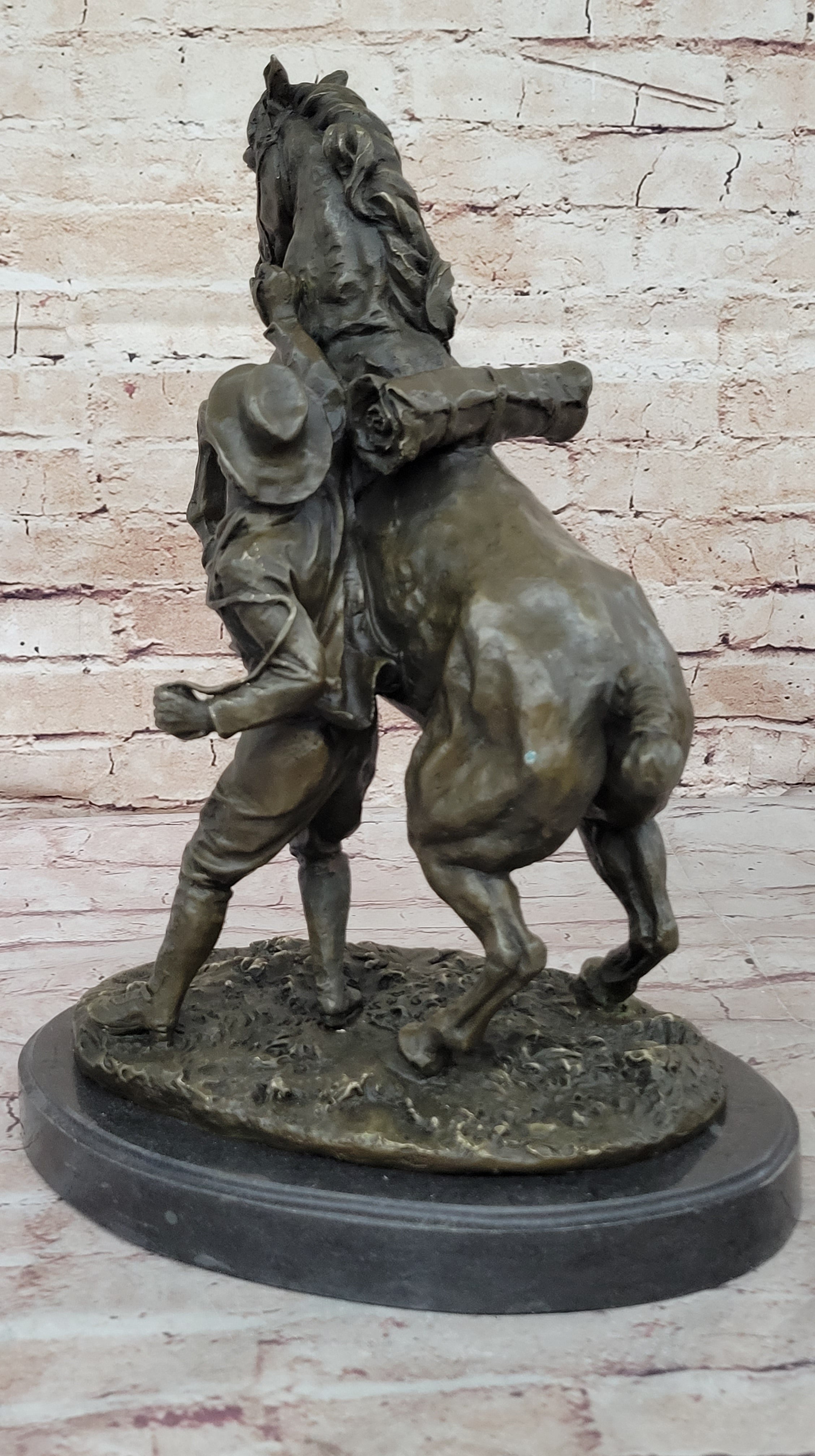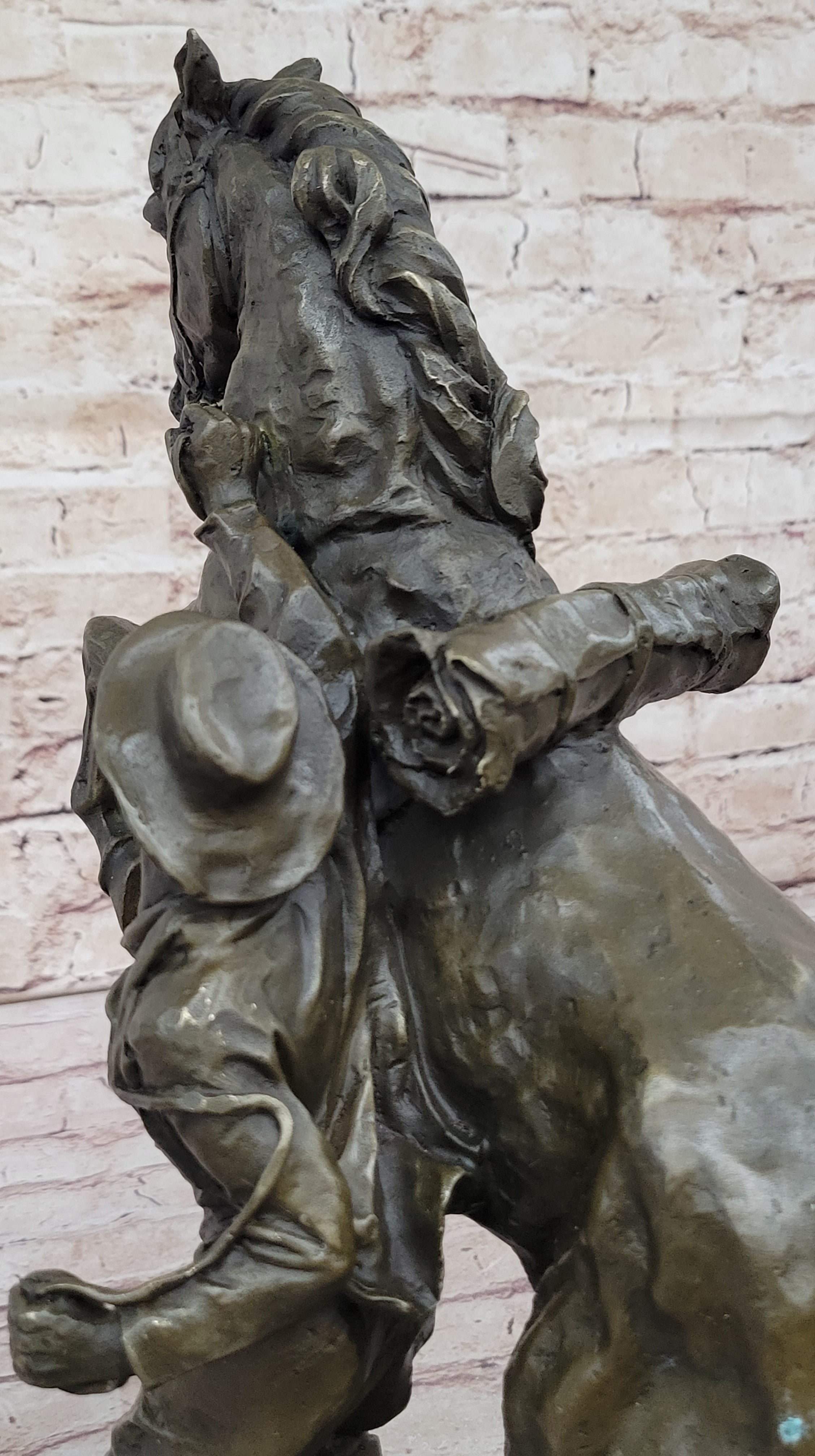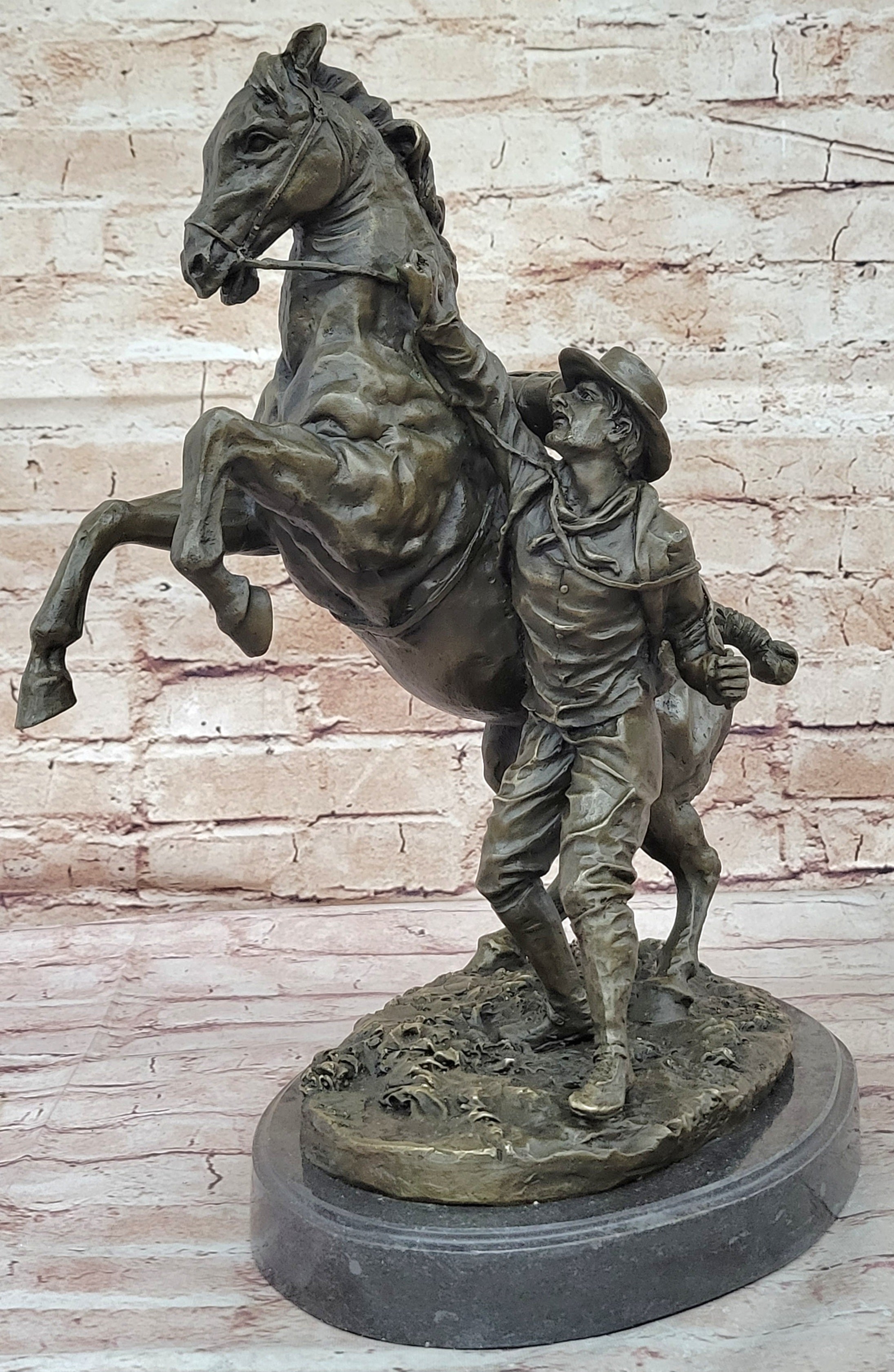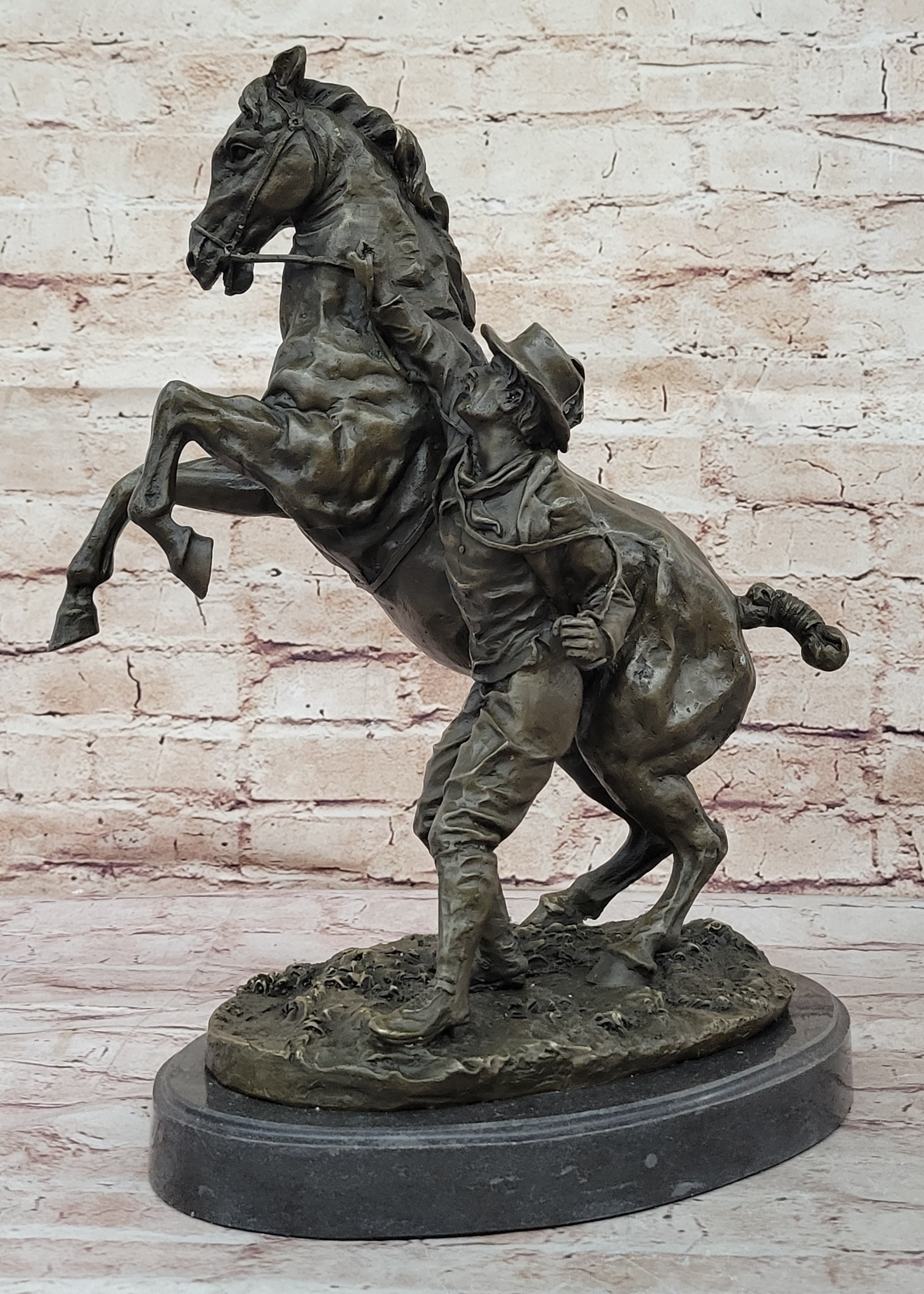 Bronze Sculpture of Cowboy Taming a Rearing Horse – Western Art