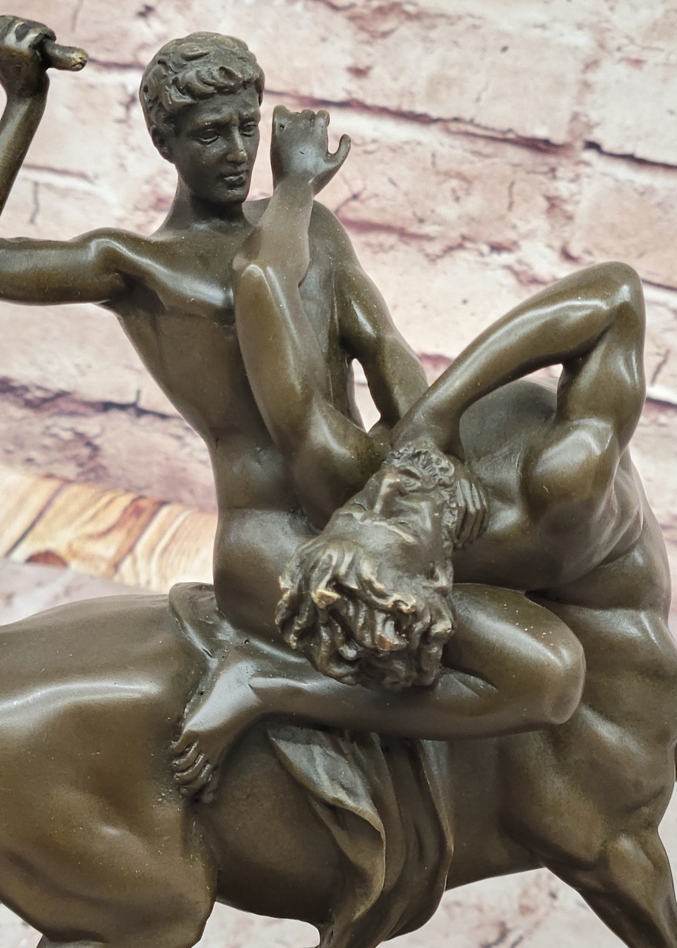 Bronze Sculpture of Theseus or Hercules Battling a Centaur - Mythological Artwork