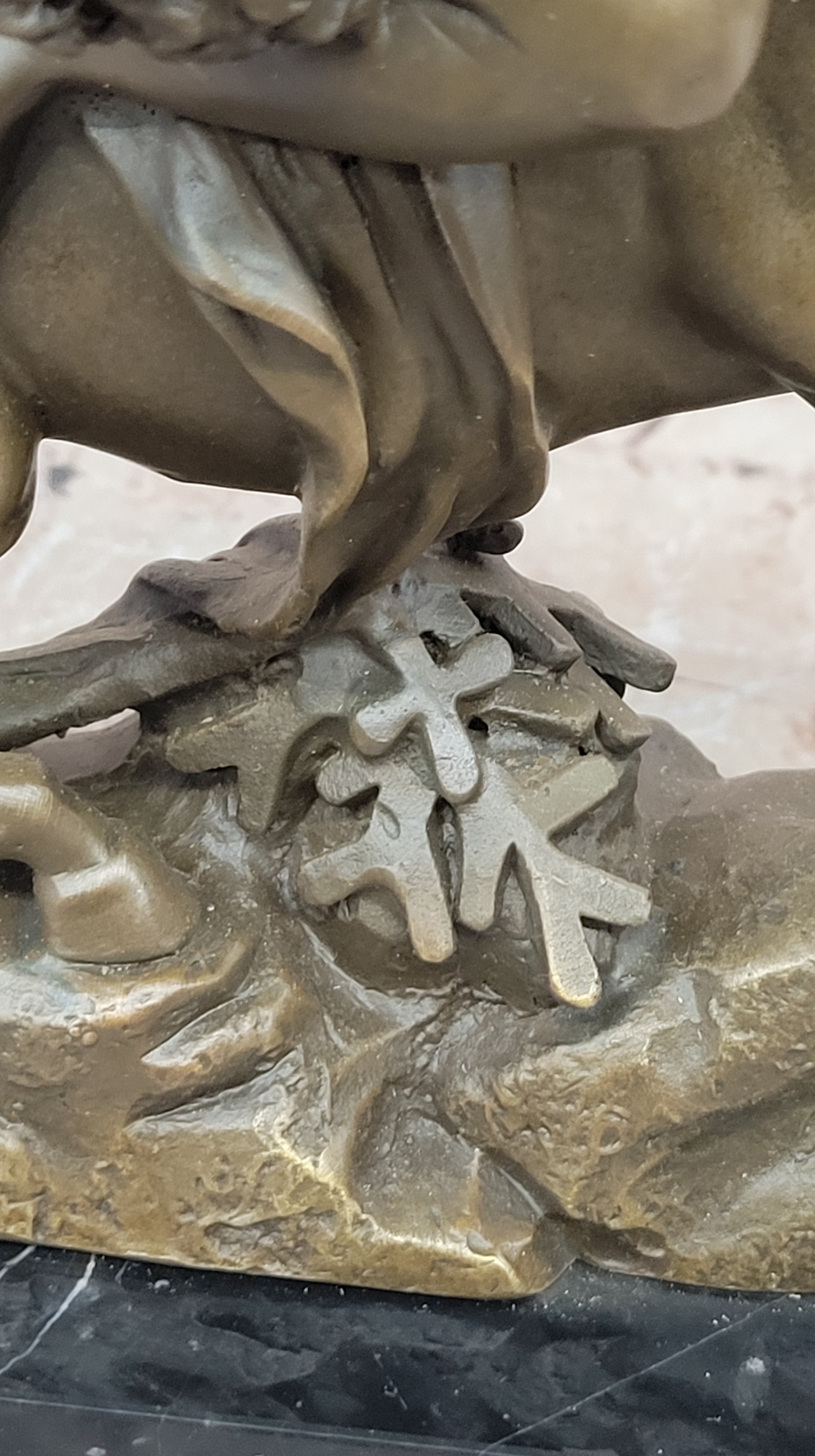 Experience the power and drama of ancient mythology with this exceptional bronze sculpture. Barye's masterful rendition of Hercules and Nessus will captivate the imagination and serve as a striking focal point in any art collection or display. Let this sculpture transport you to a world of myth and legend, where heroes and creatures clash in epic battles for glory and honor.Bronze Dimensions with Marble Base: Height 10" X Width 10"