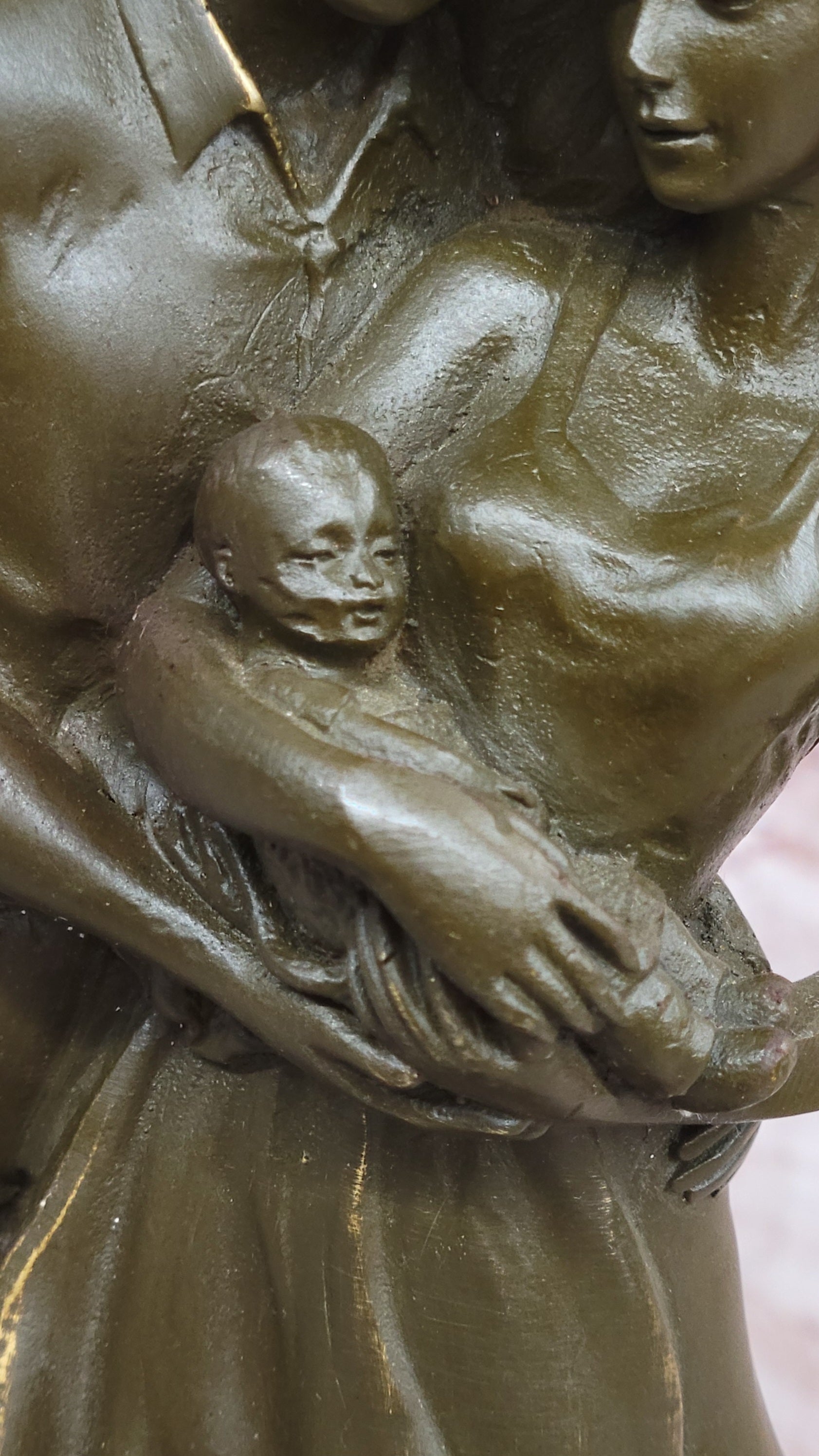 Bronze Sculpture of Young Family Holding Newborn Baby by Milo