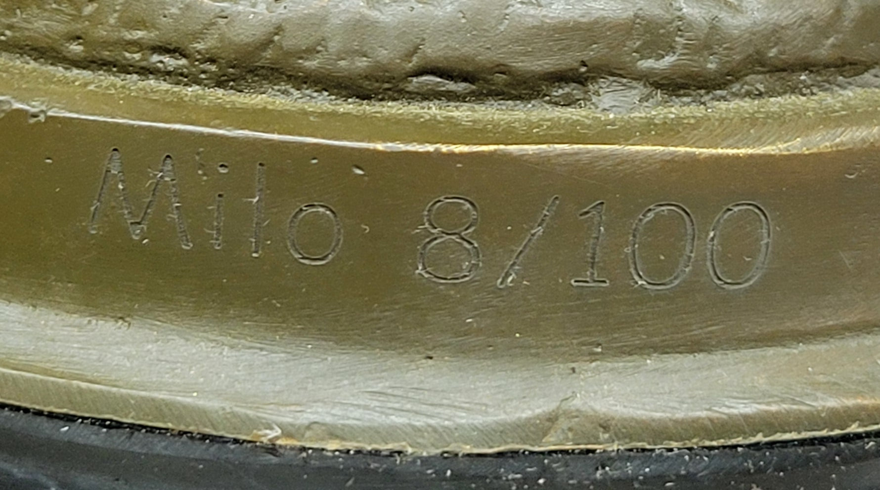 Handcrafted using the traditional lost wax casting method, this sculpture exemplifies the exceptional quality and attention to detail for which Milo is known. The rich brown patina enhances the contours and textures of the figures, adding depth and warmth to the composition. Mounted on a smooth round black marble base, the piece exudes a refined presence that complements both classic and modern interiors.