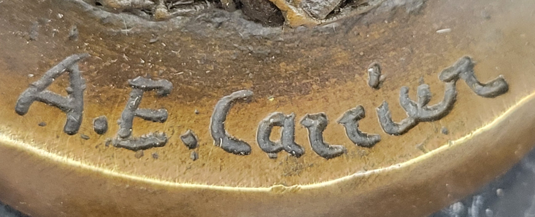 As a tribute to the artistry of Carrier Belleuse and the enduring allure of outdoor pursuits, this bronze sculpture invites viewers to immerse themselves in the beauty of nature and the thrill of the hunt. Whether displayed in a home, office, or gallery, it serves as a timeless reminder of the inherent connection between humanity and the natural world.Bronze Dimensions with Marble Base: Height 14" X Width 5"