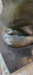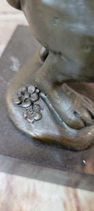 Crafted using the revered "Lost Wax Method," this sculpture exemplifies the fusion of artistry and technique. The intricate casting process ensures that every nuance and emotion is preserved in the bronze, creating a truly lifelike representation. Mounted on a sleek marble base, the sculpture finds a stable foundation, ready to grace your living space with its touching narrative.