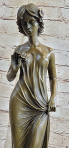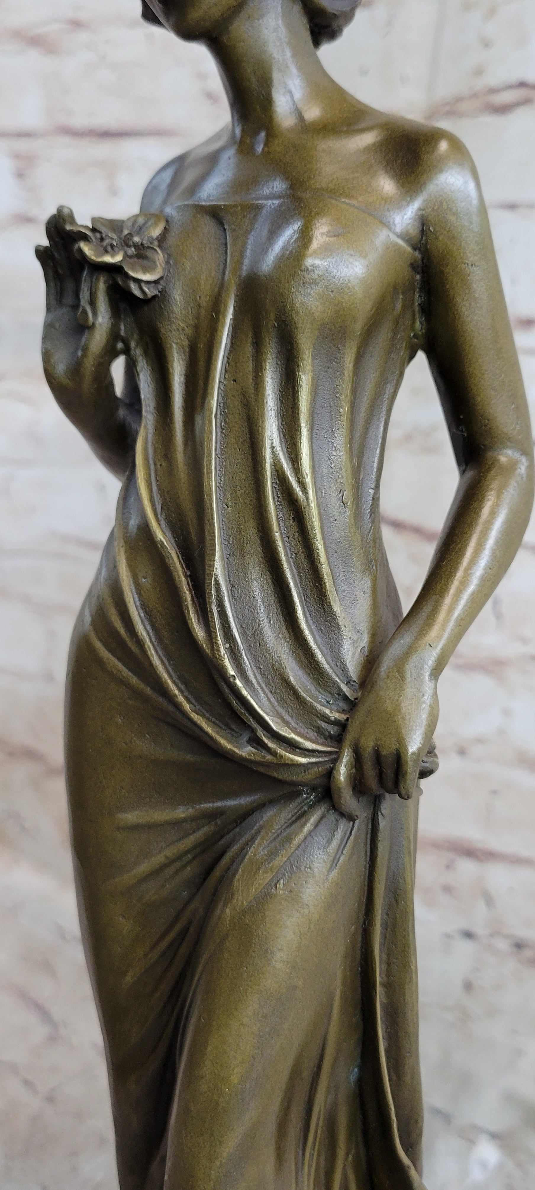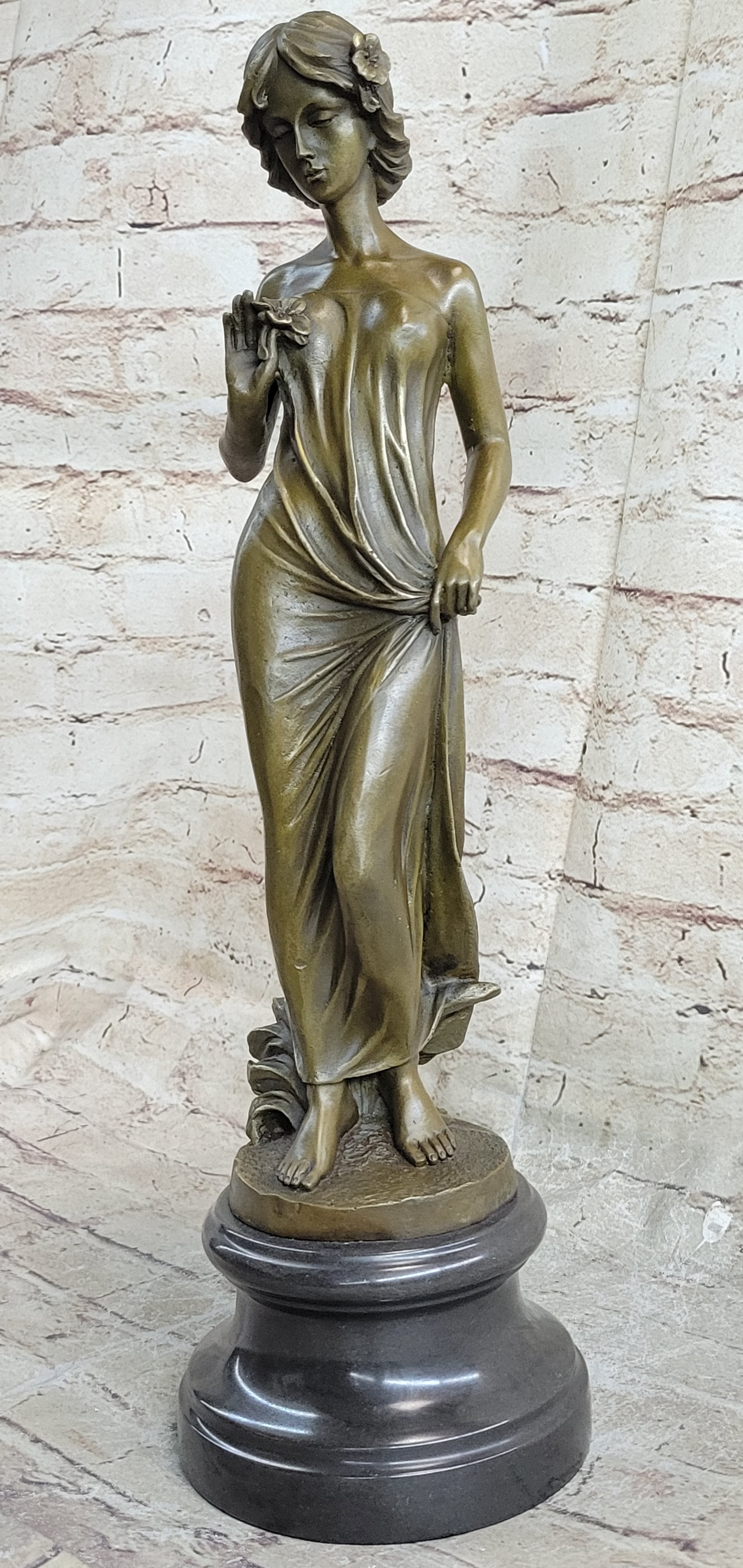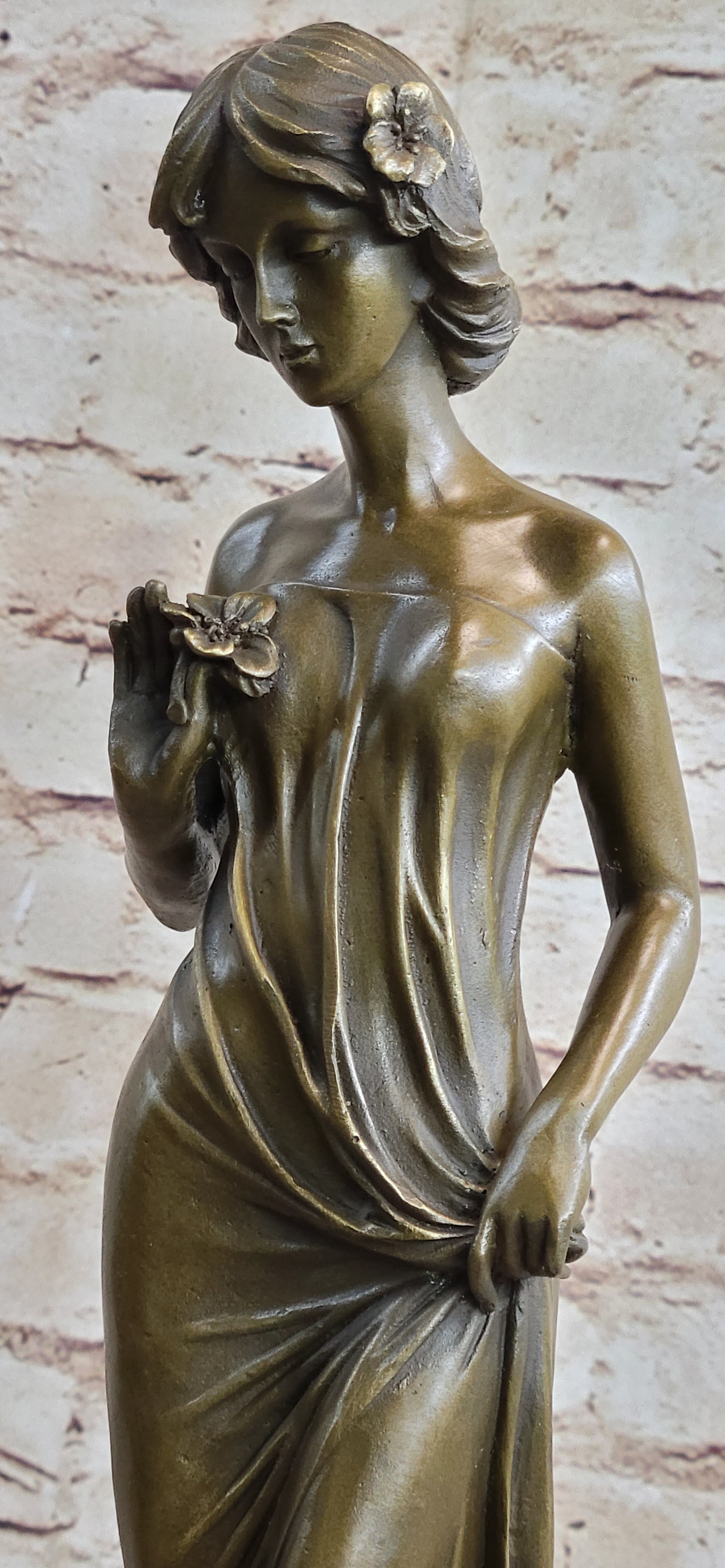 Bronze Sculpture Young lady Gazes into a Flower by Moreau Art Nouveau Deco Decor