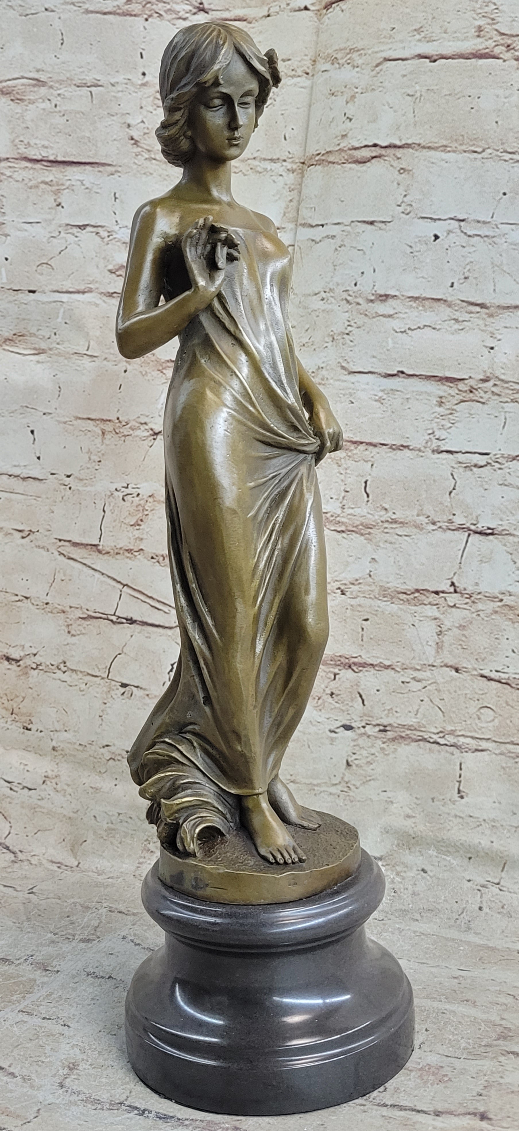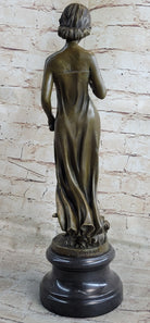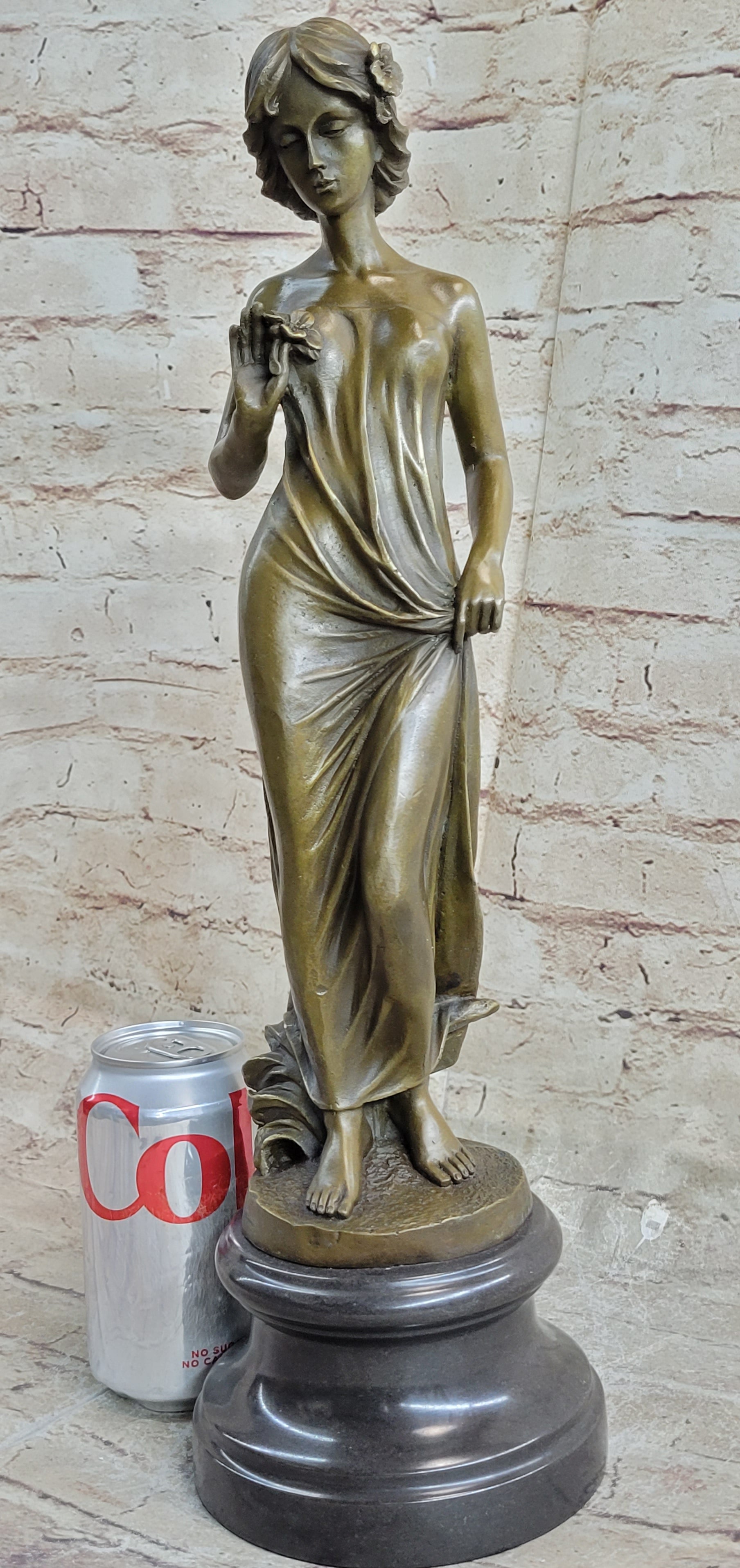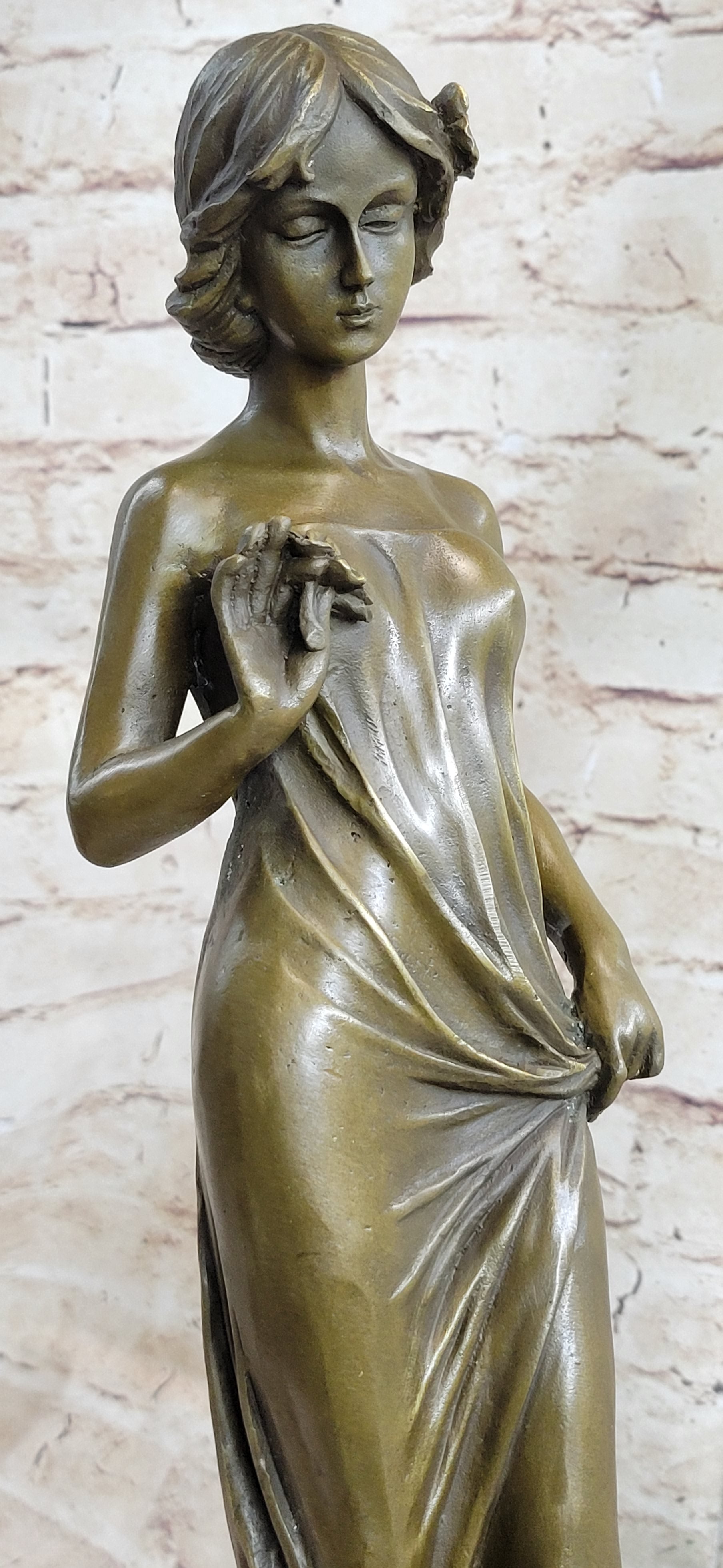 Bronze Sculpture Young lady Gazes into a Flower by Moreau Art Nouveau Deco Decor