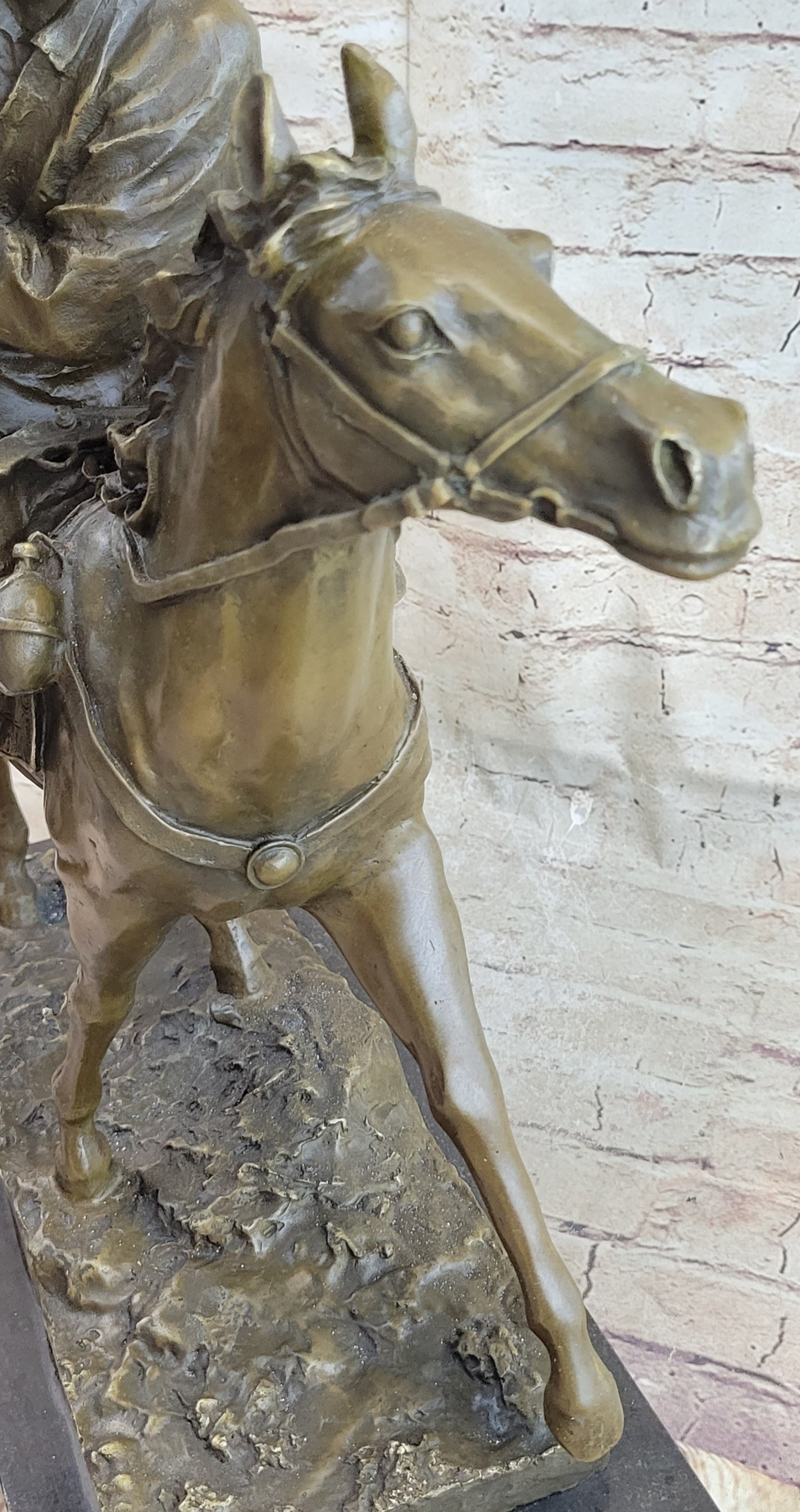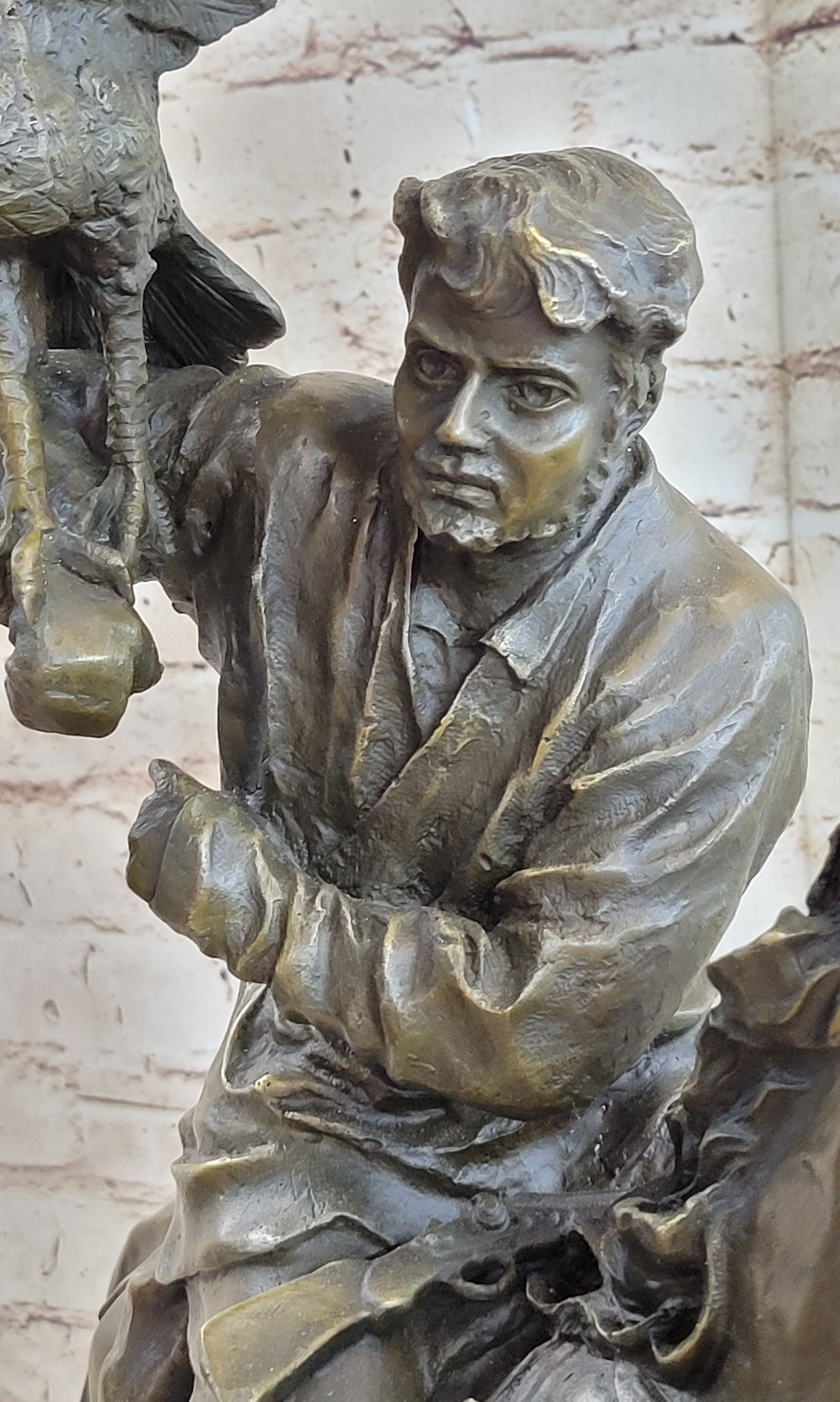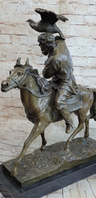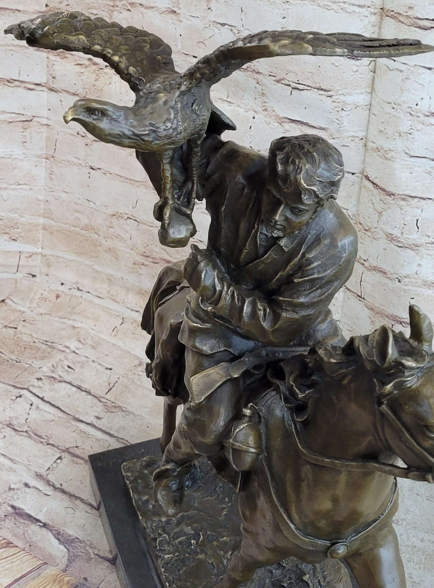 Horse Mounted Khazak Eagle Falcon Hunter Trained Bird Bronze Statue Sculpture Figure 21" x 21"