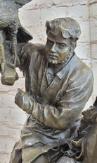 The intricate details of this bronze sculpture bring the scene to life, capturing the essence of the untamed wilderness. The horse, adorned with a protective blanket beneath its saddle to guard against chafing, showcases meticulous craftsmanship, as do the carefully rendered stirrups and reins. Each element tells a story of a life lived on the fringes of civilization, where survival is intertwined with the rhythms of the natural world. Handmade with precision, the sculpture is a testament to the artist's skill, utilizing the "Lost Wax Method" to preserve the authenticity of the scene.