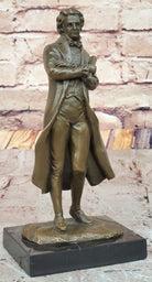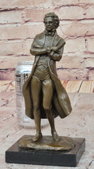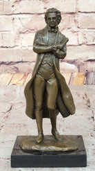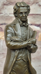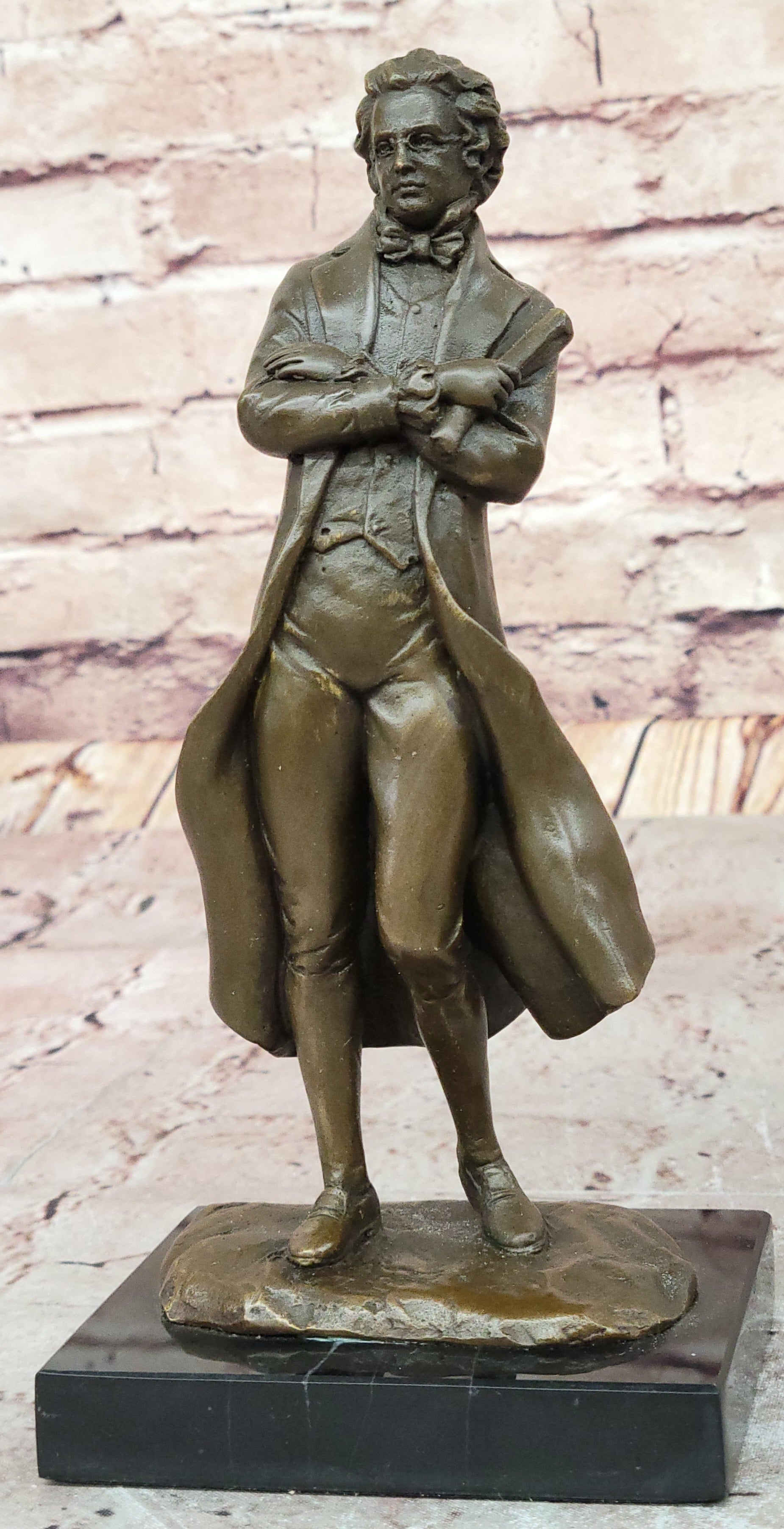 Handmade using the traditional Lost Wax Method, this sculpture boasts remarkable detail, from Schubert’s thoughtful expression to the intricate rendering of his period attire. The rich brown patina adds warmth and depth, enhancing the lifelike qualities of the piece while preserving its classic elegance. The craftsmanship highlights the dedication to honoring Schubert’s legacy with precision and artistry.