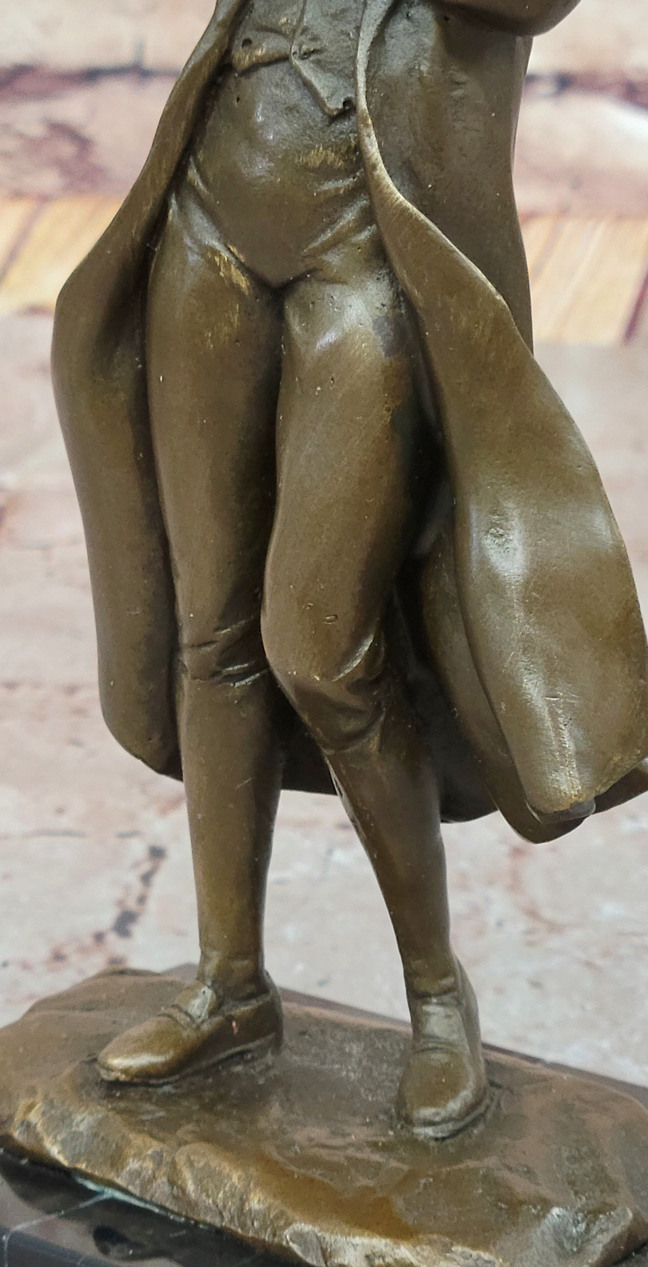 Resting on a polished black marble base, this sculpture combines stability with sophistication, making it a perfect addition to any music lover's collection, study, or gallery. Signed by the artist Milo, this piece assures authenticity and exceptional quality. Whether as a tribute to Schubert’s enduring influence or a unique gift for classical music enthusiasts, this bronze sculpture stands as a timeless homage to one of history’s greatest composers.Bronze Dimensions with Marble Base: Height 8 1/2" X Width 4"