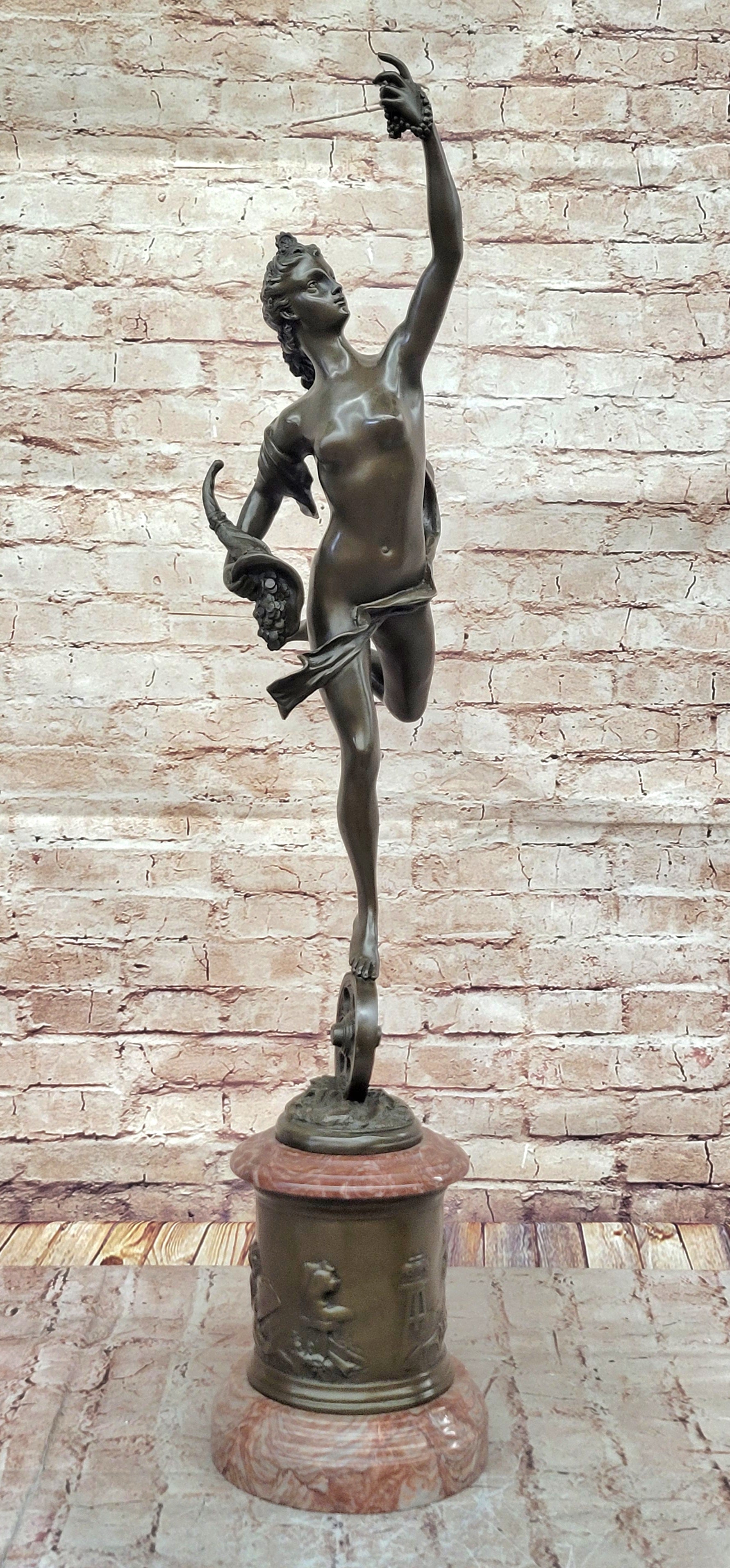 Bronze Statue of Bacchante with Grapes and Cornucopia on Marble Base