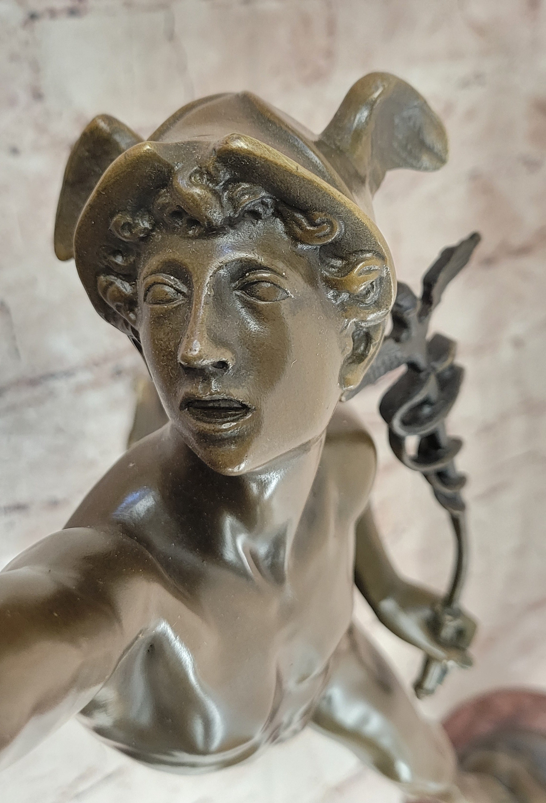 Bronze Statue of Mercury Hermes Mythological God with Winged Helmet